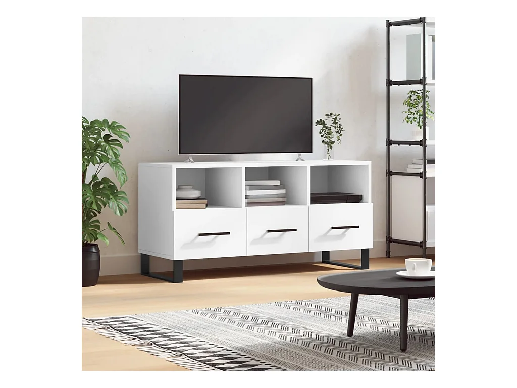 Bishopstown Meuble TV Blanc brillant 102x36x50 cm Bois d'ingénierie