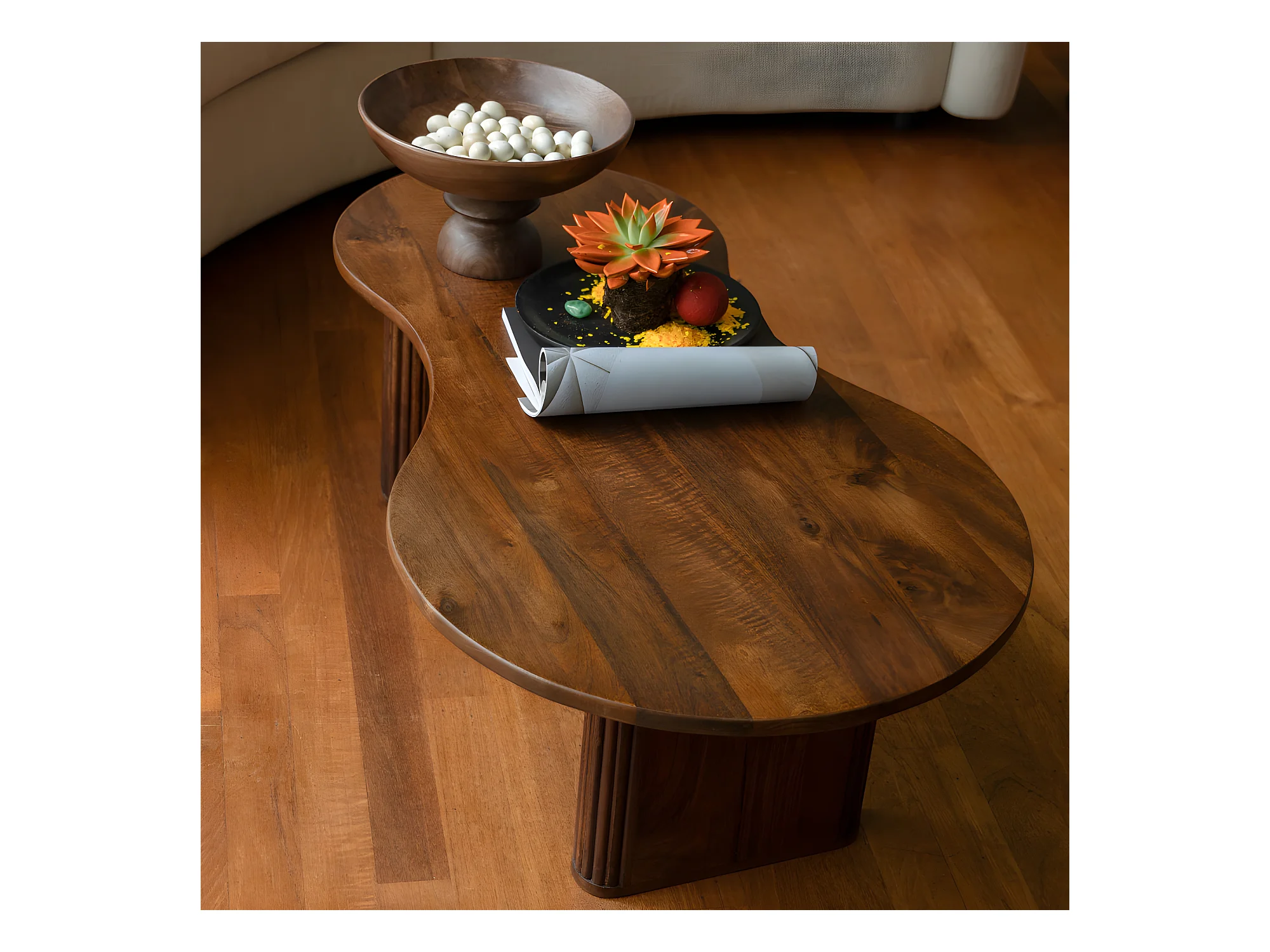 Tilon - Table basse organique en bois 110x60cm - Bois foncé