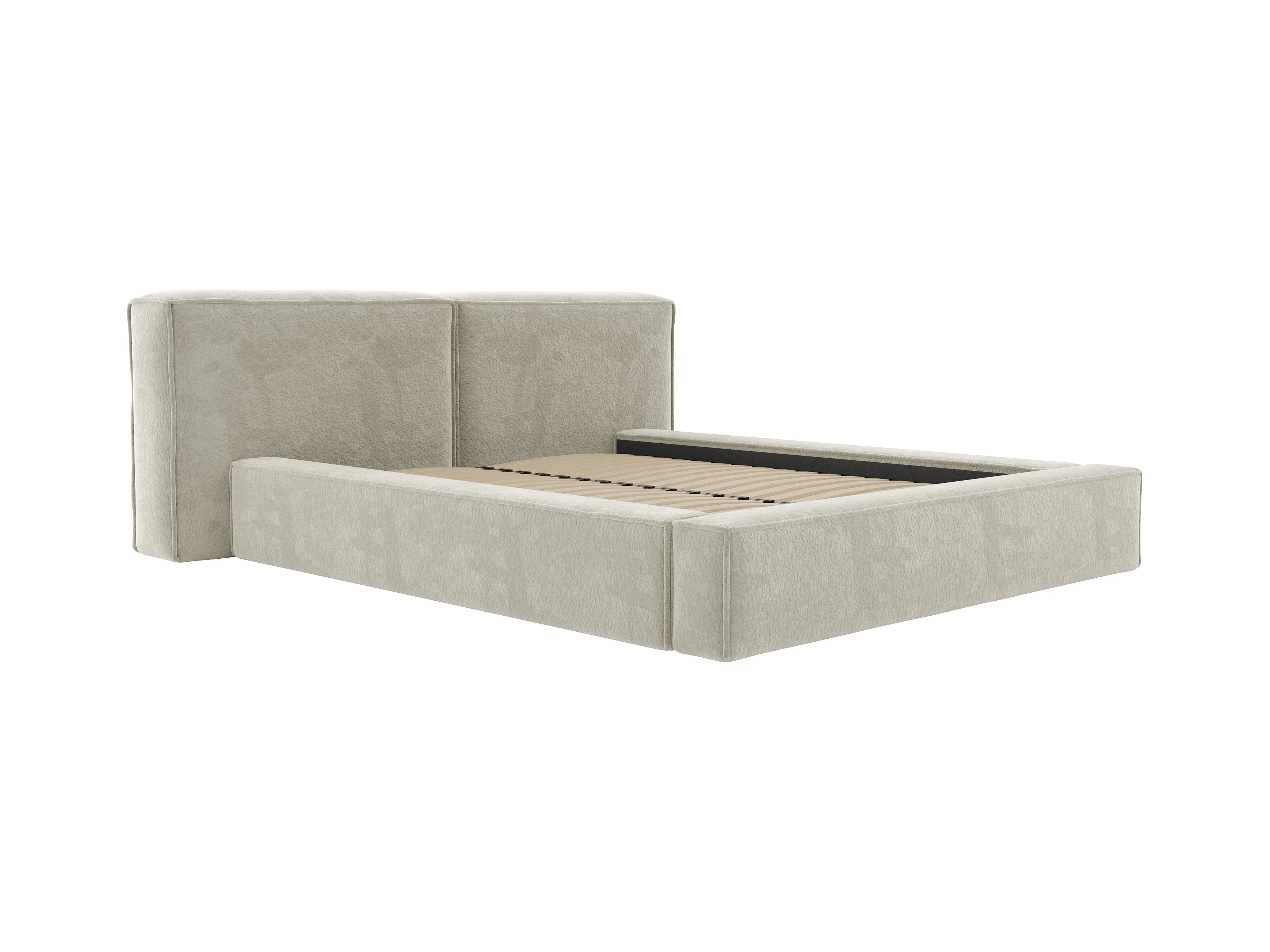 Lit coffre 160 x 200 cm - Tissu bouclette - Beige + Matelas - TIMANO de Pascal Morabito