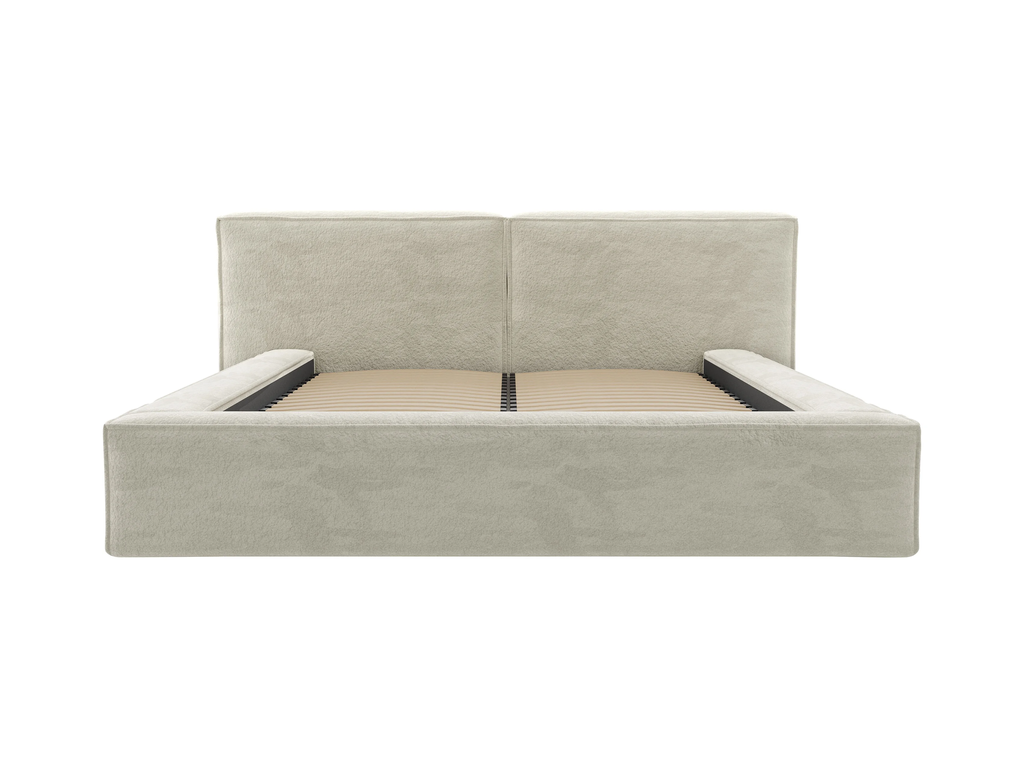 Lit coffre 200 x 200 cm - Tissu bouclette - Beige + Matelas - TIMANO de Pascal Morabito