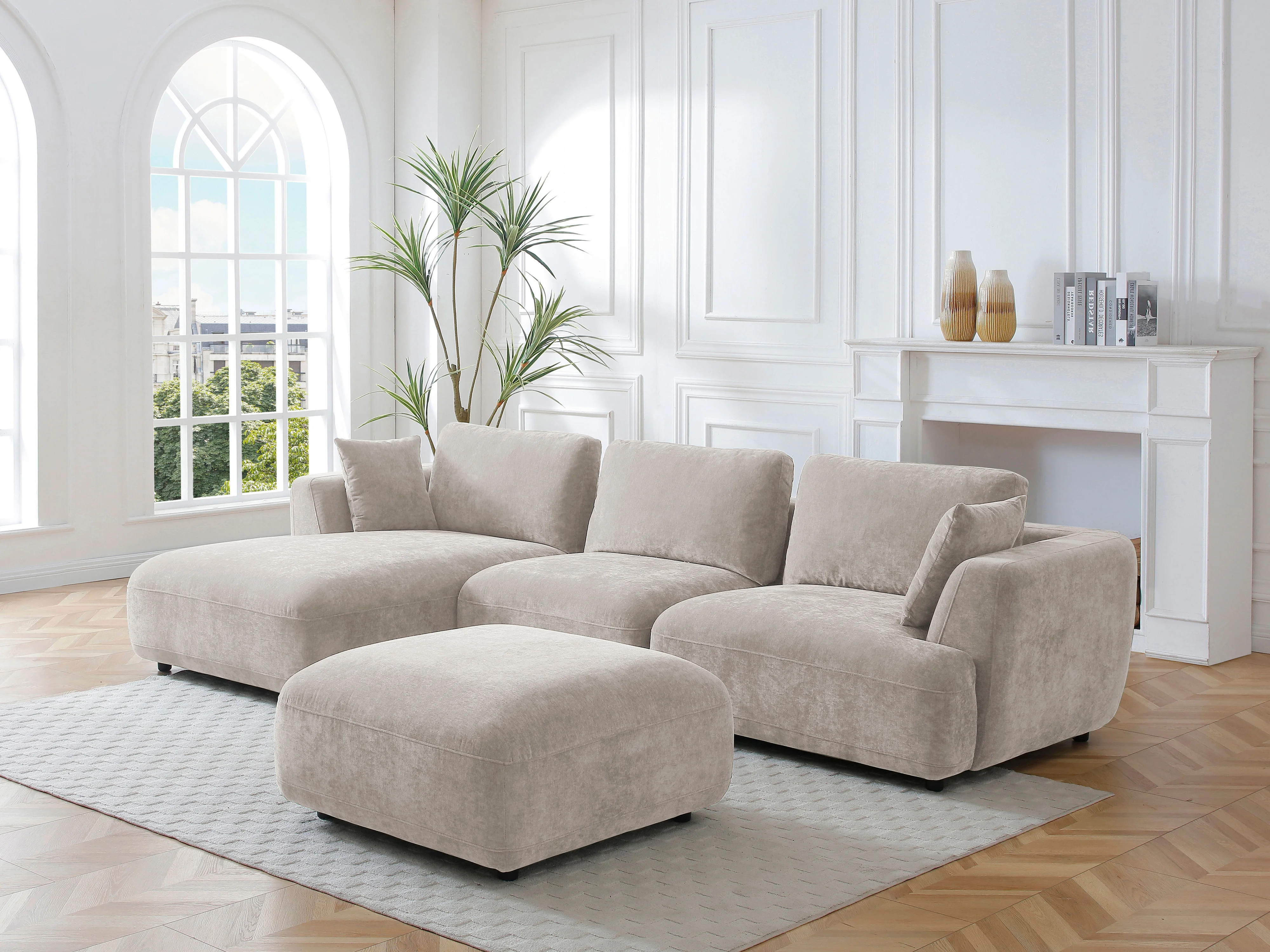 Canapé d'angle gauche et pouf en tissu beige TINDRALO