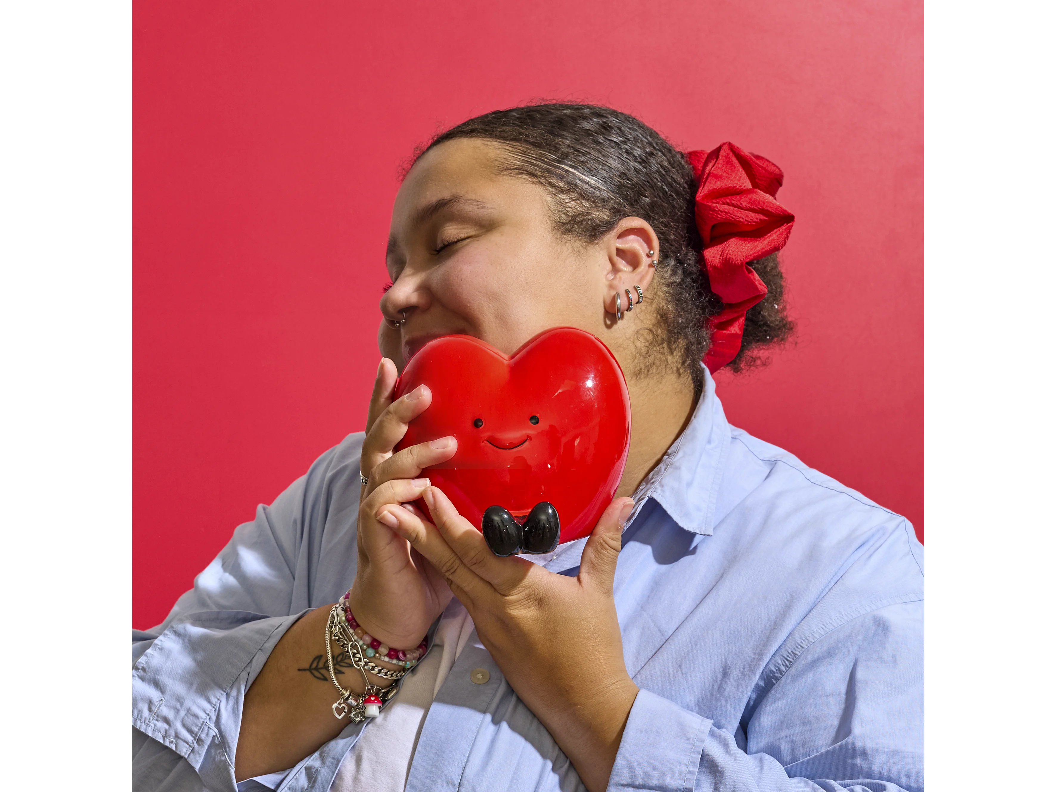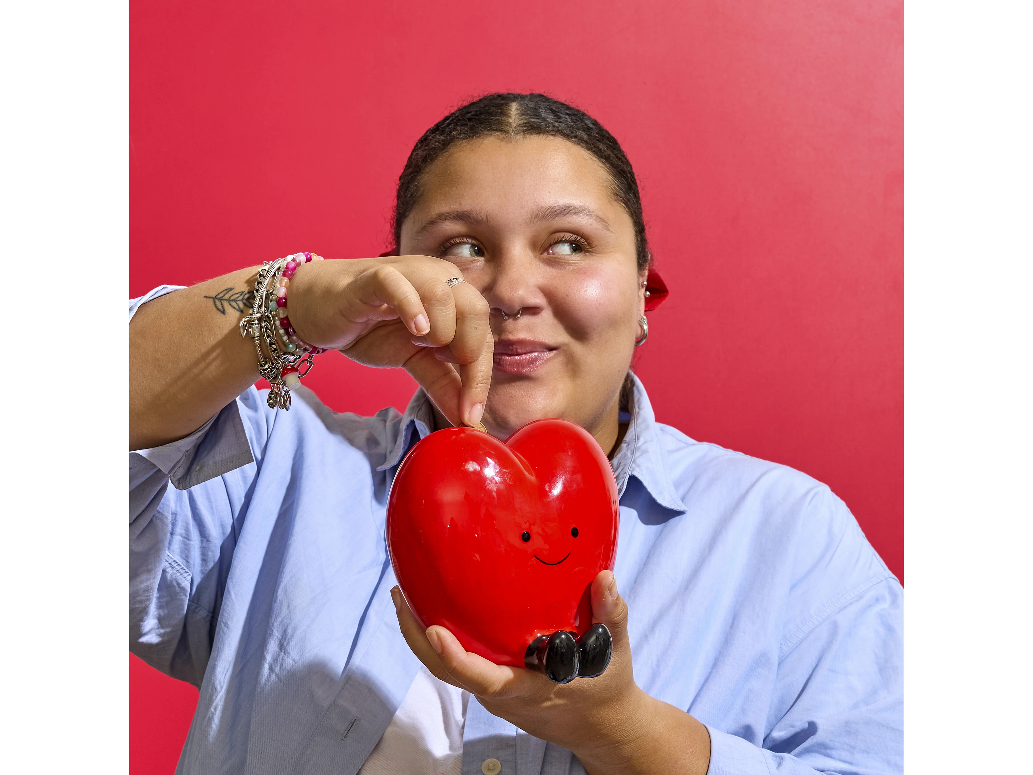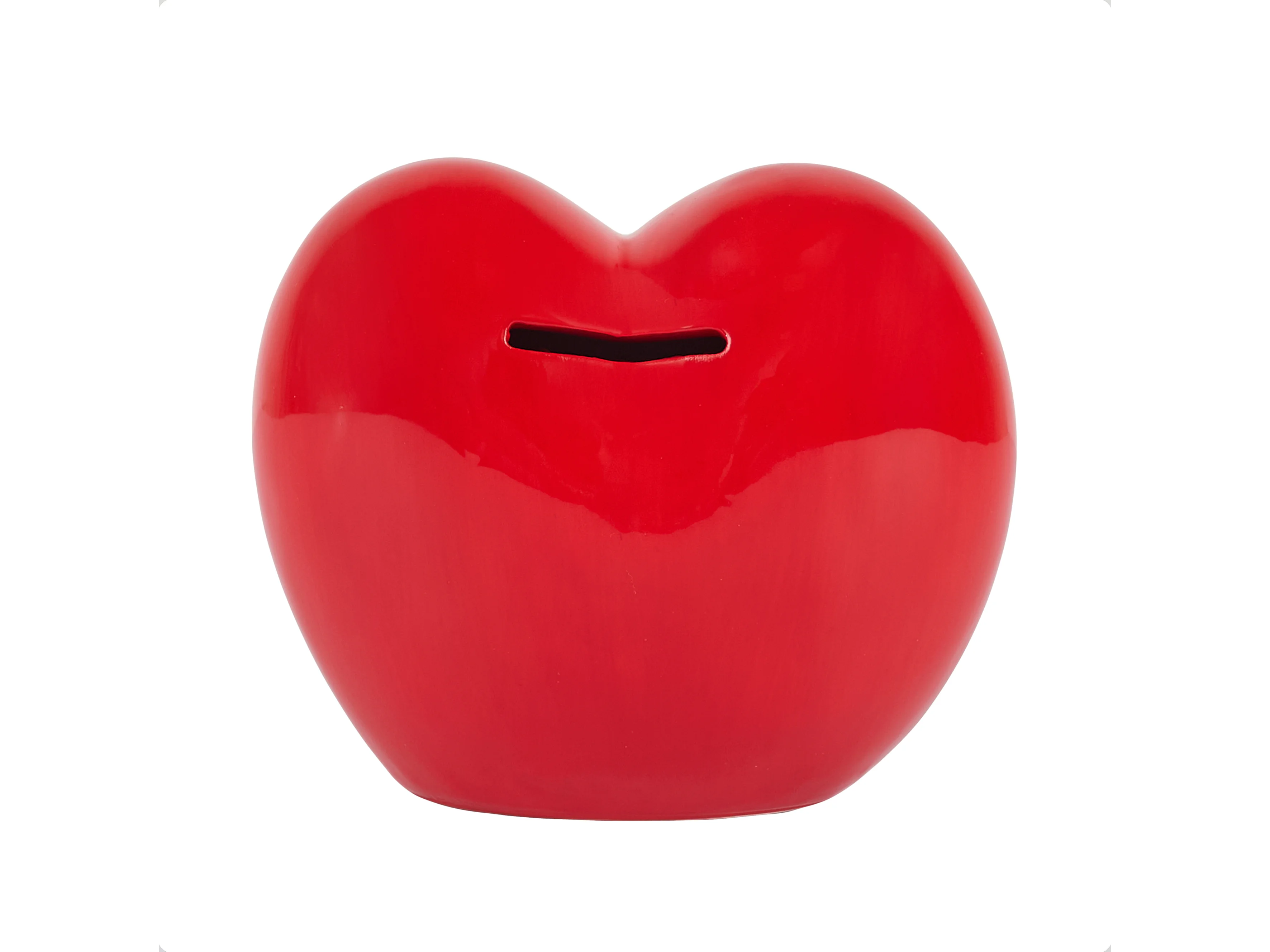 Tirelire cœur rouge style kawaii en céramique brillante
