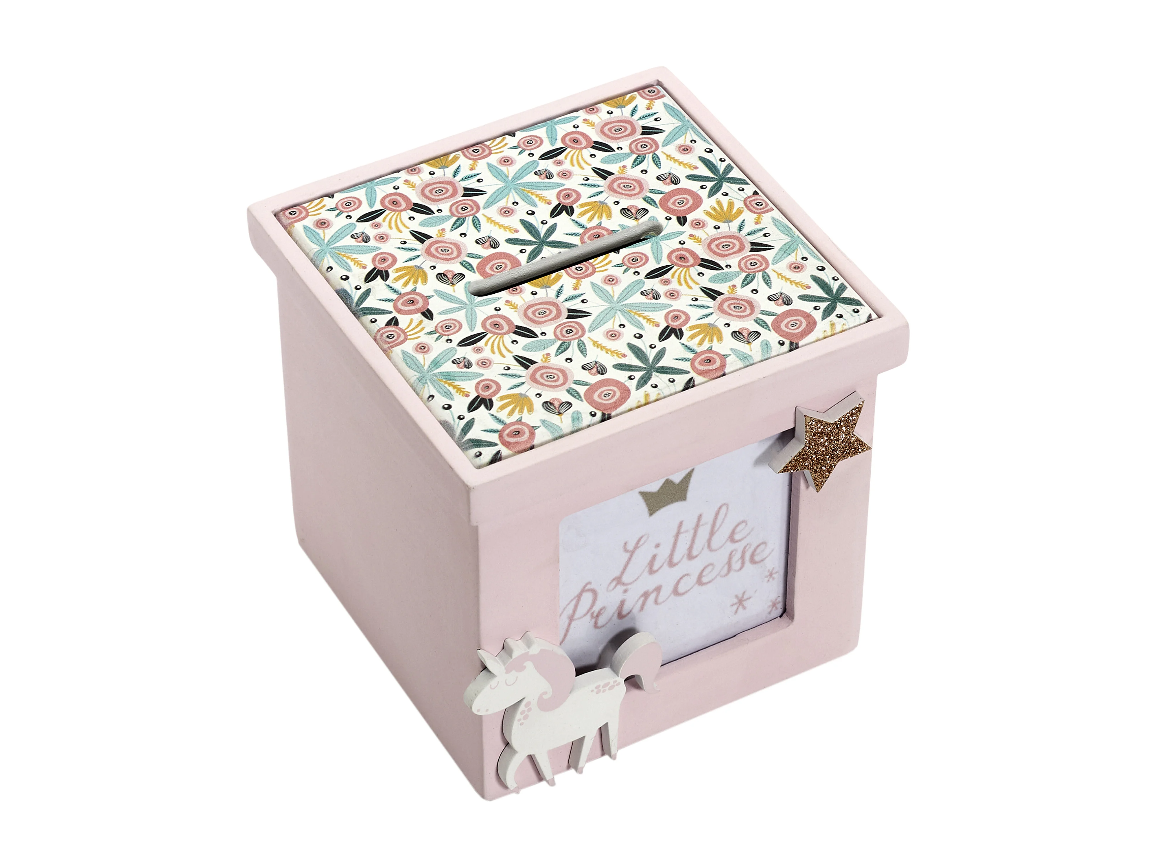 Set de 6 tirelires carrées en bois - 6 x 6 x 6 cm