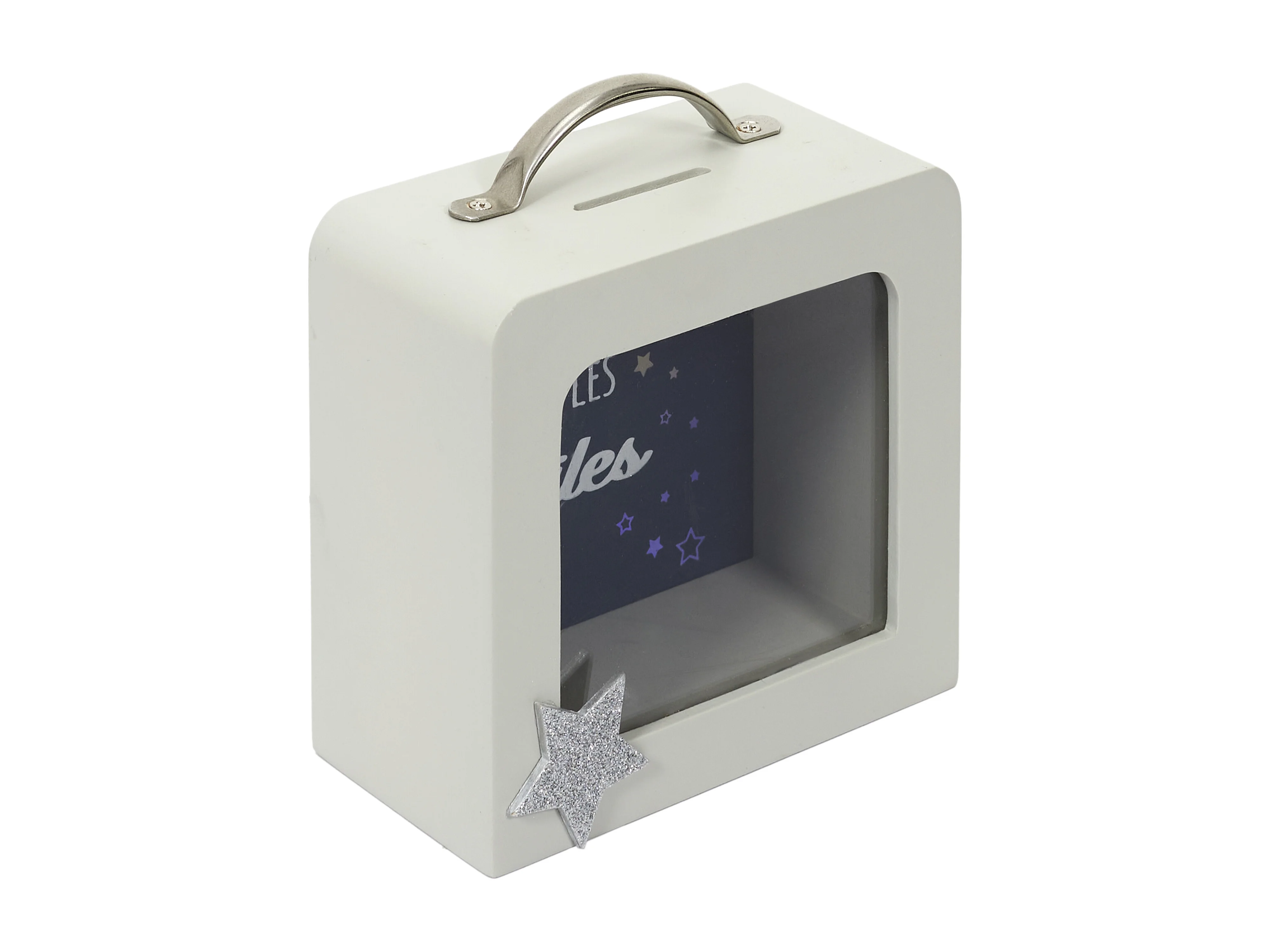 Tirelire Valise Enfant Blanc, Gris