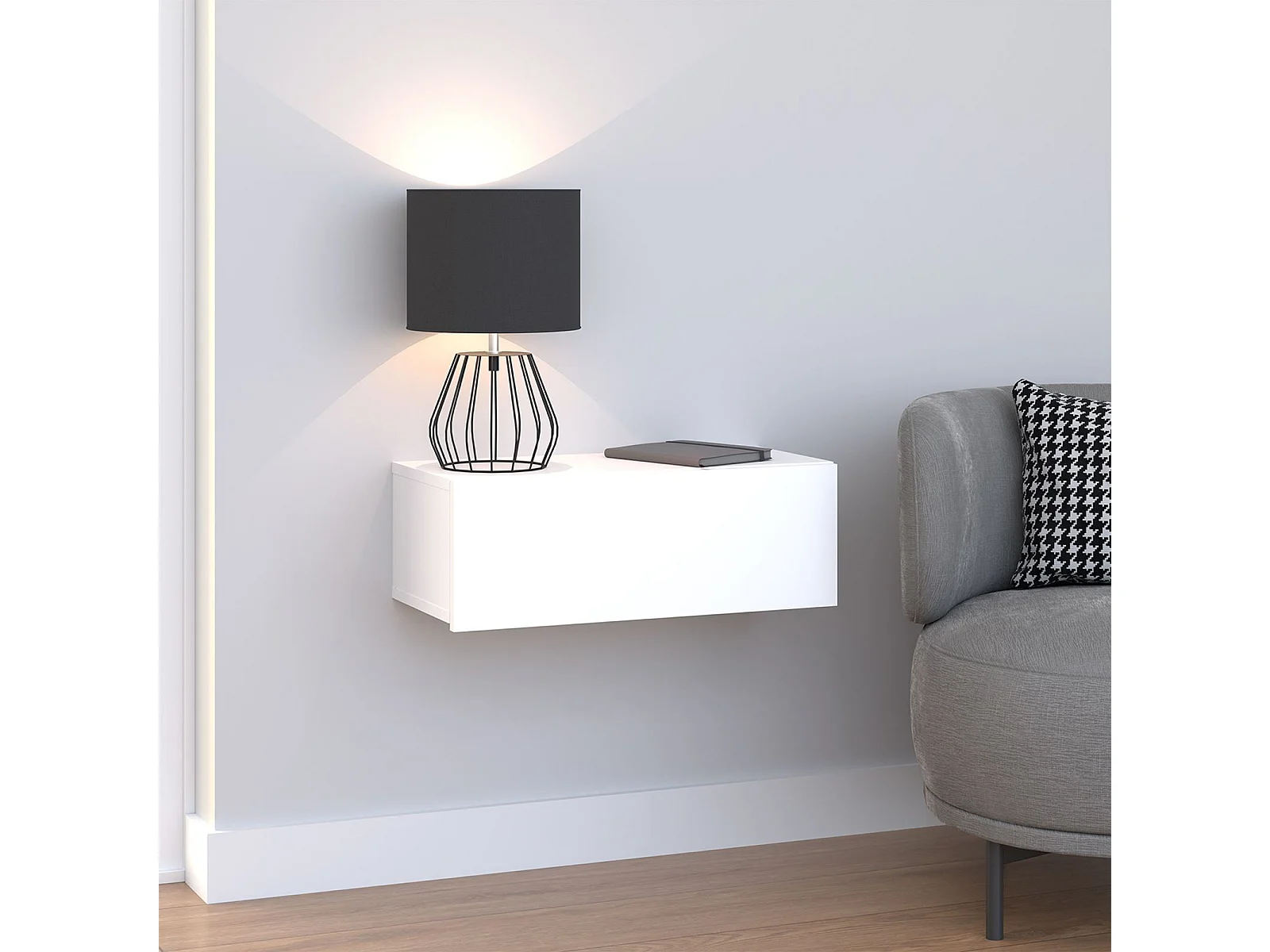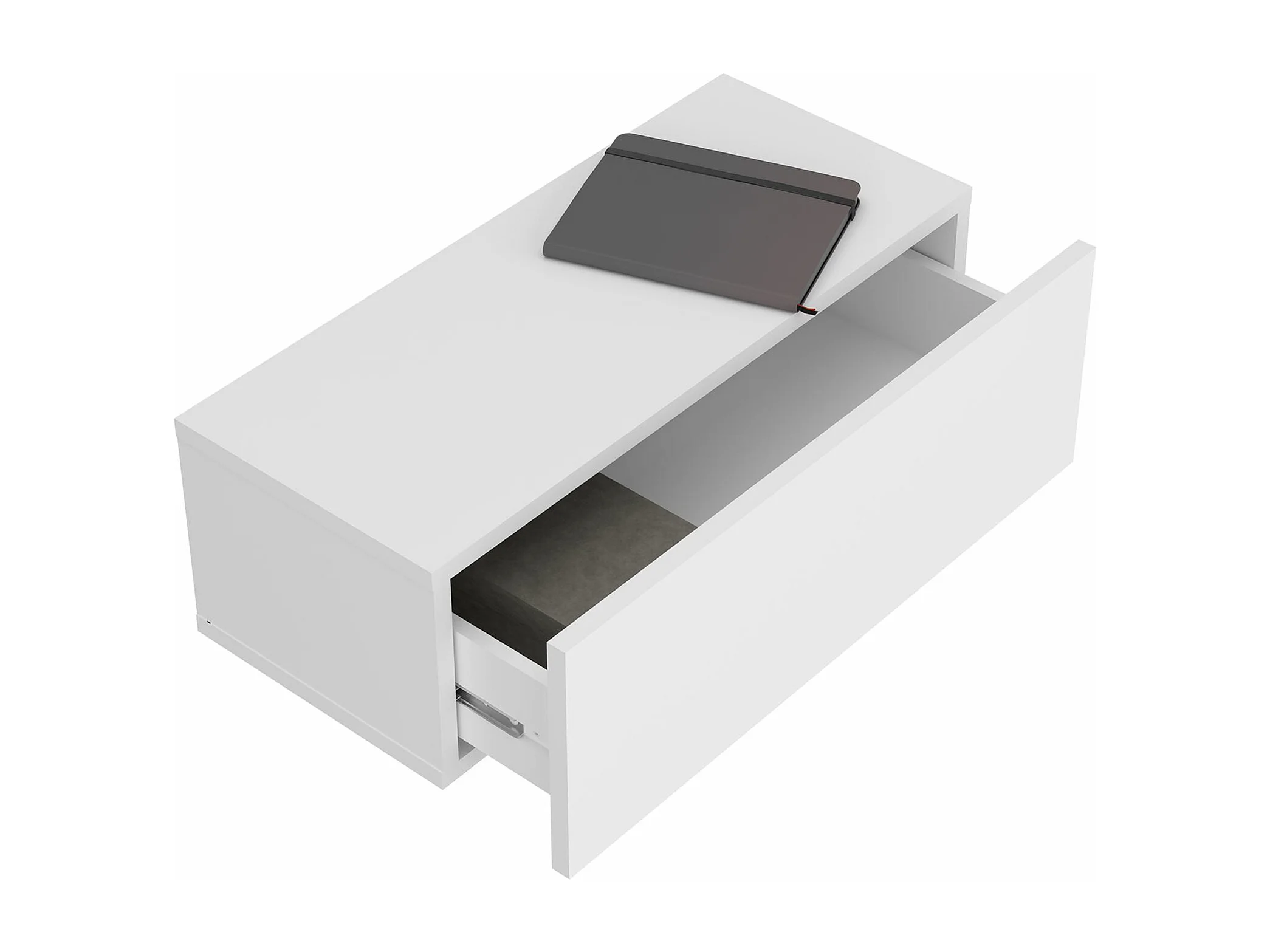 Tiroir suspendu THALA, table de nuit étagère murale avec 1 tiroir sans poignée, revêtement mélaminé, en bois, blanc