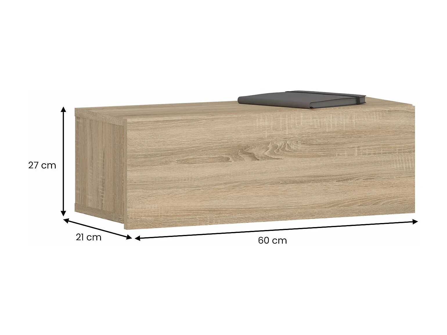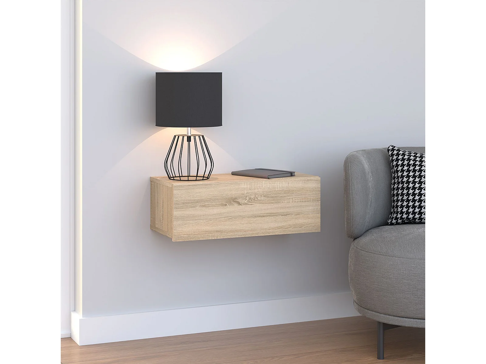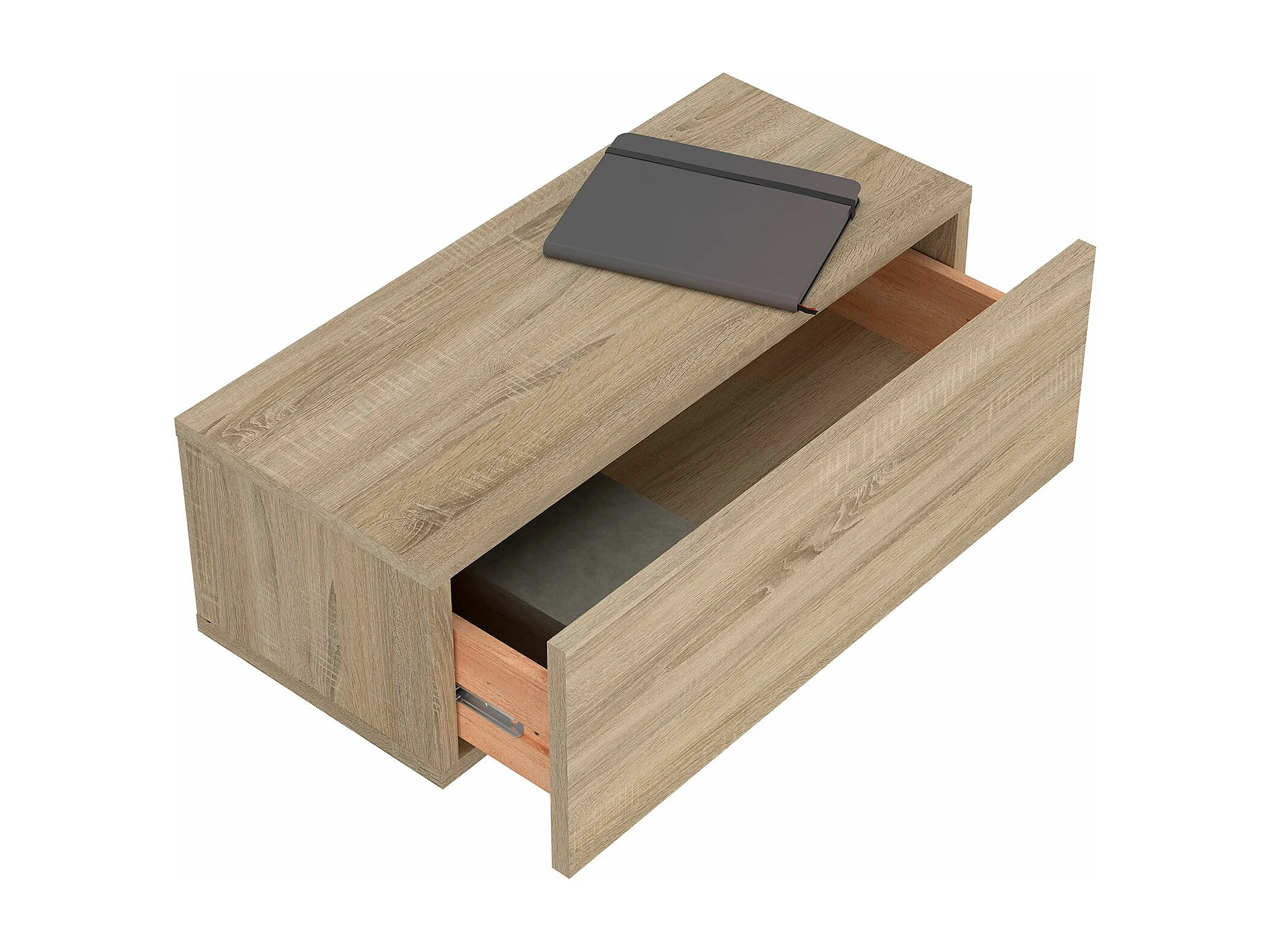 Tiroir suspendu THALA, table de nuit étagère murale avec 1 tiroir sans poignée, revêtement mélaminé, en bois, coloris chêne sonoma