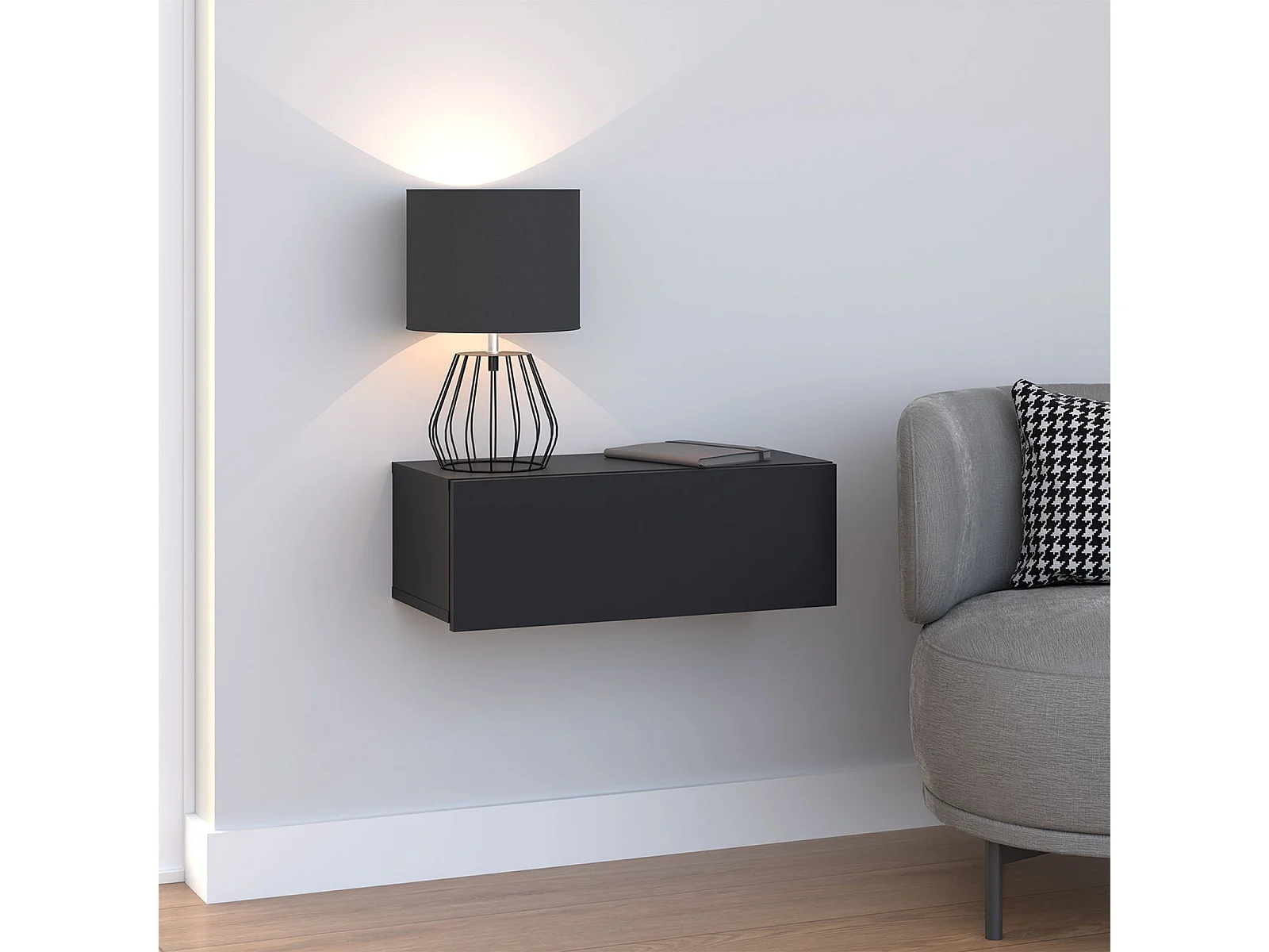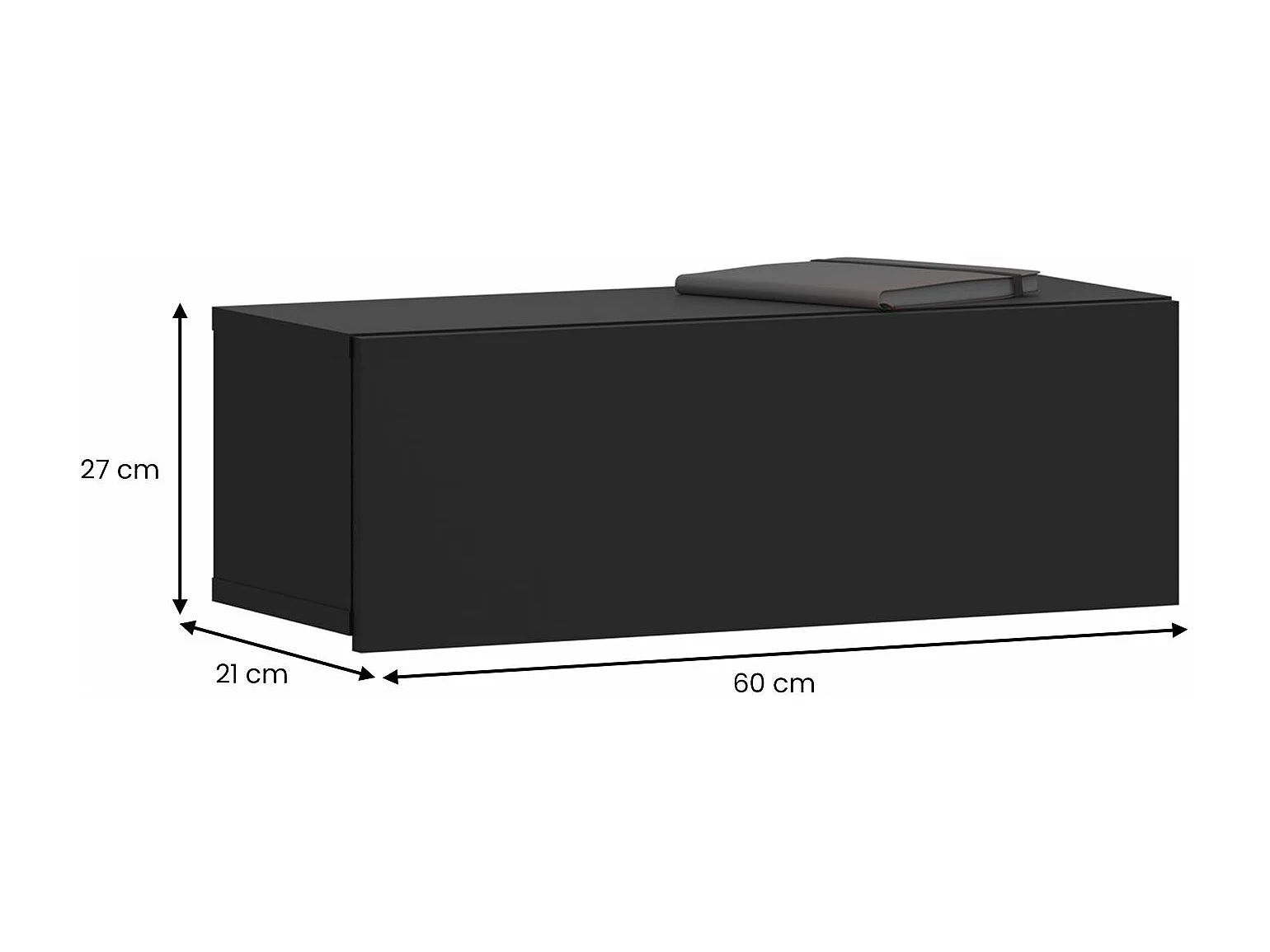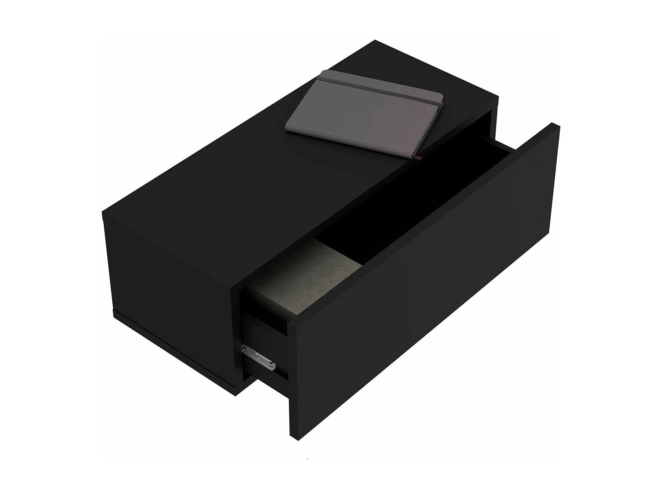 Tiroir suspendu THALA, table de nuit étagère murale avec 1 tiroir sans poignée, revêtement mélaminé, en bois, noir