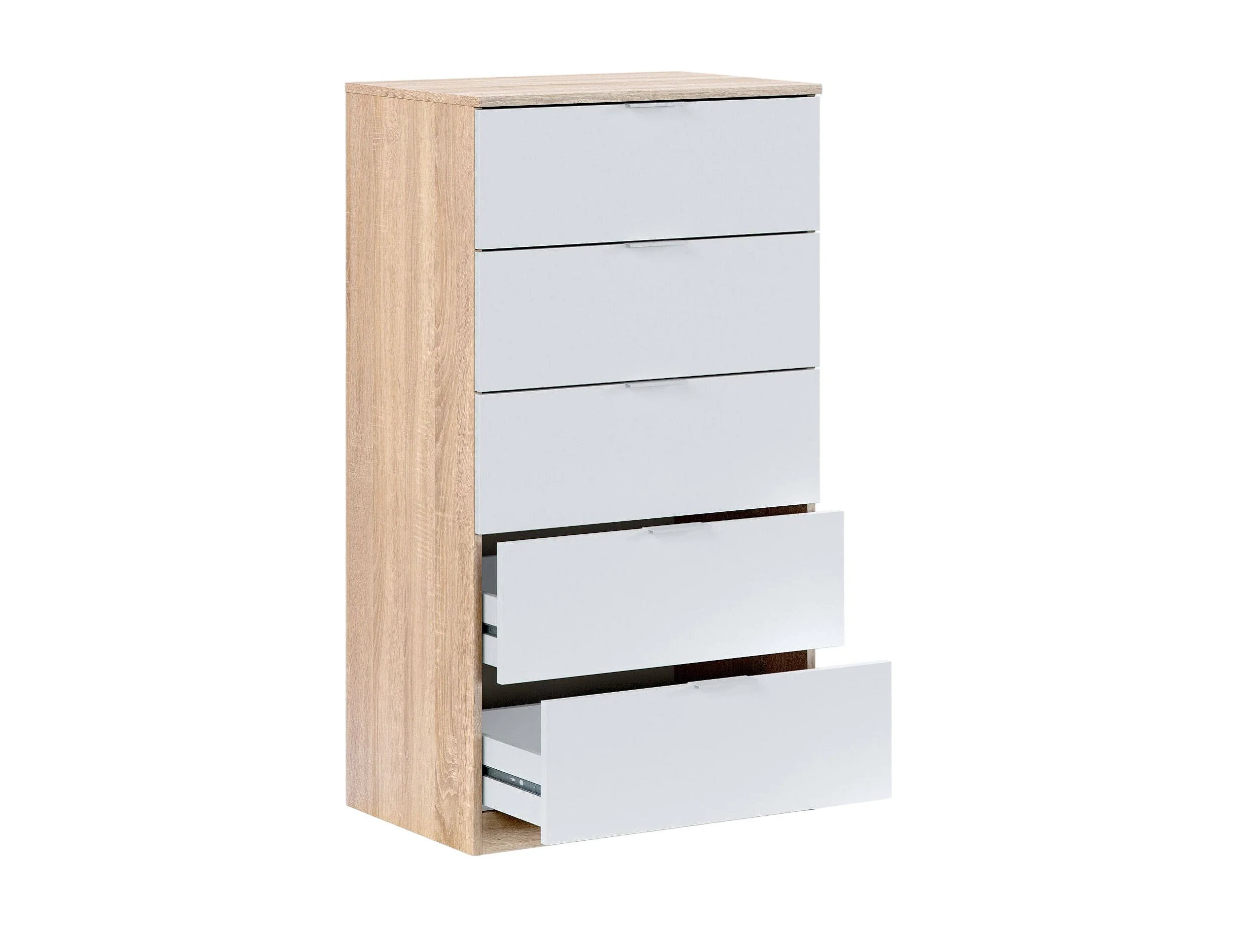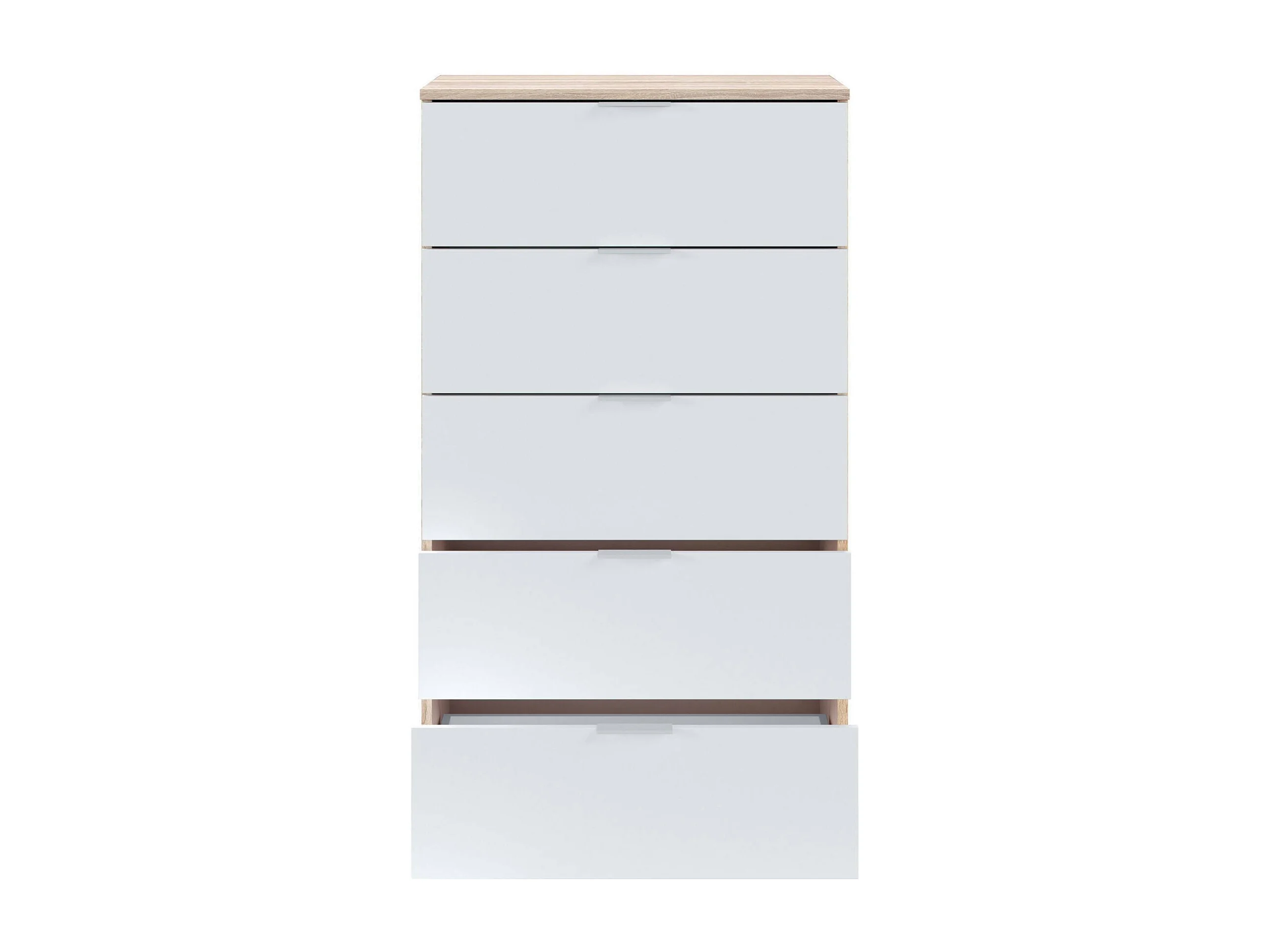 Commode Dhvali, commode à 5 tiroirs, commode pour la chambre, commode moderne, 60x40h110 cm, chêne et blanc
