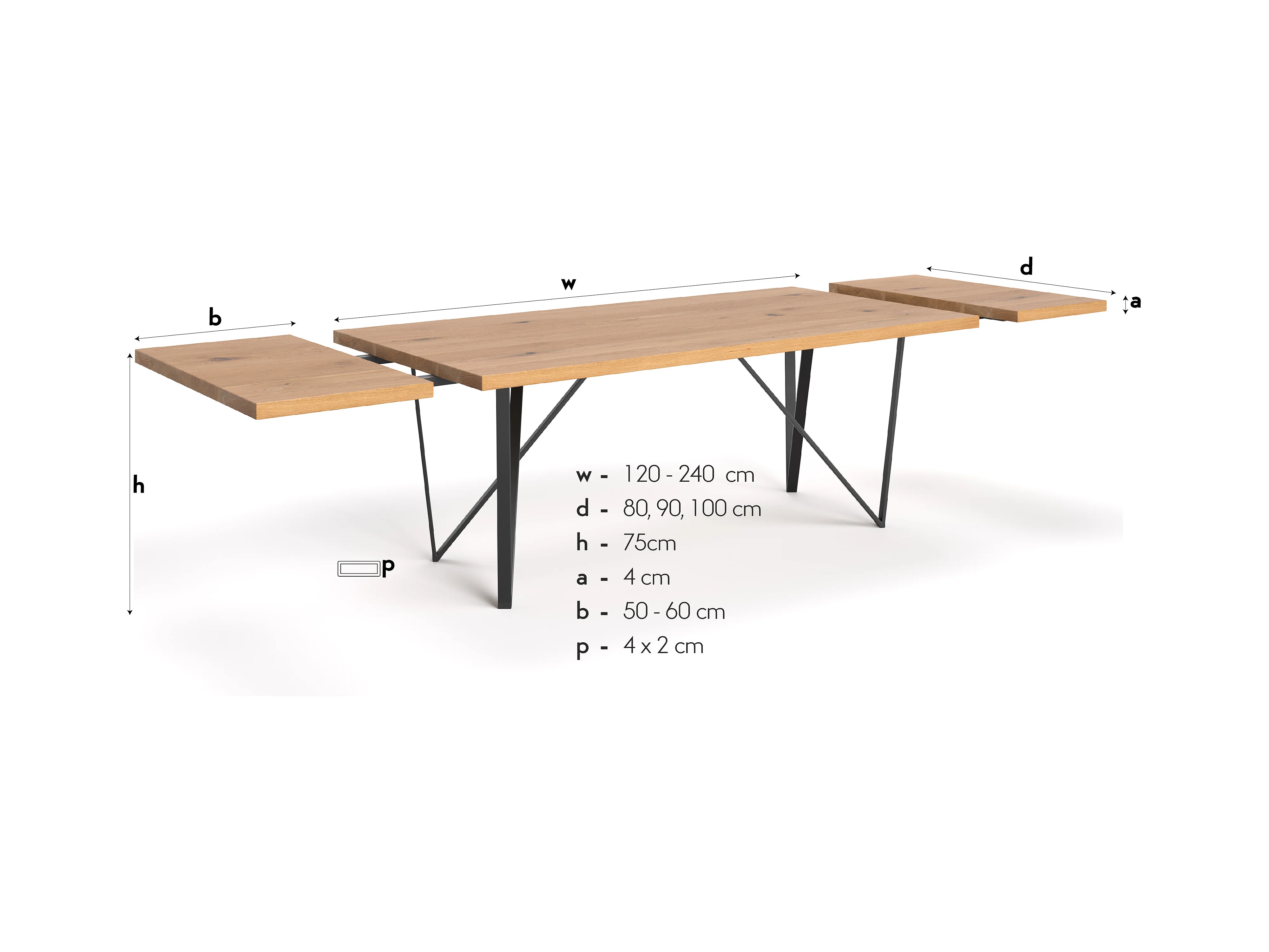 Table extensible Ravel en chêne massif avec une rallonge 50 cm
