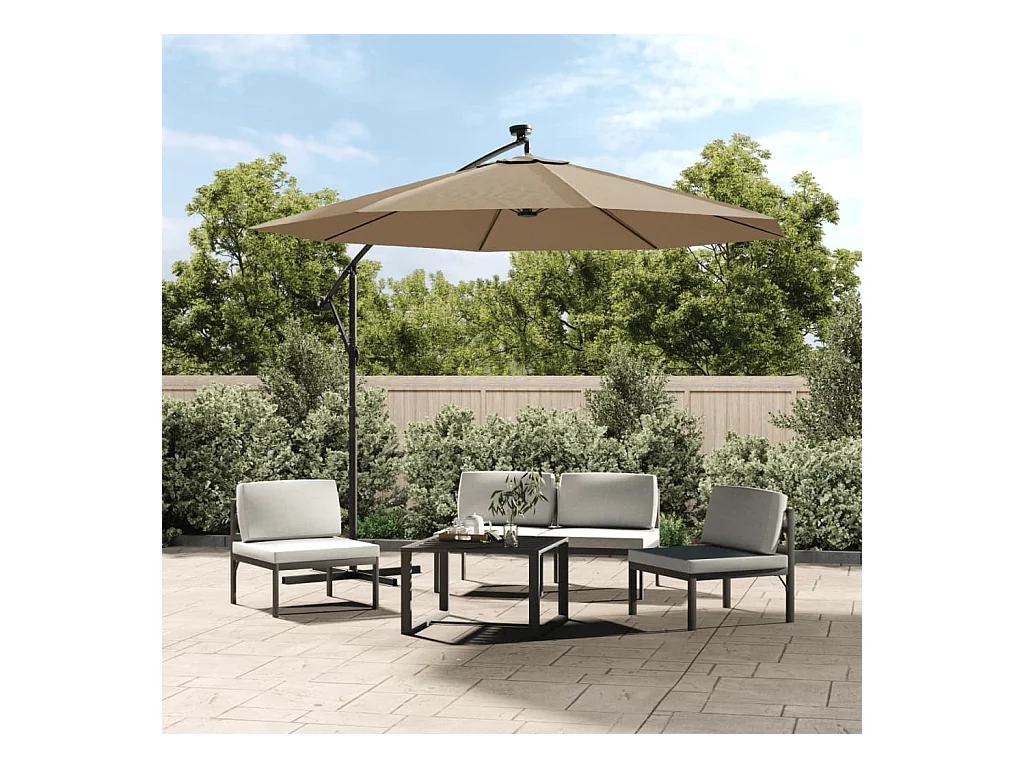 Parasol déporté avec mât et lumières LED Taupe 300 cm FR51832