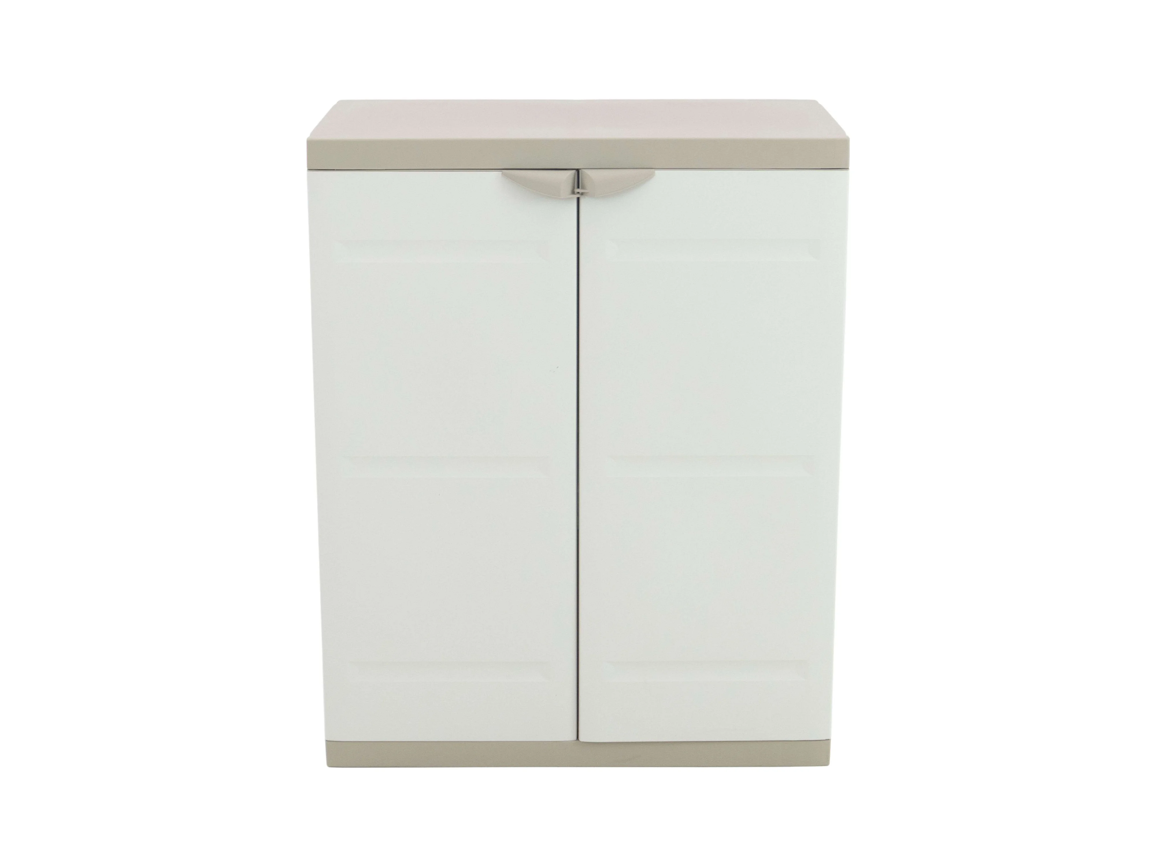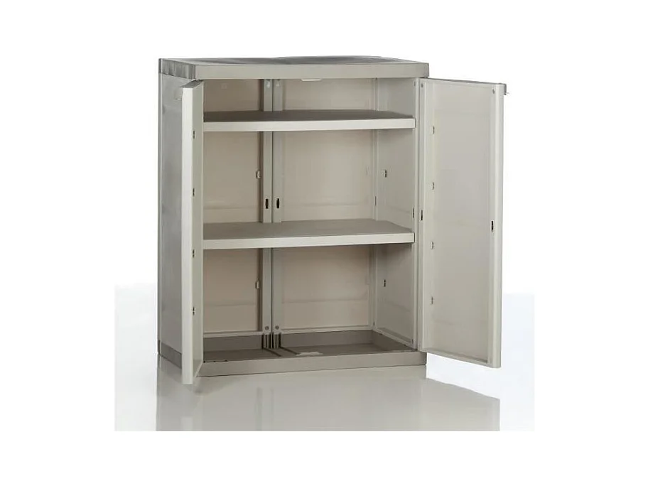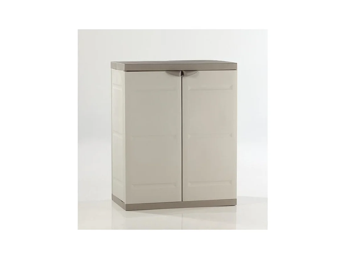 TITANIUM PLASTIKEN Armoire basse 2 portes avec etageres l70 x p44 x h88 cm Beige et Taupe Gamme TITANIUM Interieur/Exterieur