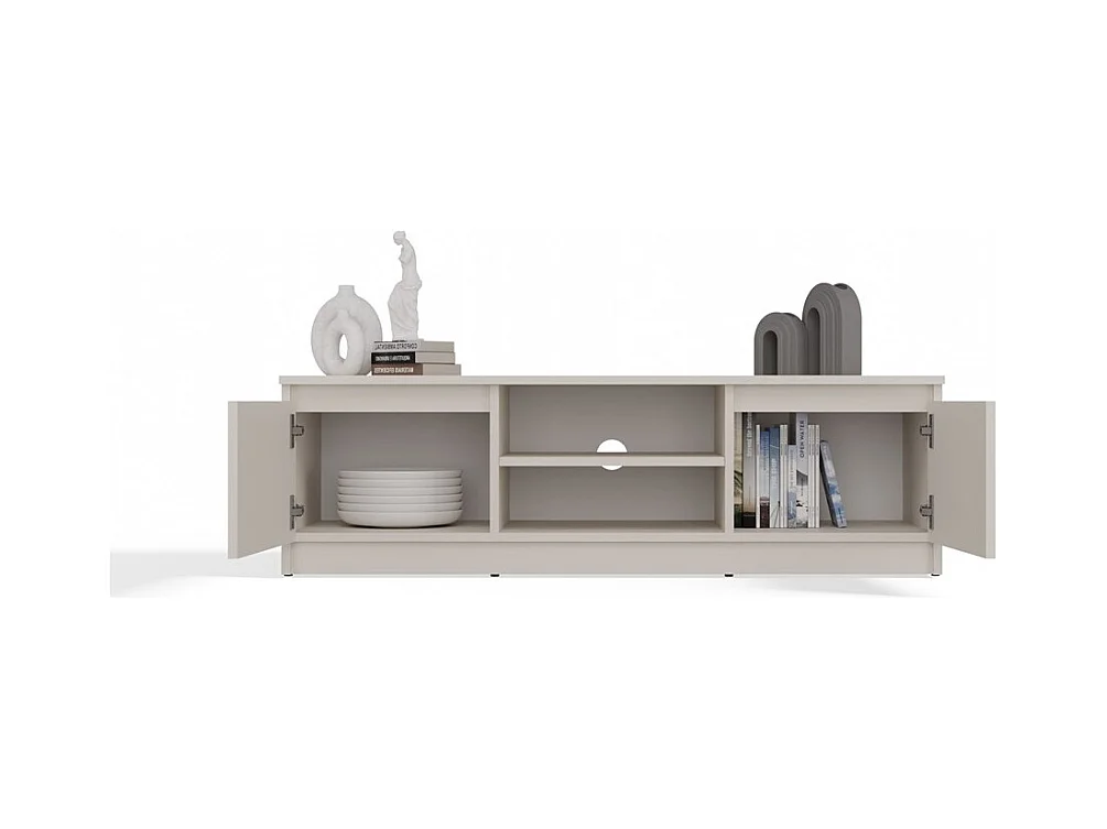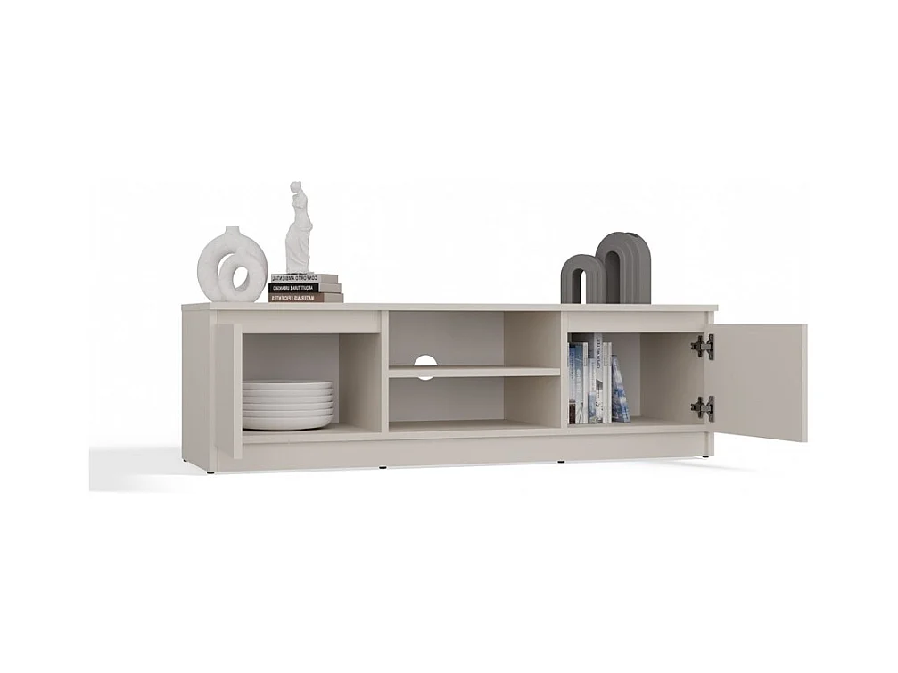 Meuble TV - 2 portes avec lamelles - 160 cm - beige - CALETTO