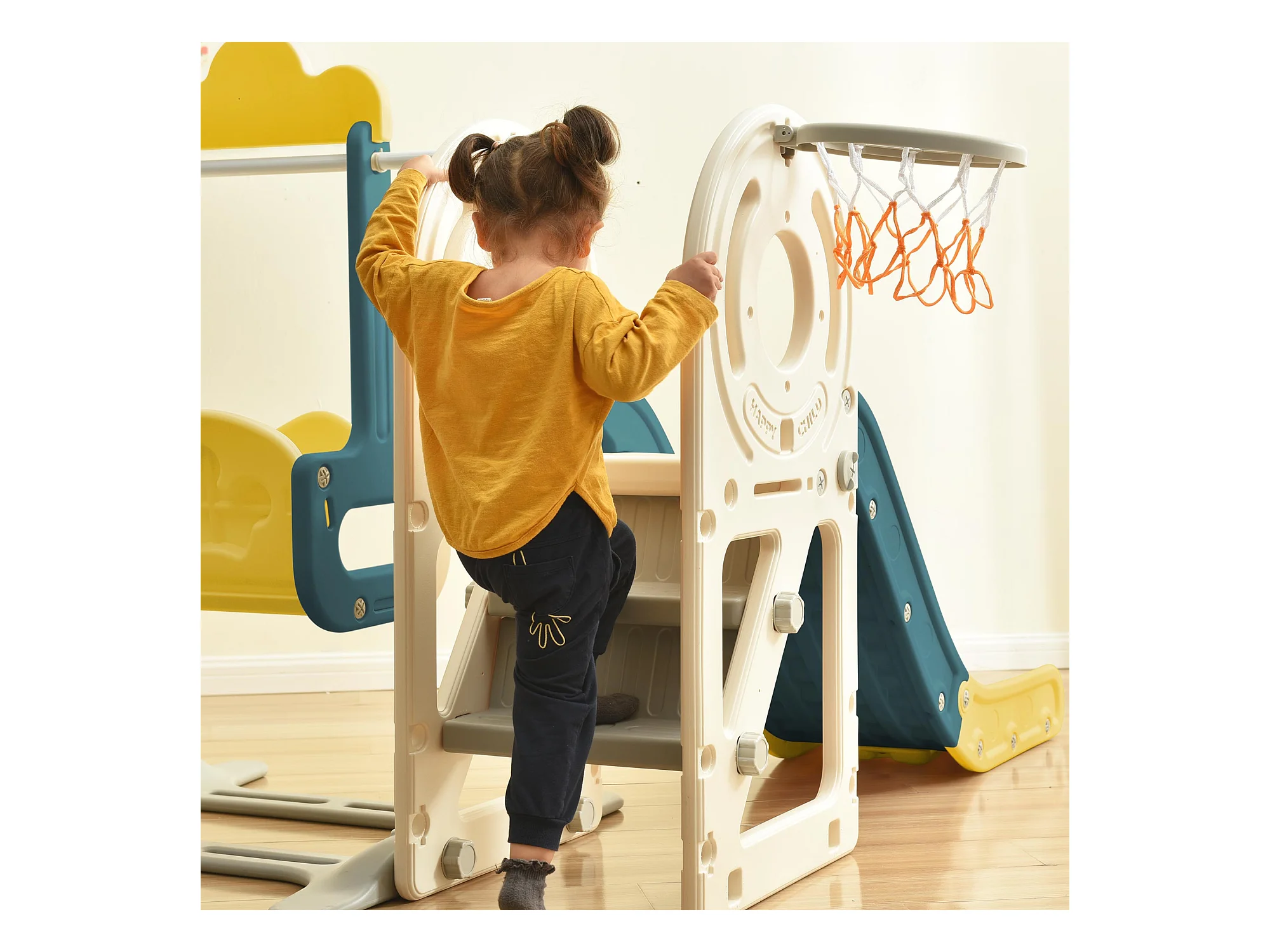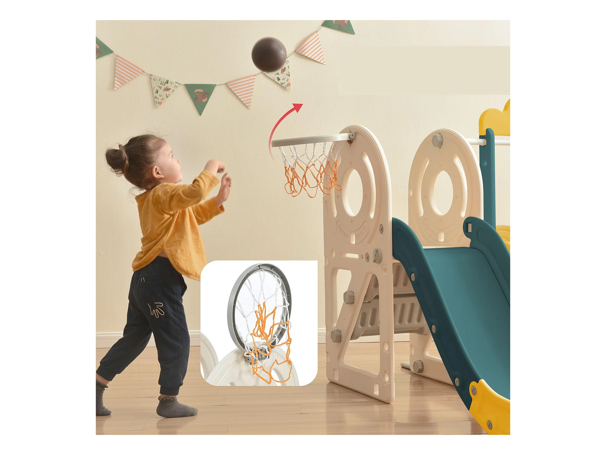 Toboggan 4 en 1 - avec escalier, espace de rangement, panier de basket - vert