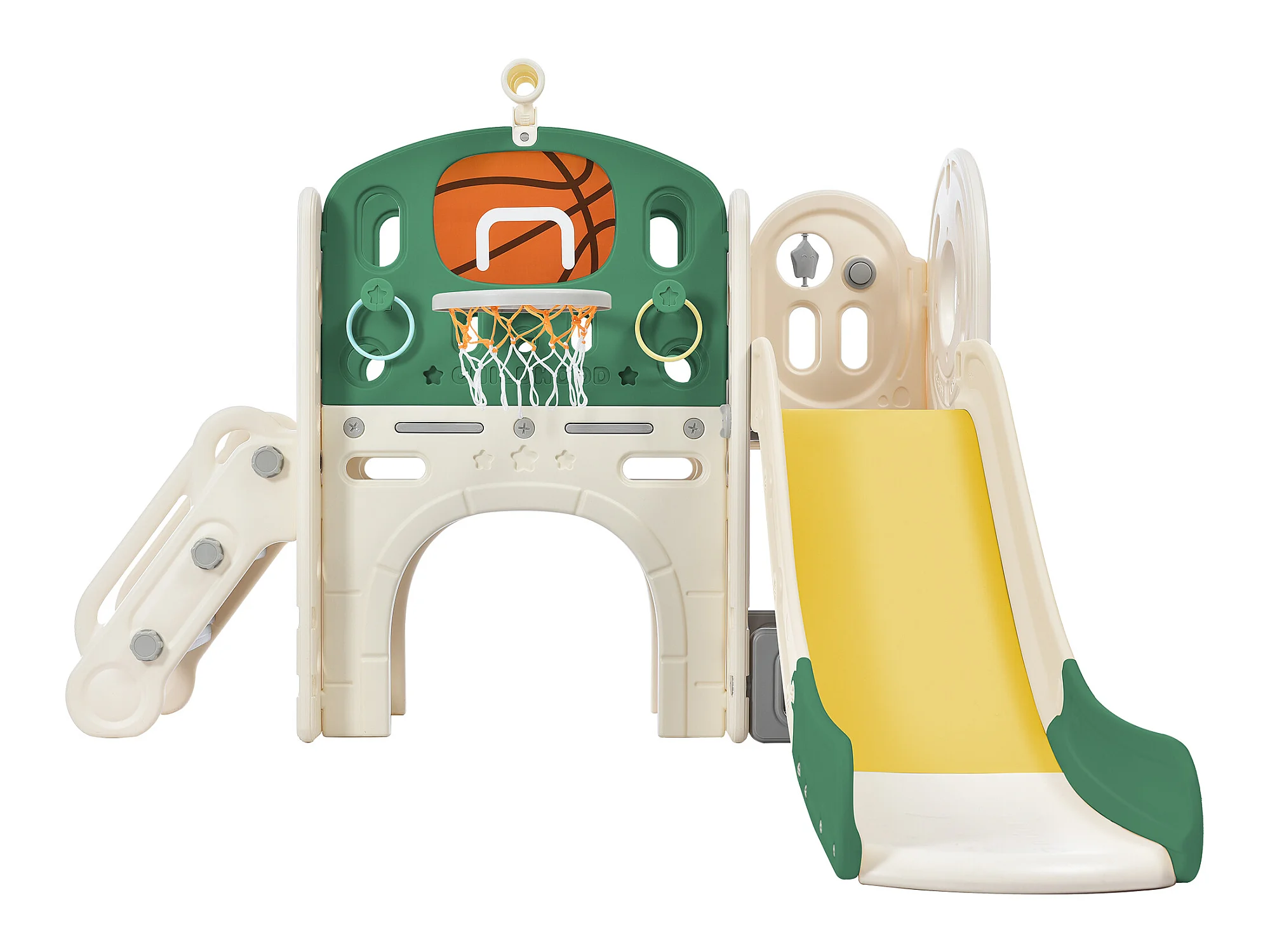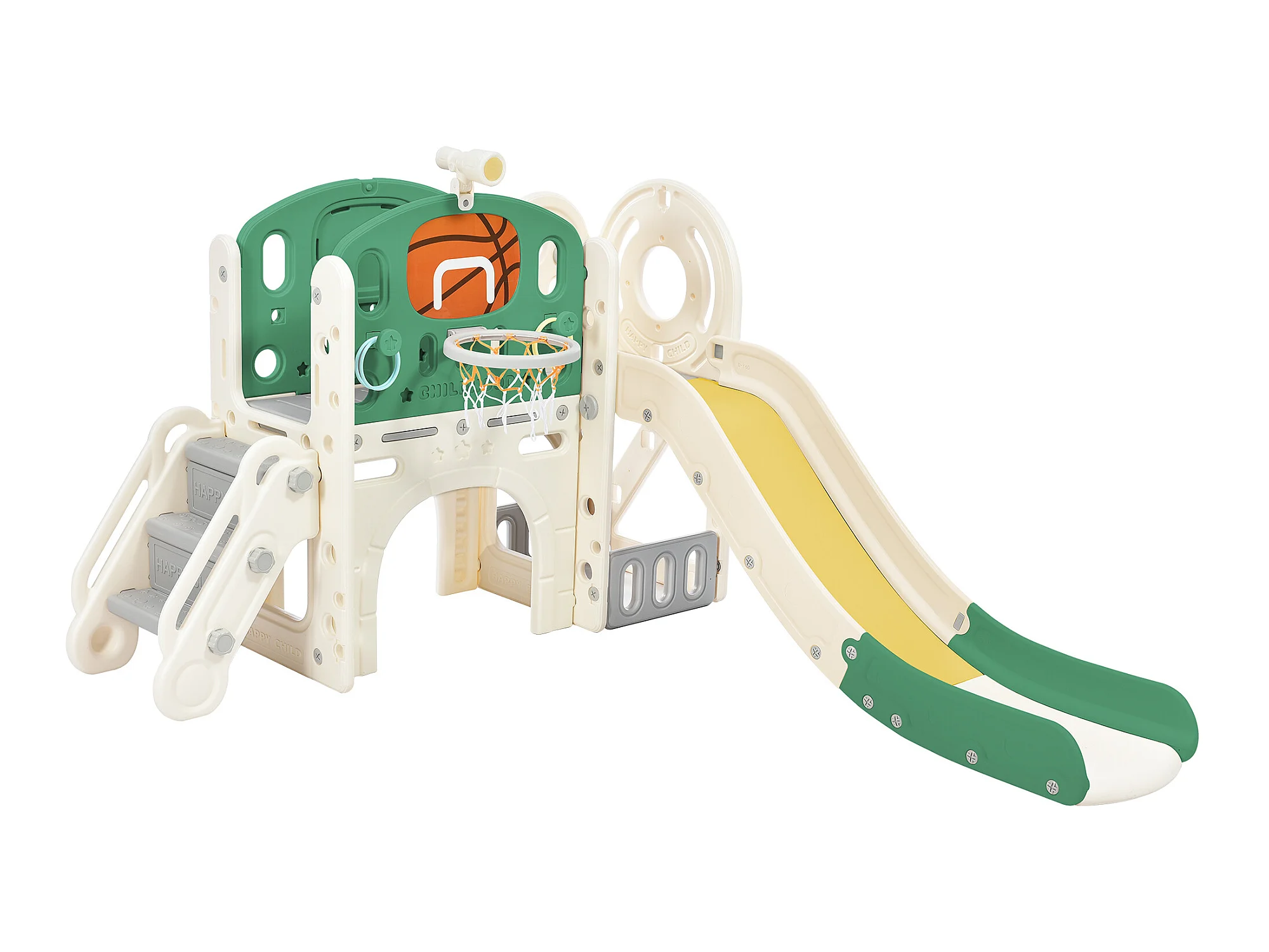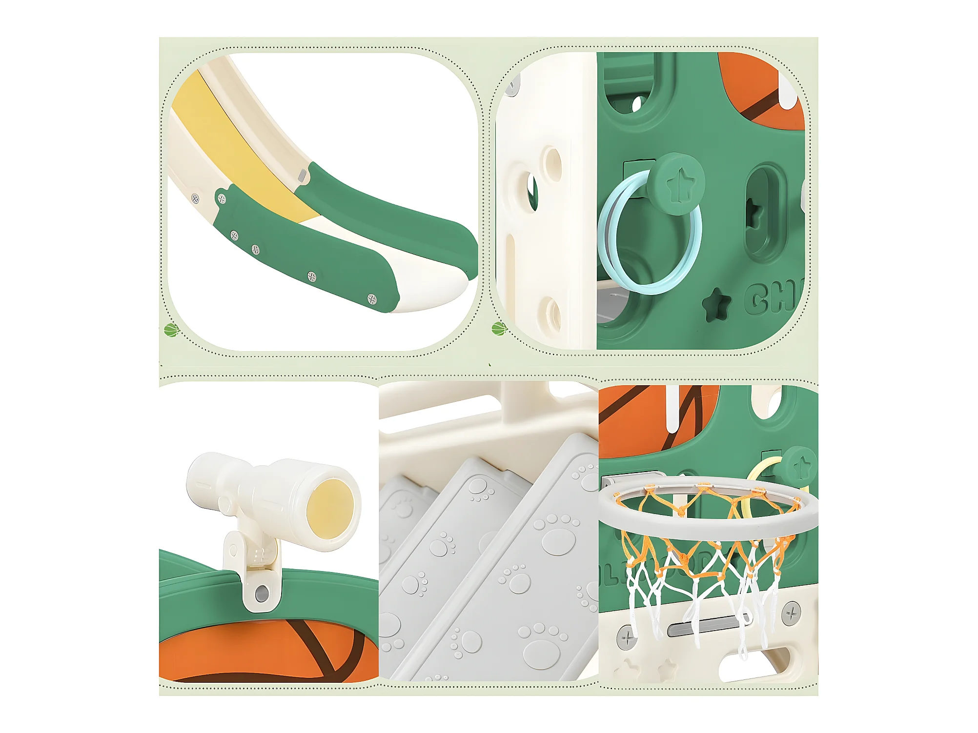 Toboggan 4 en 1 - avec escalier, espace de rangement, panier de basket - vert