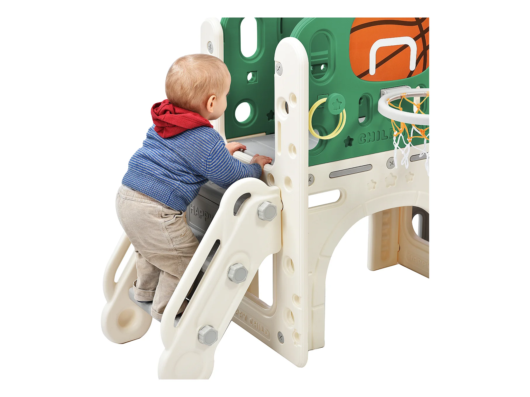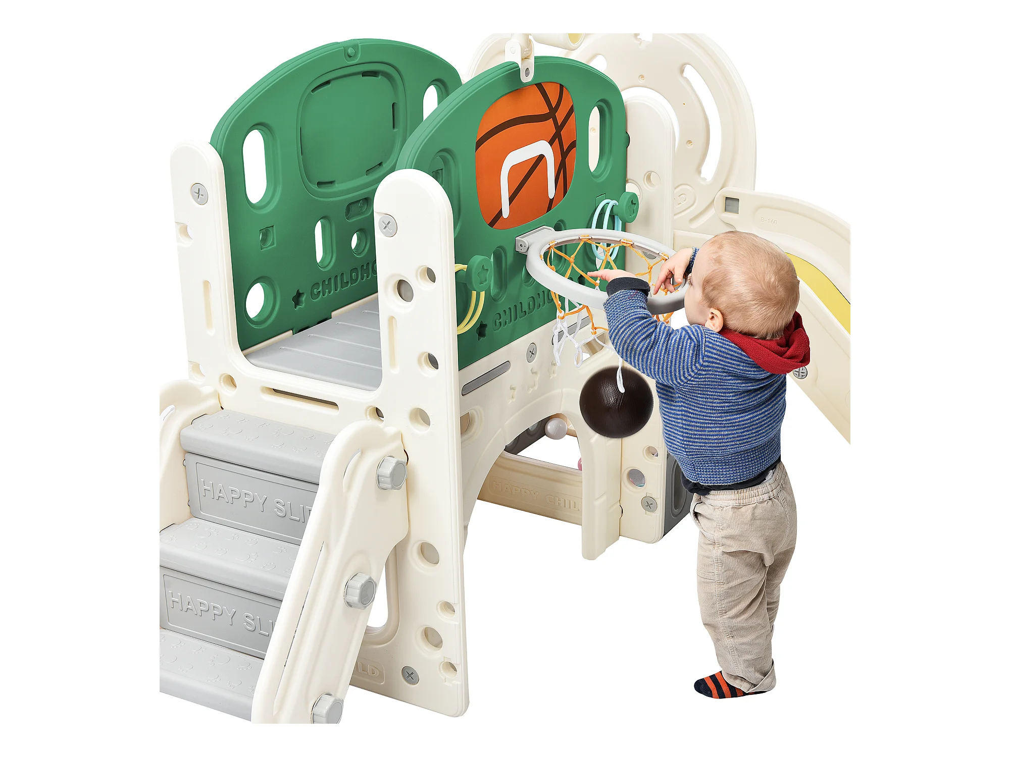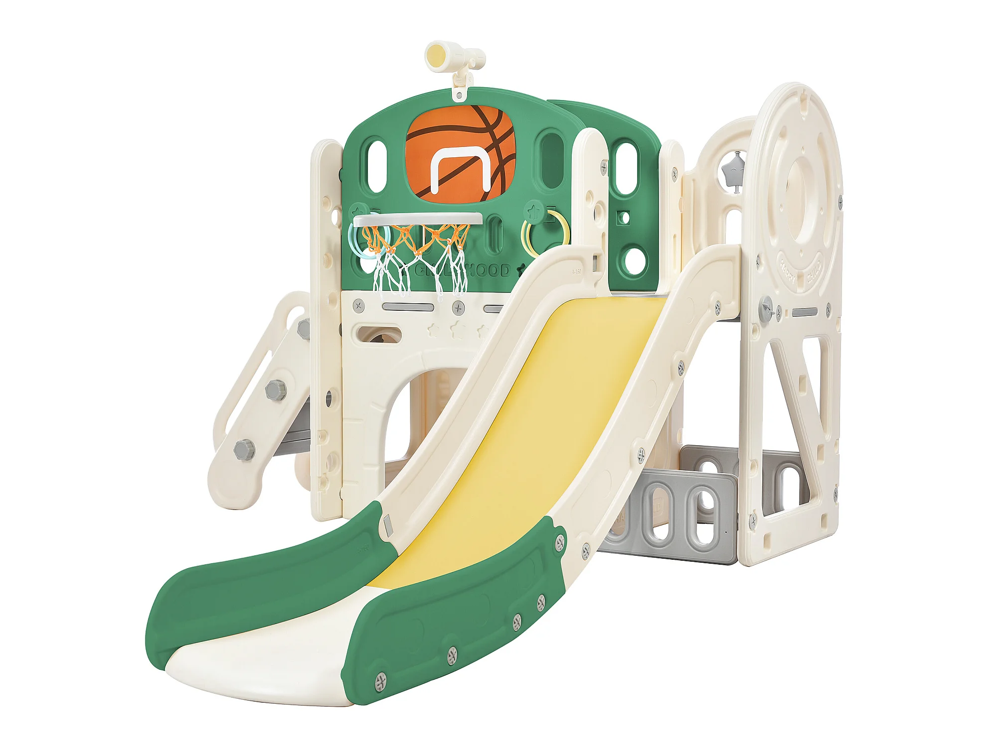 Toboggan 4 en 1 - avec escalier, espace de rangement, panier de basket - vert