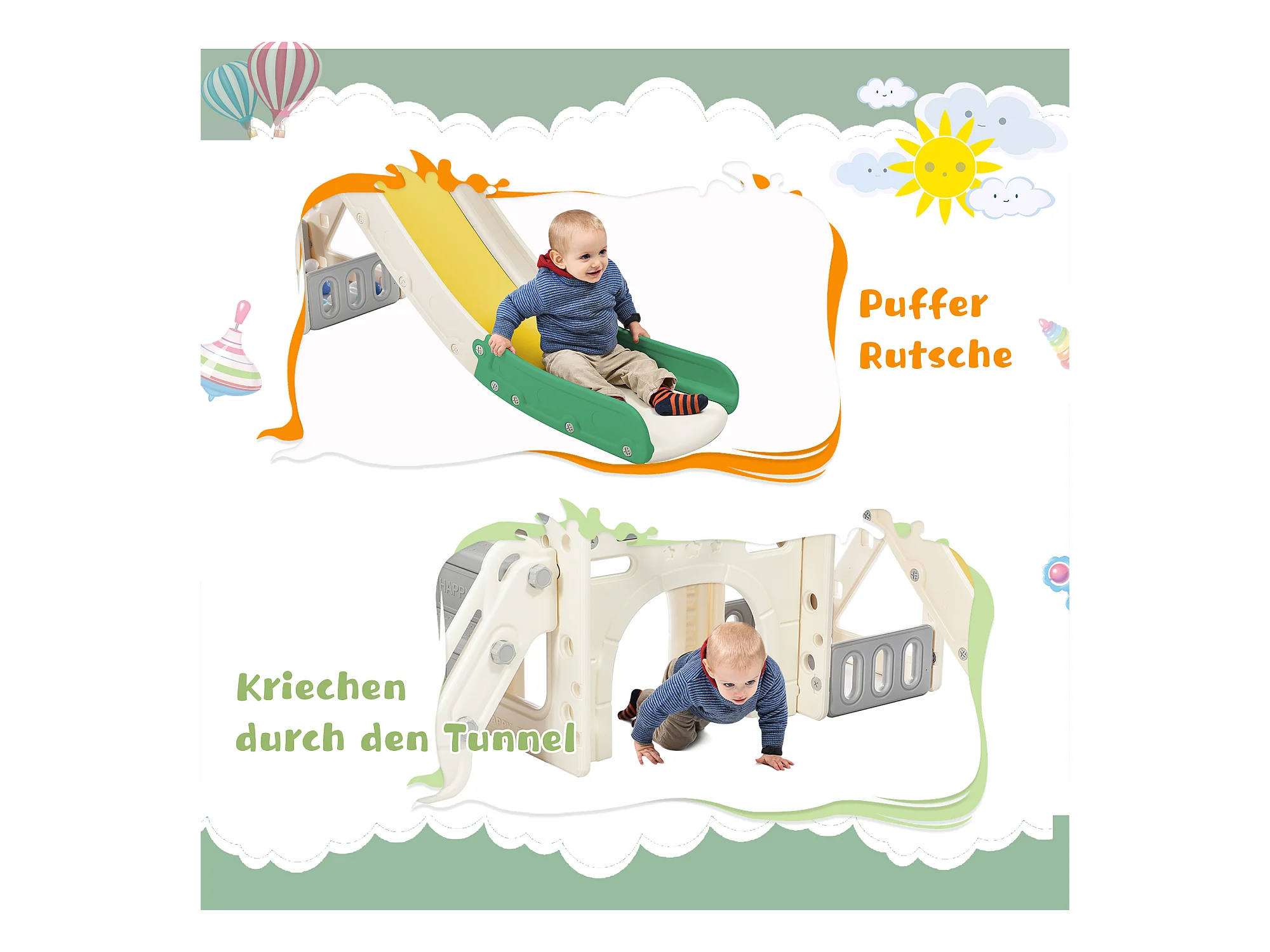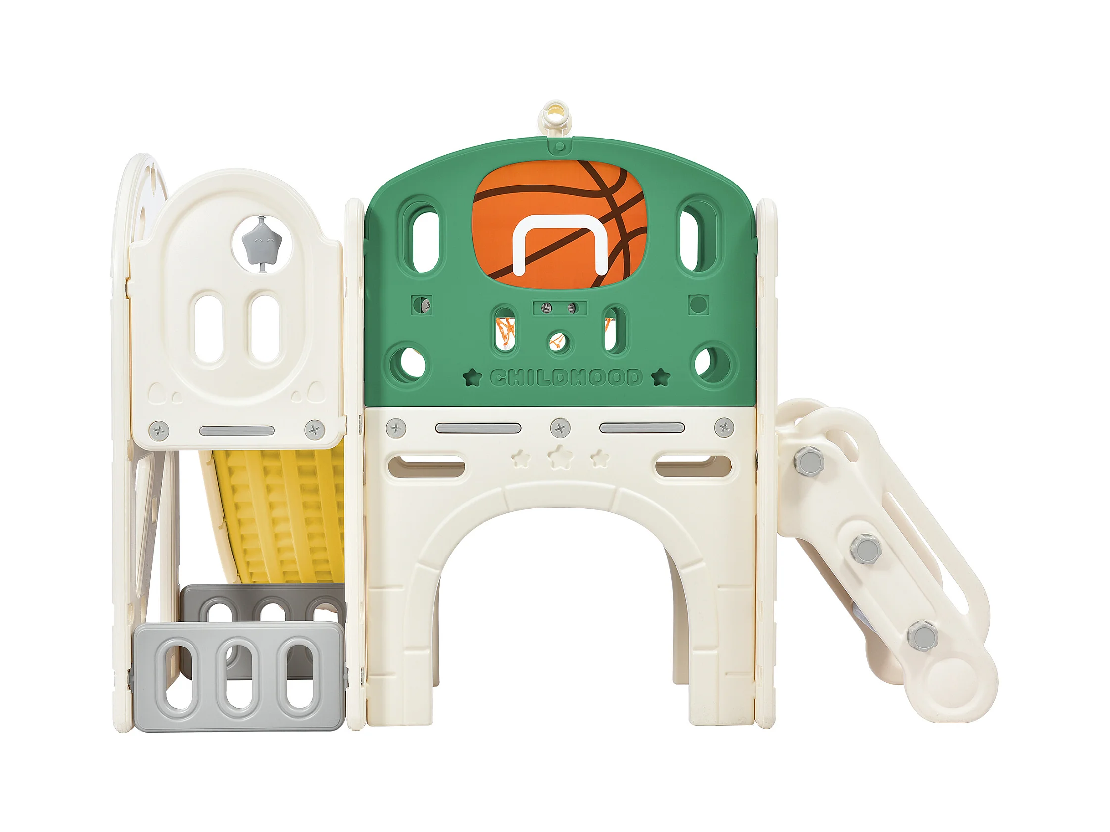 Toboggan pour Enfants,Aire de Jeux intérieure et extérieure- avec panier de basket, toboggan, ,Escalade- Vert