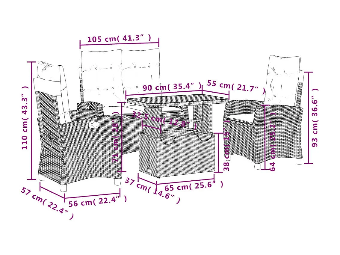 Toby Dean Ensemble à manger de jardin 4 pcs avec coussins noir