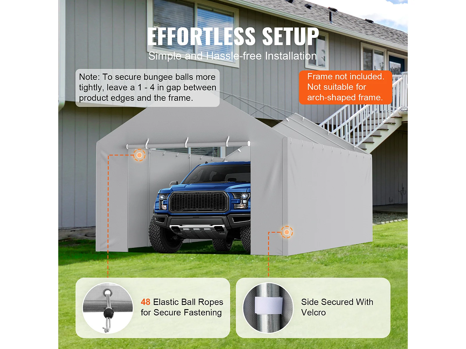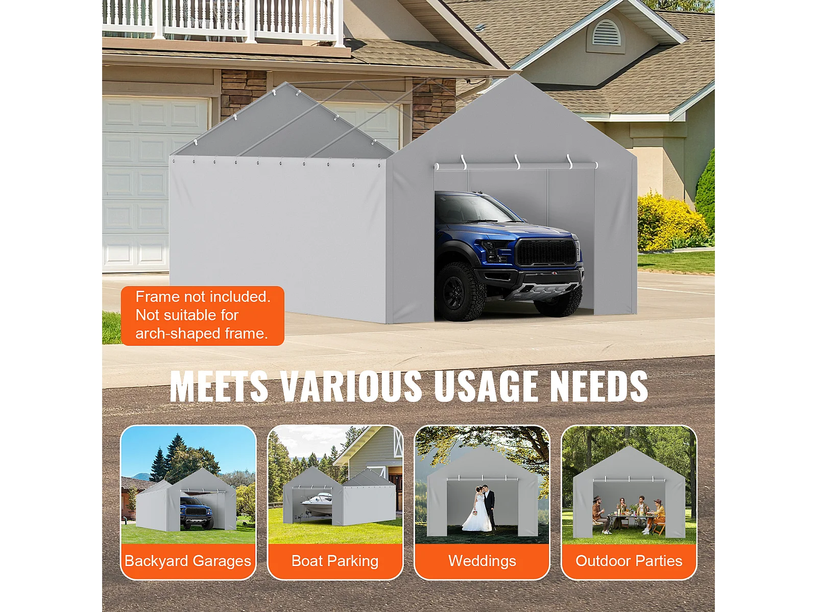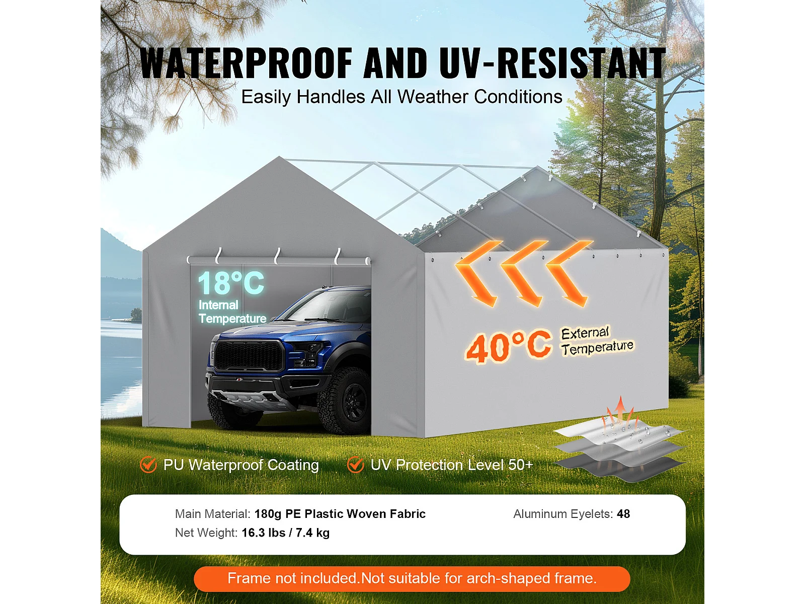 Toile D'Avent SucceBuy de Rechange pour Abri D'Auto, 396 x 610 cm, Gris, Bâche Robuste pour Abri de Garage, Imperméable et Protégée Contre les UV