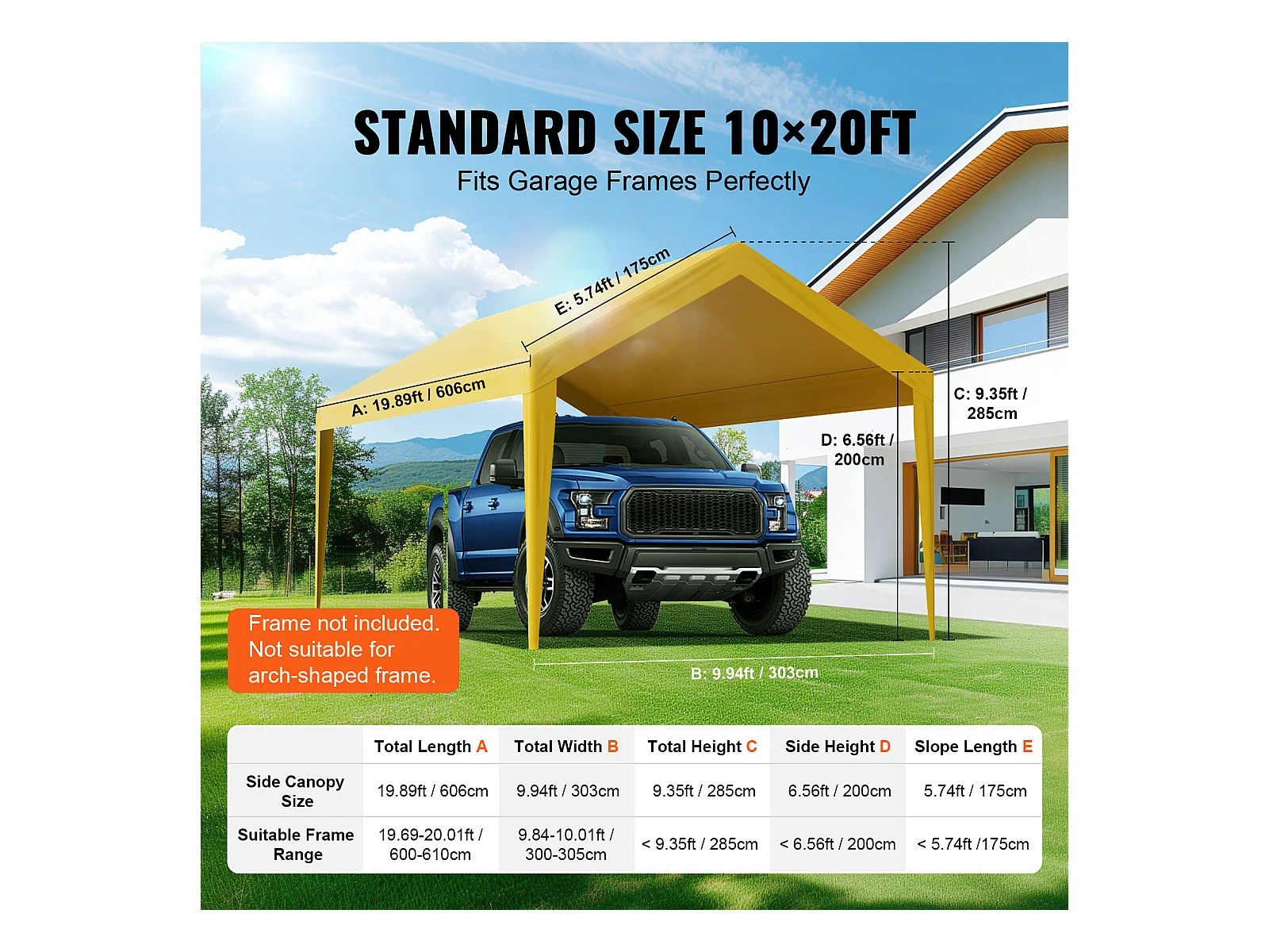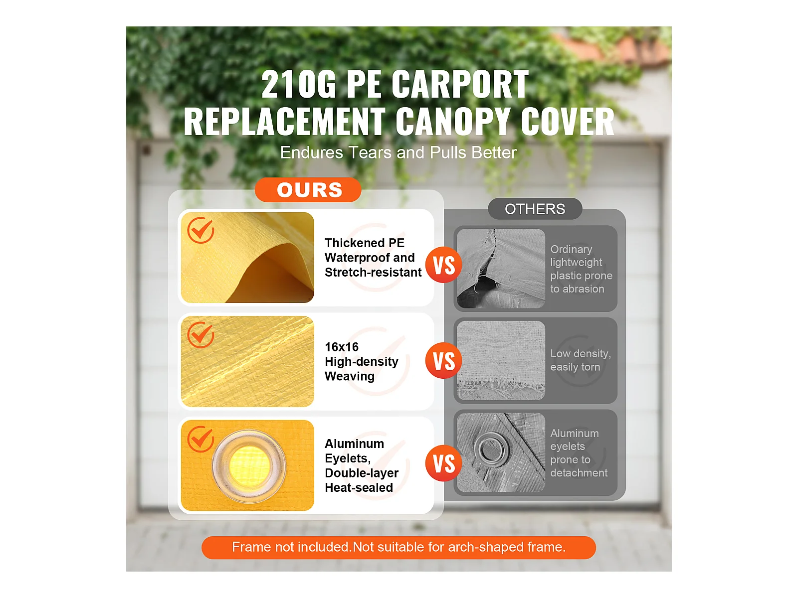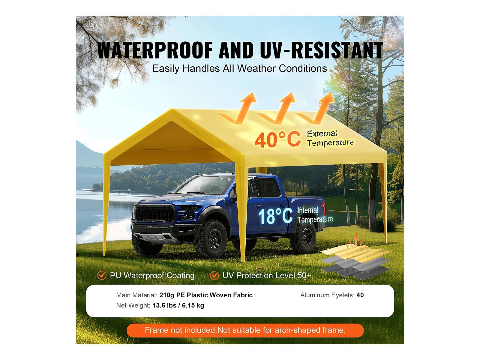 Toile de Rechange Carport SucceBuy, 6,09x3,65 m, Bâche Toit Abri Voiture, Couverture Supérieure Tente Garage Portable, Résistante UV Imperméable, Beige