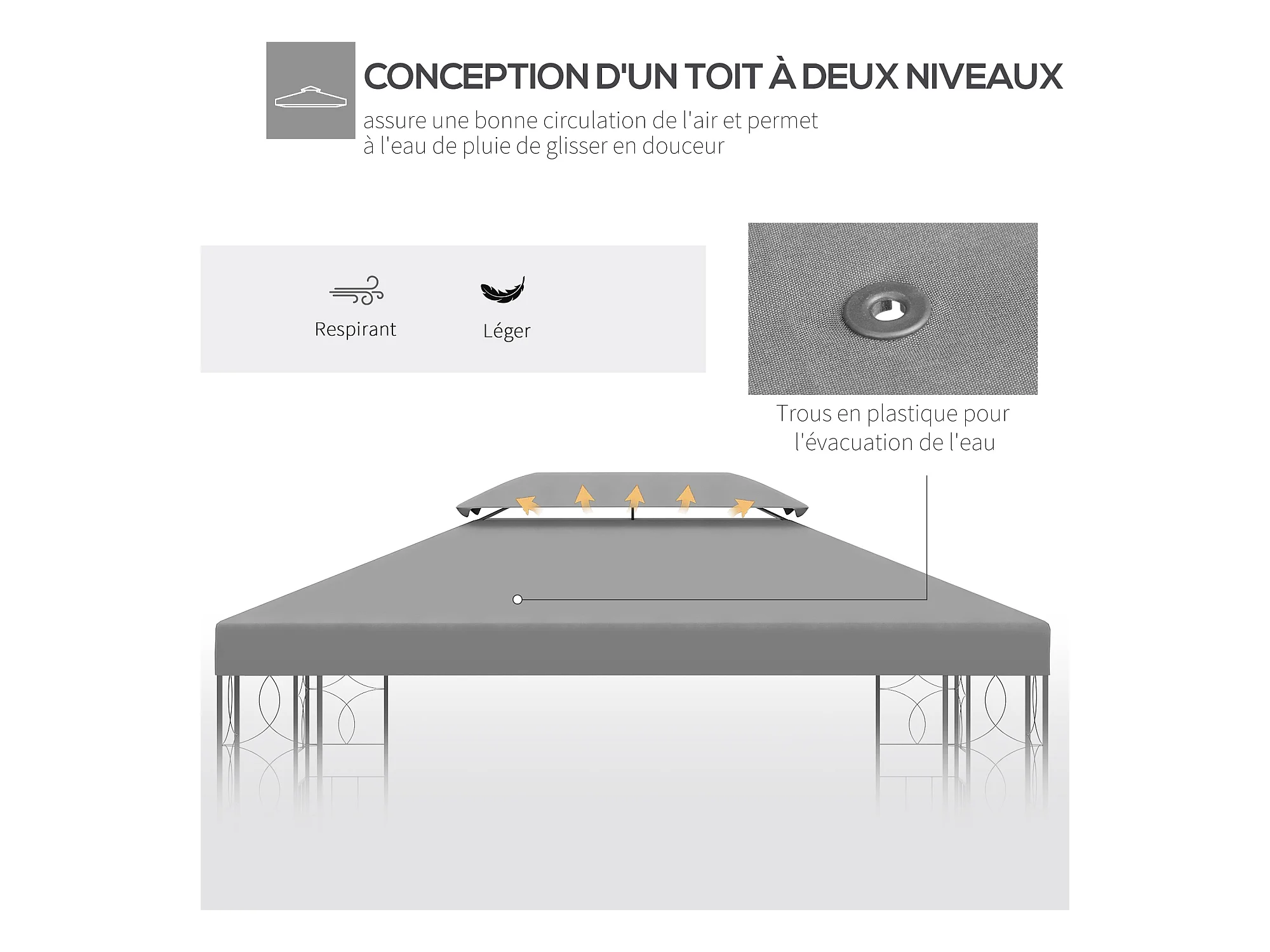 Toile de rechange pour pavillon tonnelle tente 3 x 4 m polyester haute densité 180 g/m² gris clair