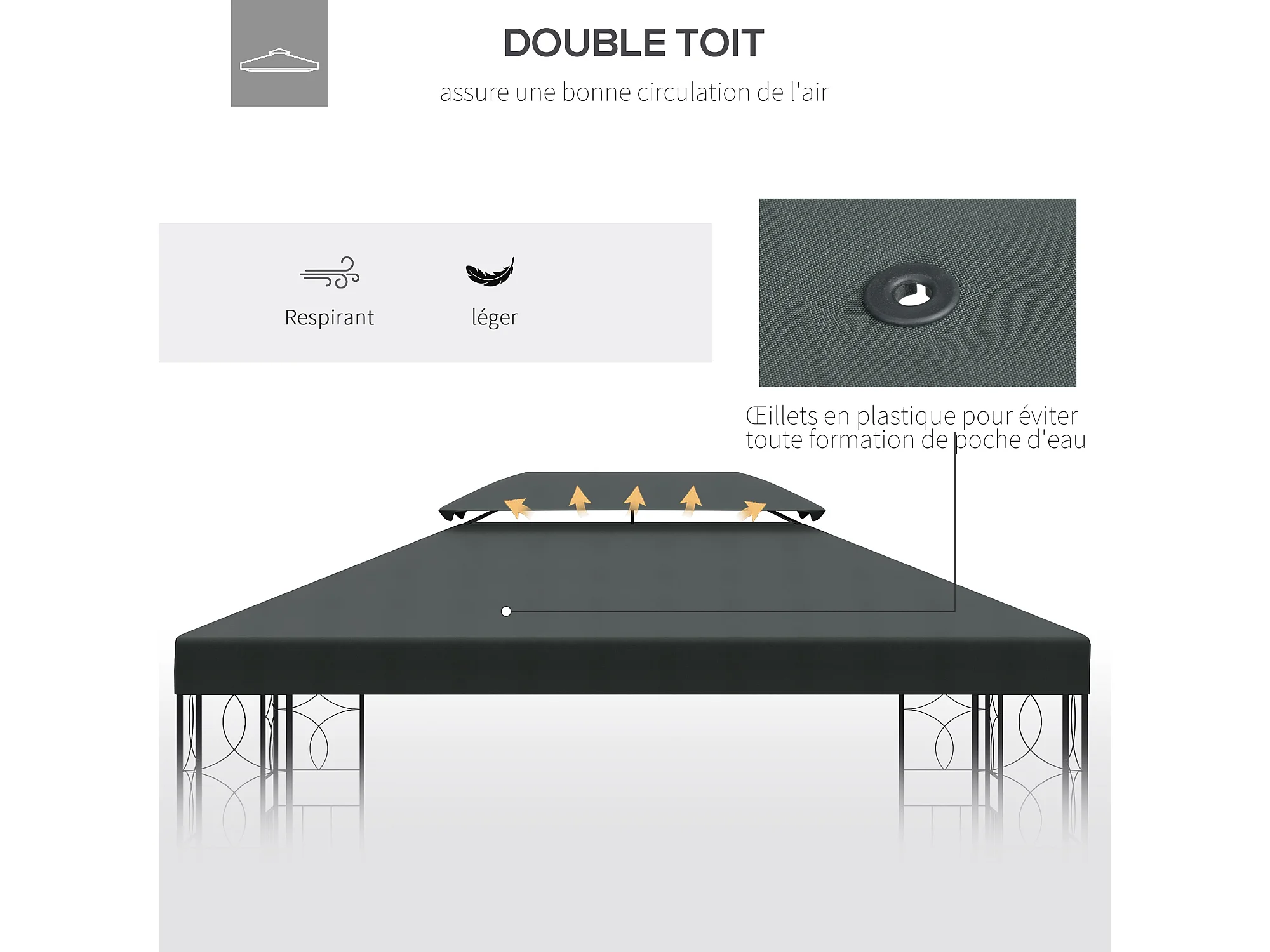 Toile de rechange pour pavillon tonnelle tente 3 x 3 m polyester haute densité 180 g/m² gris foncé