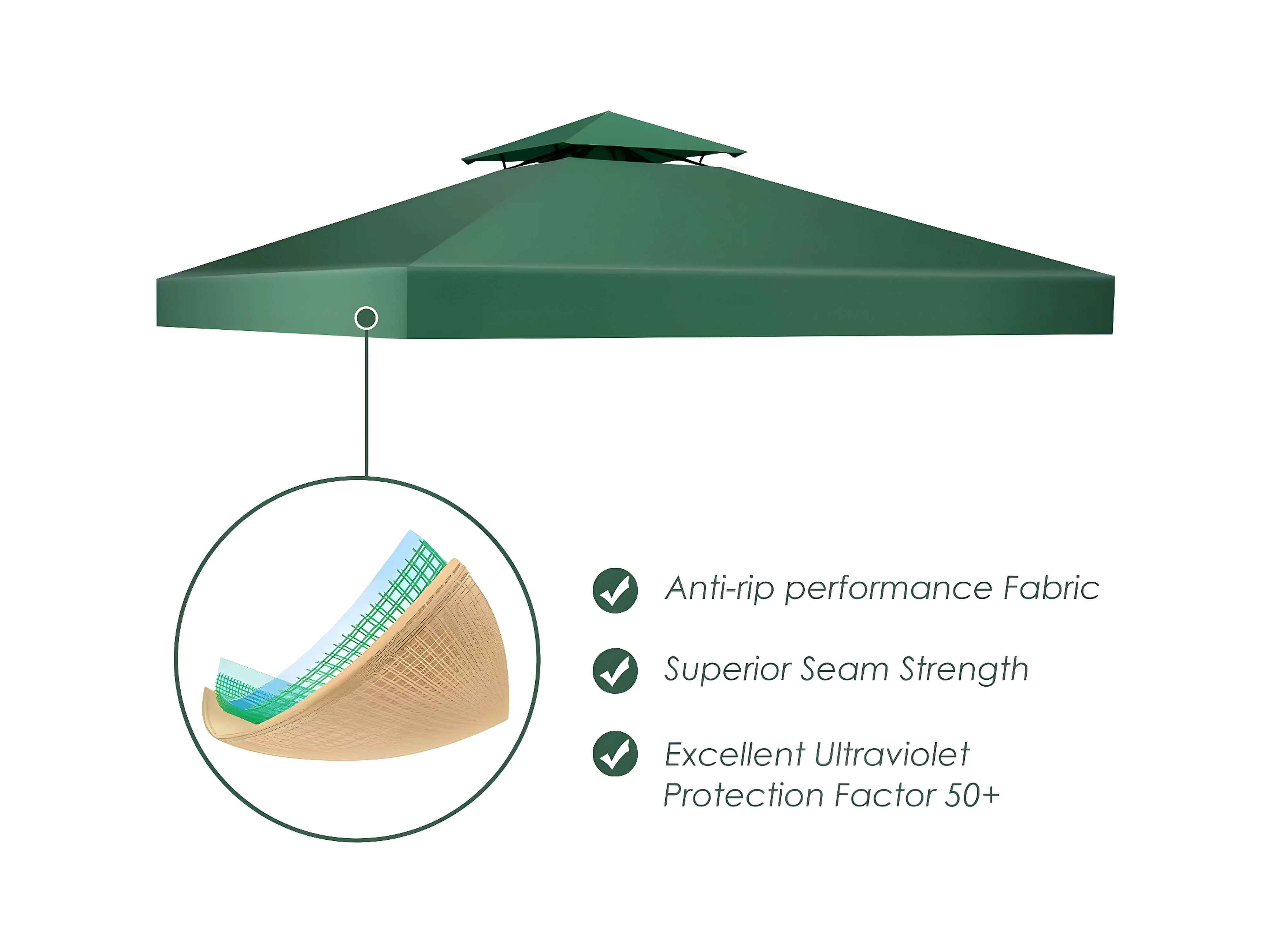 Toile de Toit de Rechange en Plastique et vinyle Impérméable de Jardin pour Pavillon Tonnelle Tente, 3 x 3 M (Vert foncé)