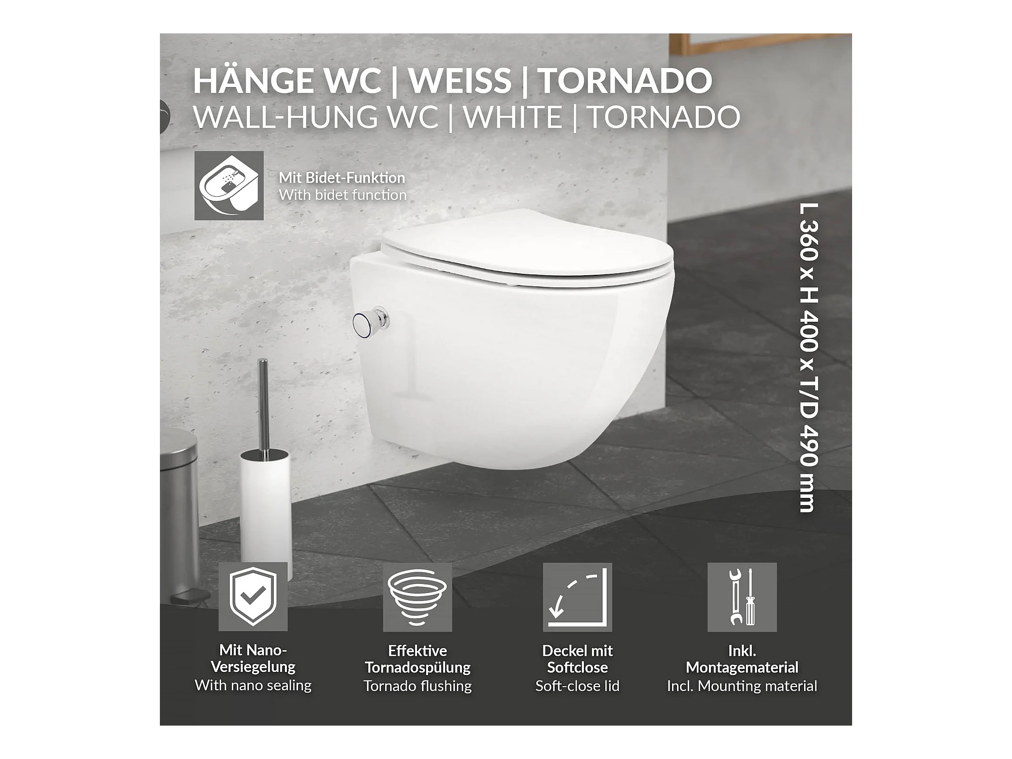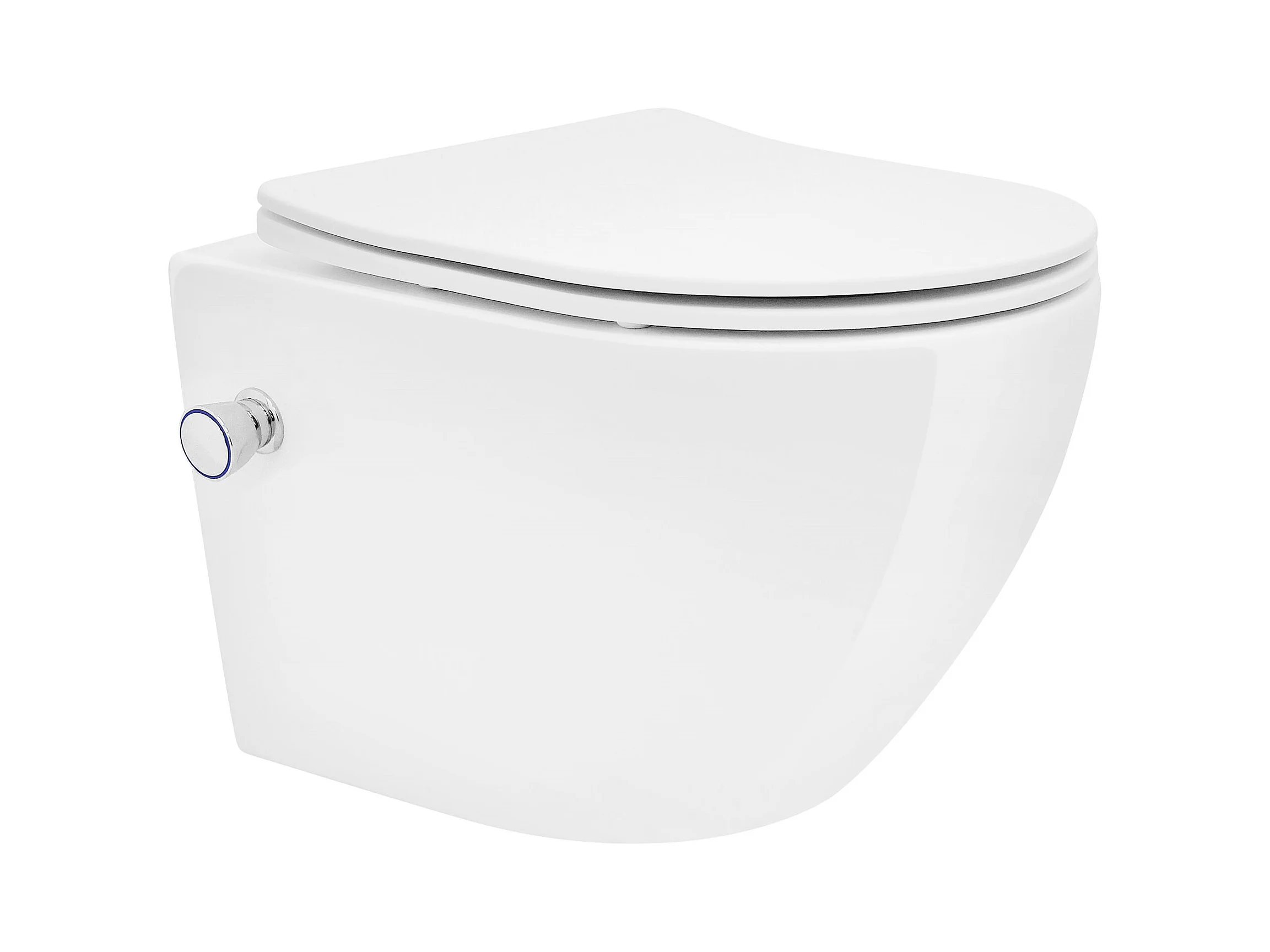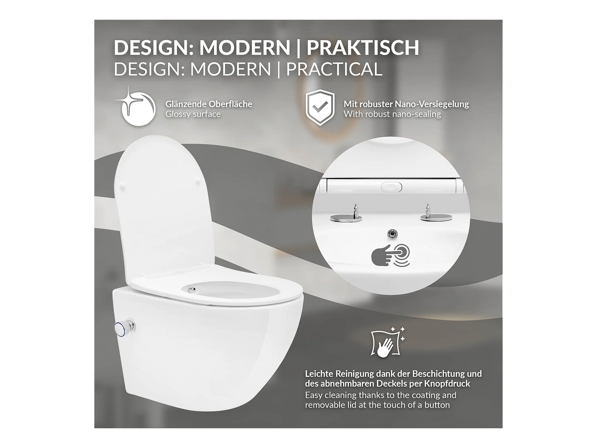 Toilette suspendu blanc sans rebord nano-revêtement+fonction bidet salle de bain