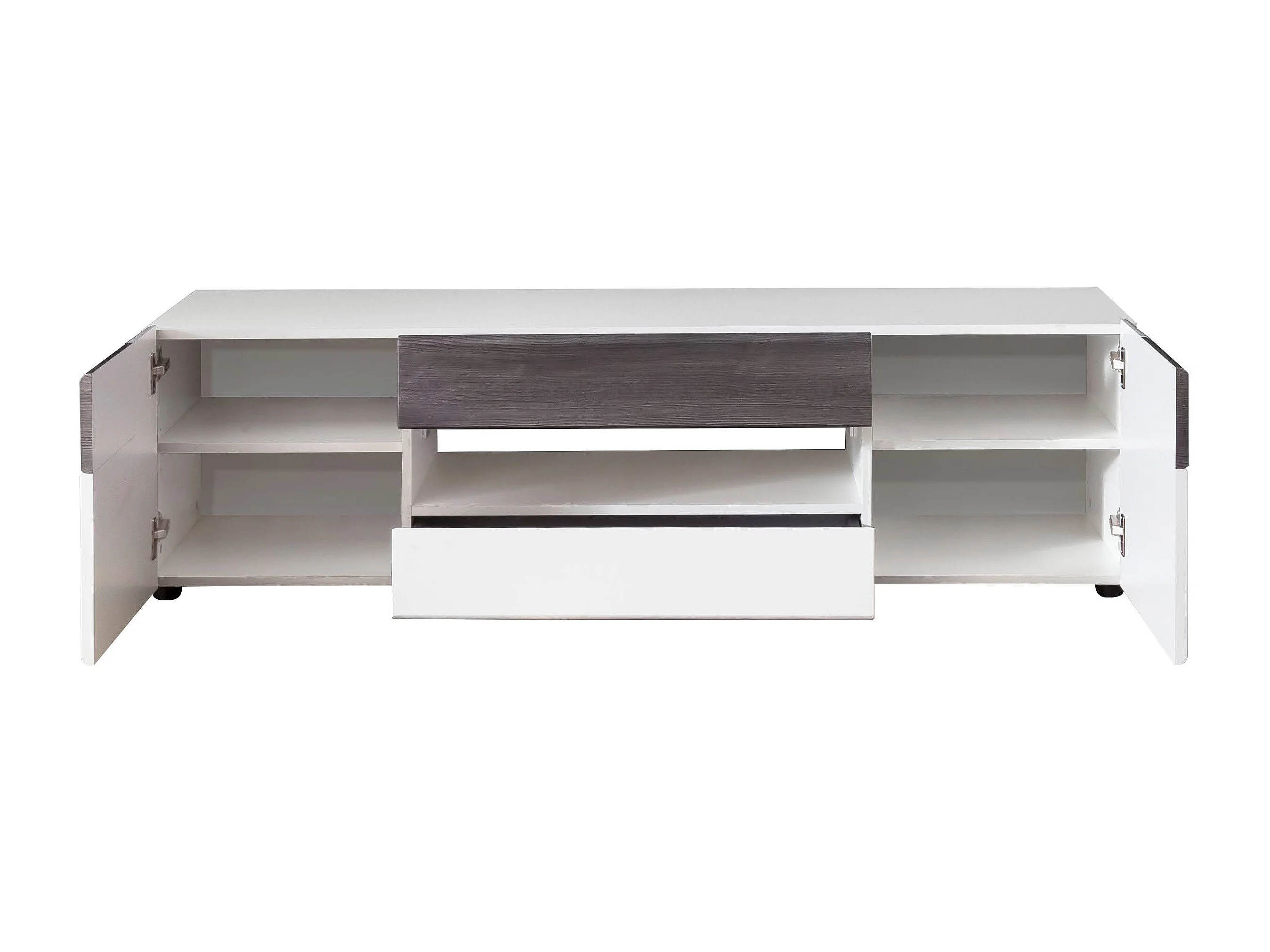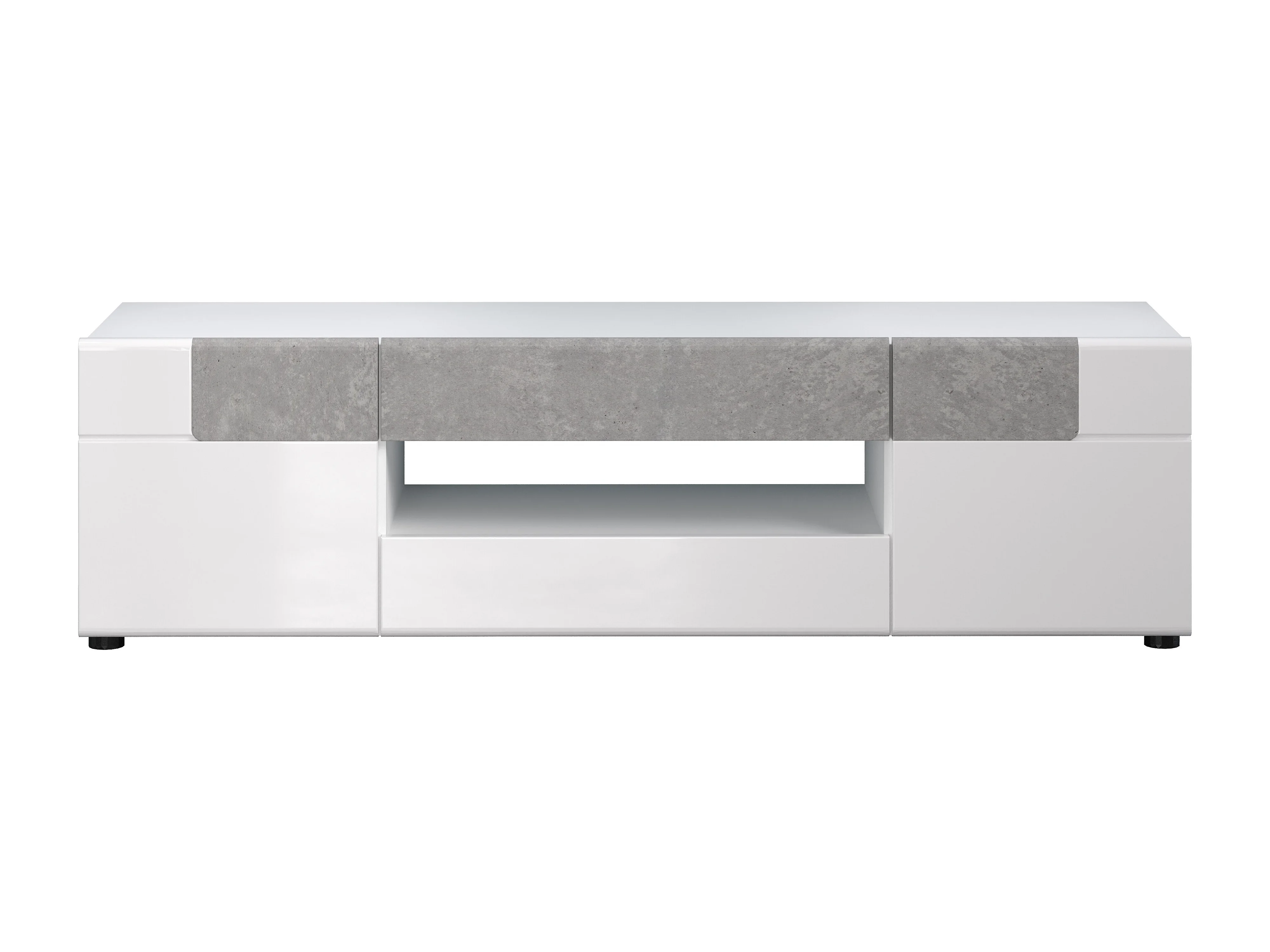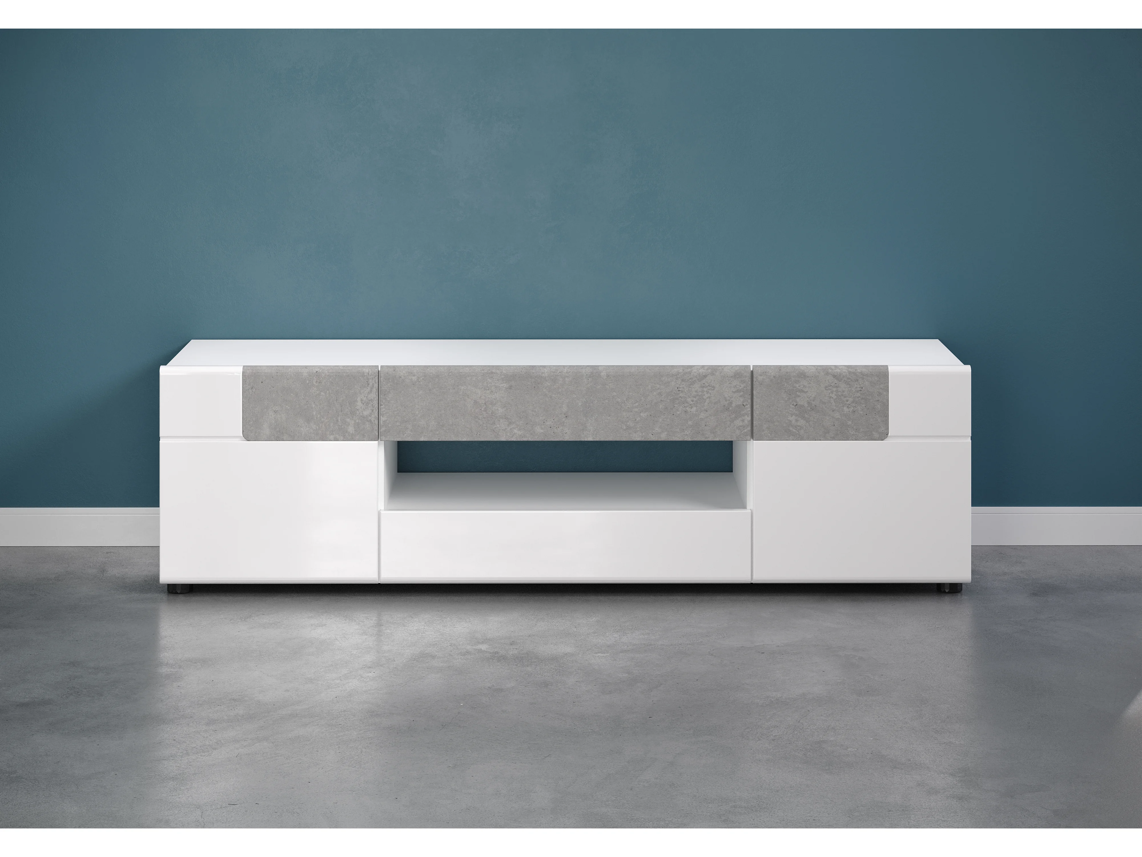 Meuble TV laqué blanc et gris clair ciment Tako 153cm