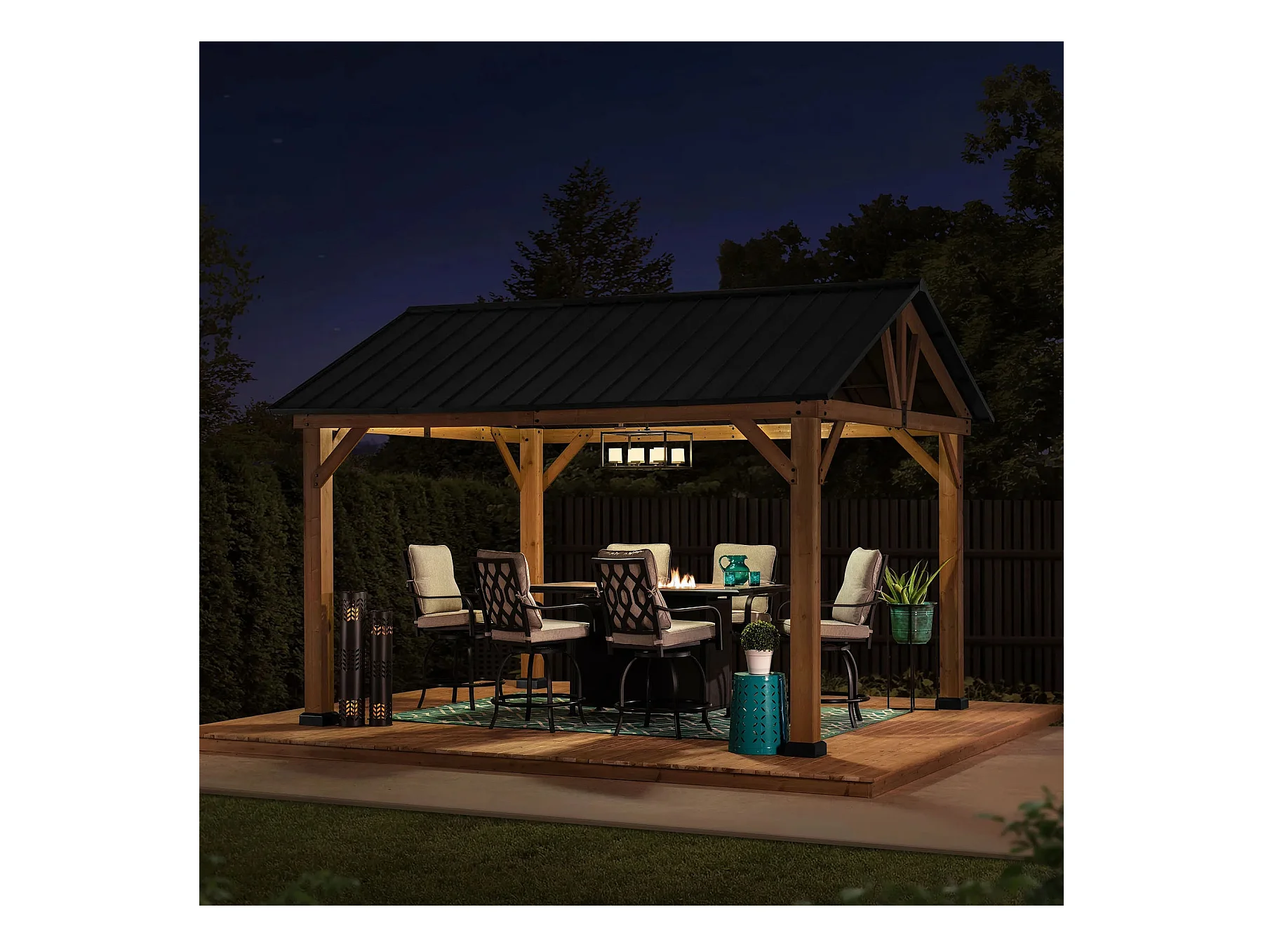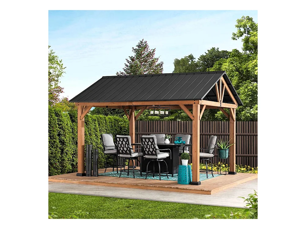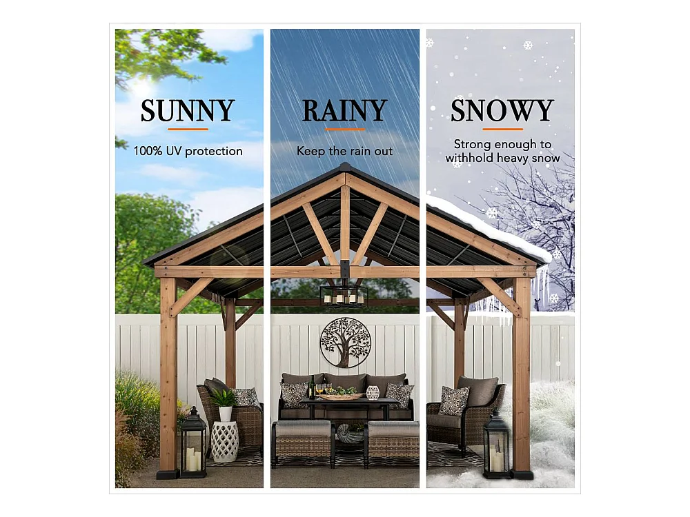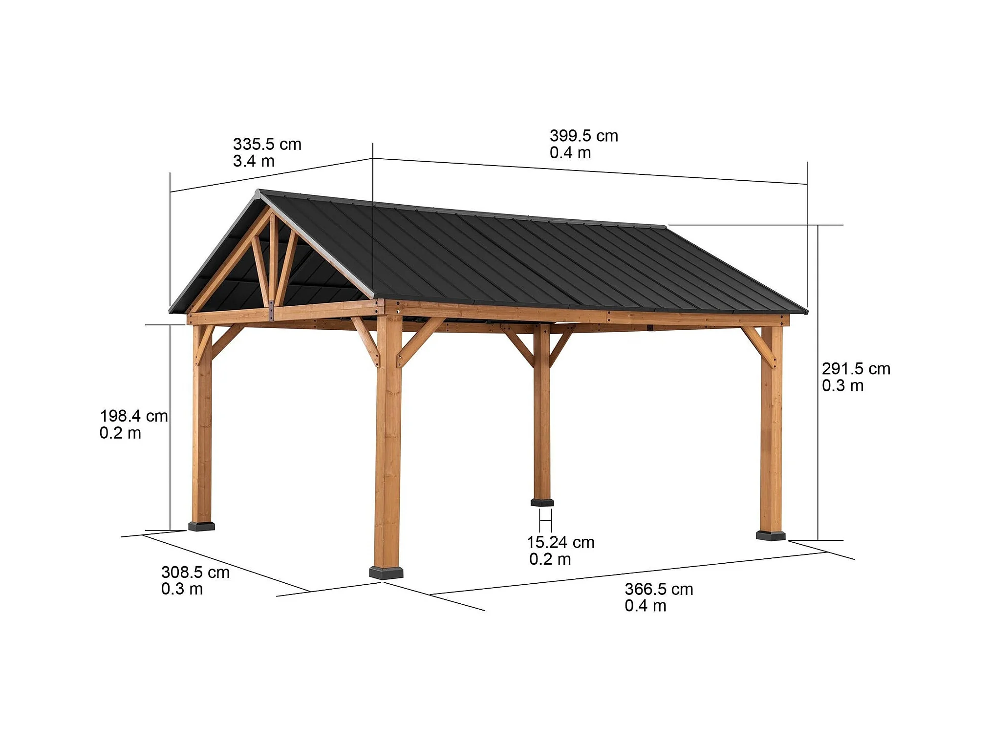 Tonnelle à toit à pignon avec cadre en bois et crochet de plafond TÖDI 335 cm x 399 cm