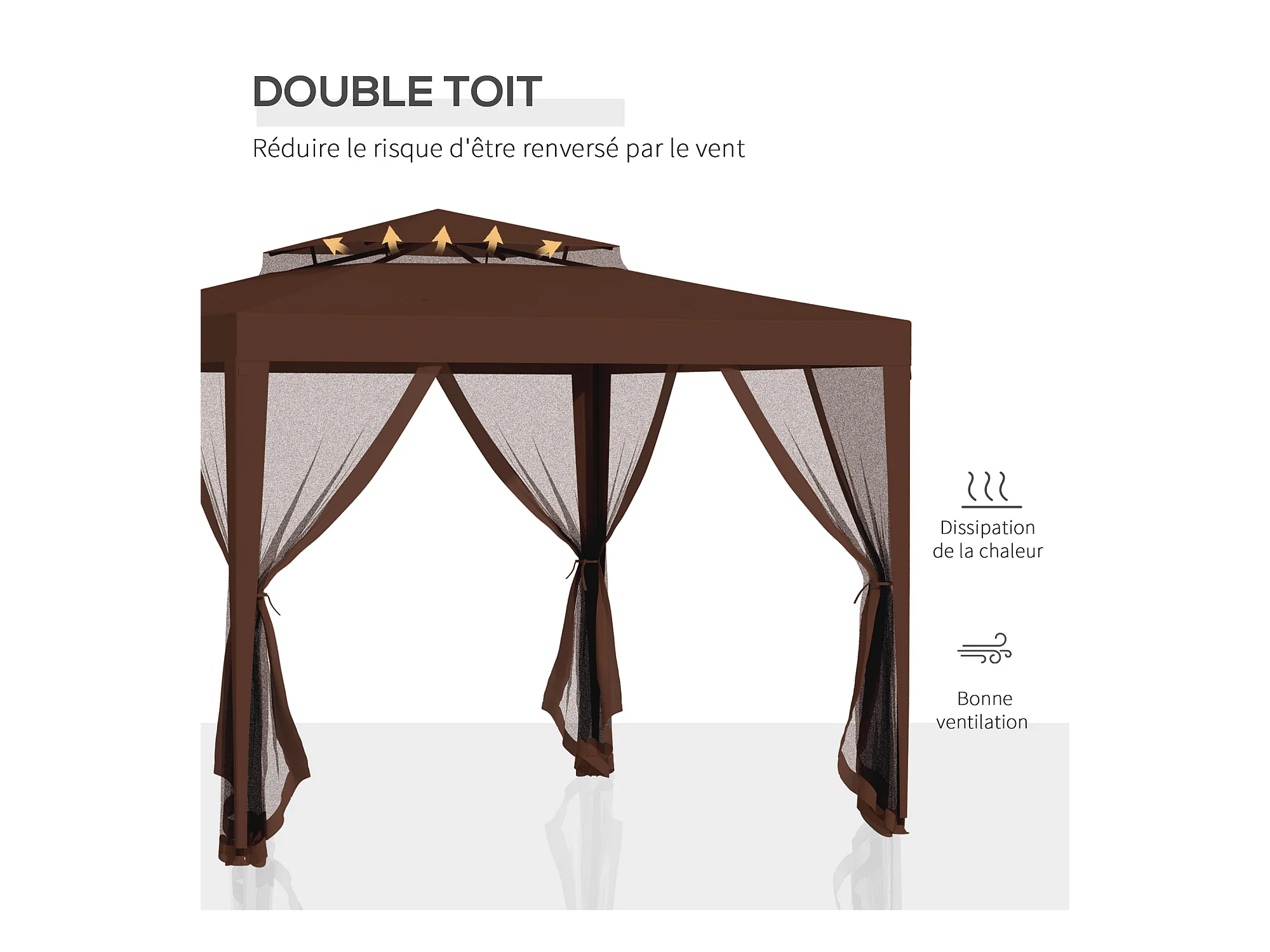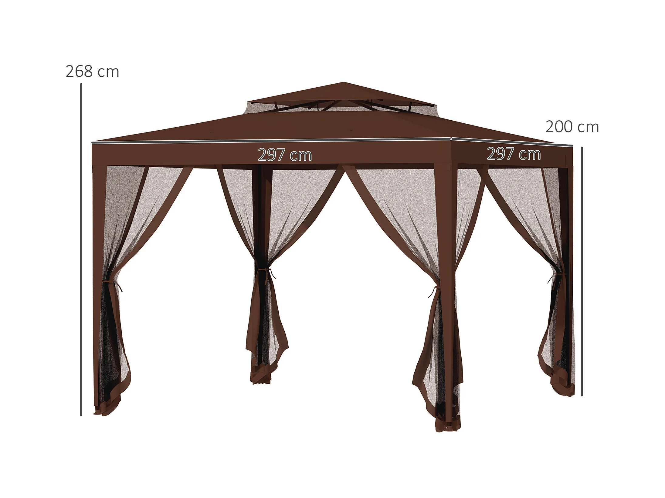 Tonnelle barnum de jardin 3L x 3l m avec 4 moustiquaires amovibles - double toit - métal polyester marron