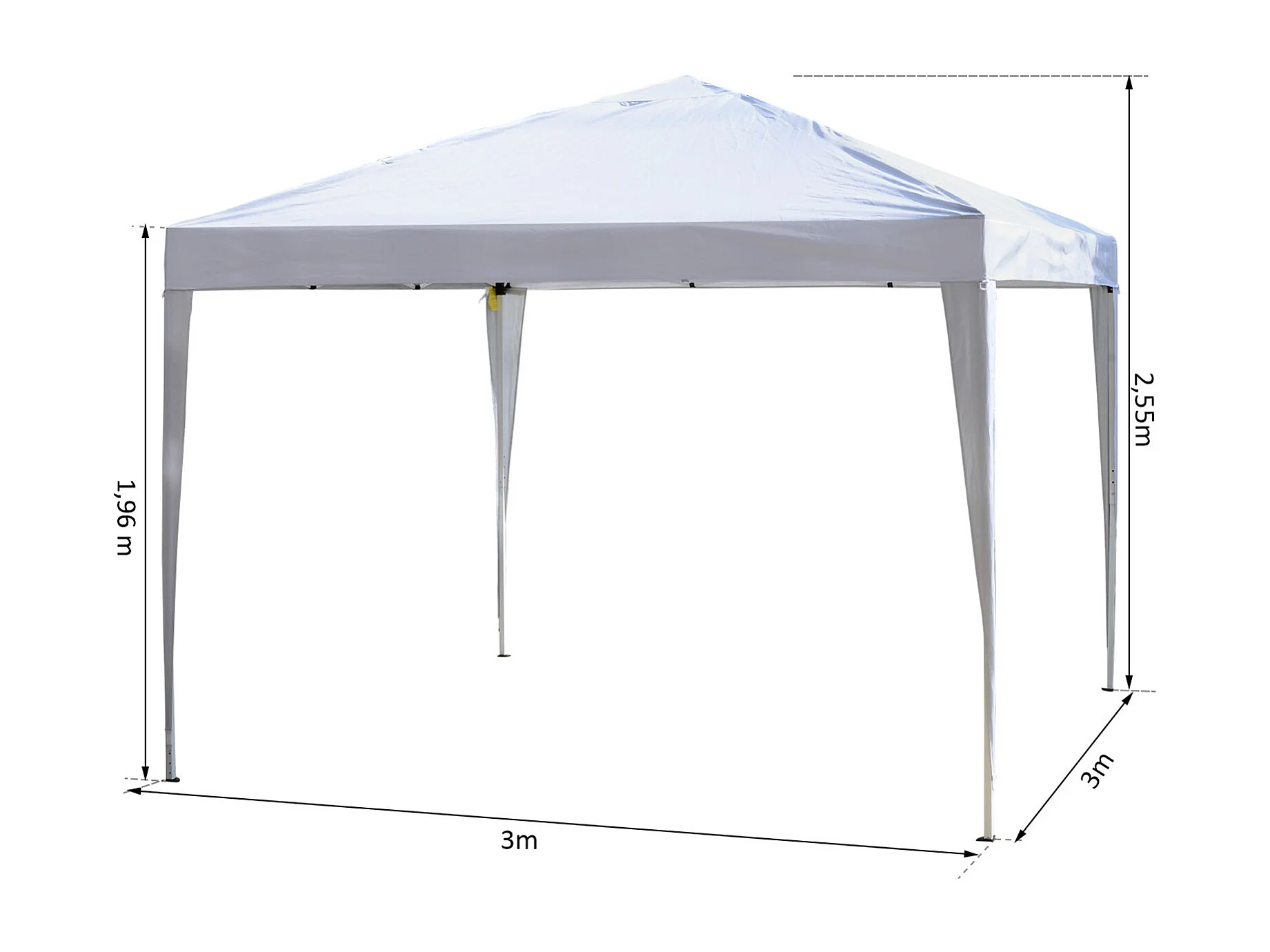 Tonnelle barnum pliant pop-up 3L x 3l x 2,84H m 4 parois latérales amovibles 2 fenêtres + sac de transport métal Oxford blanc