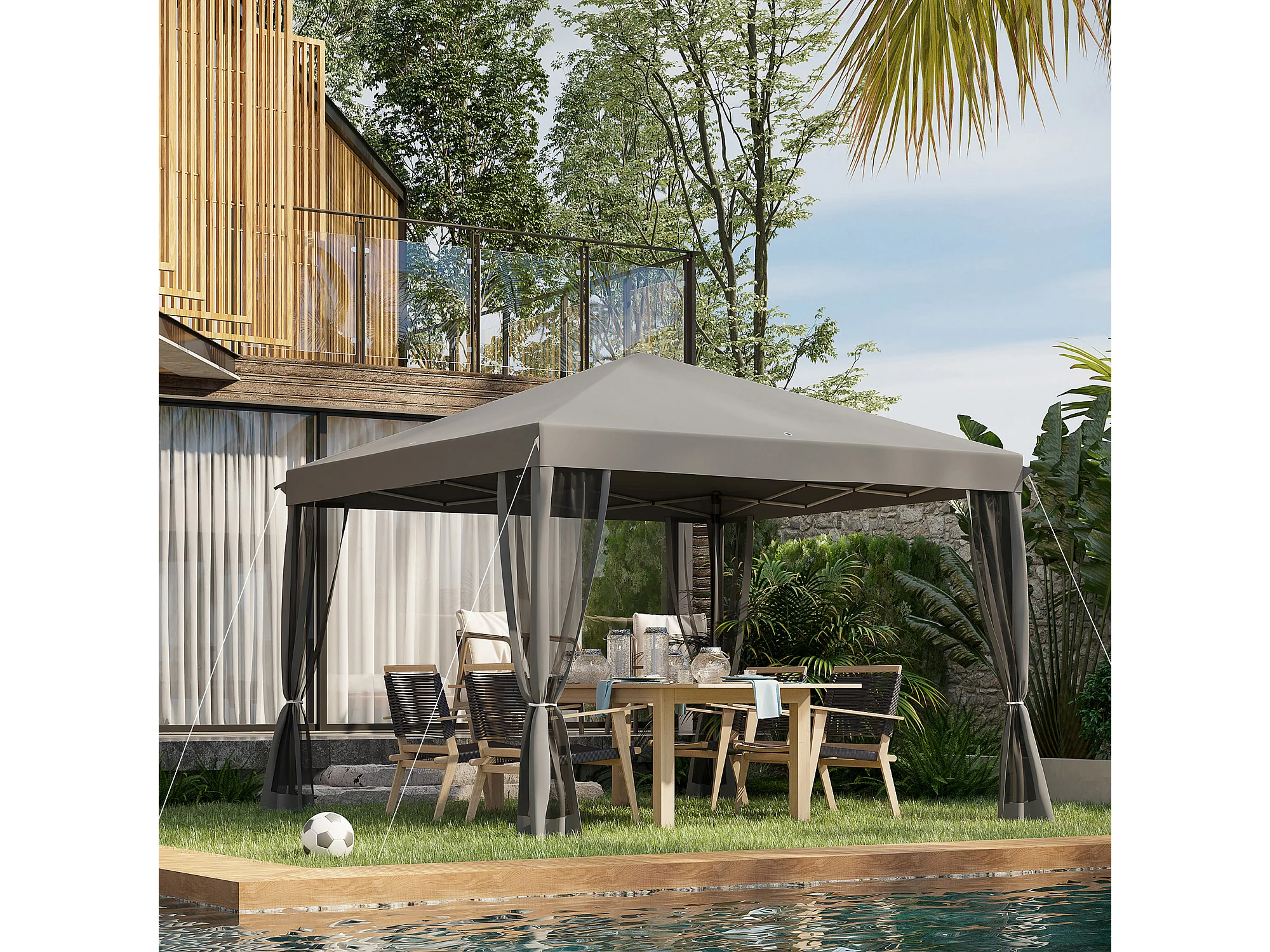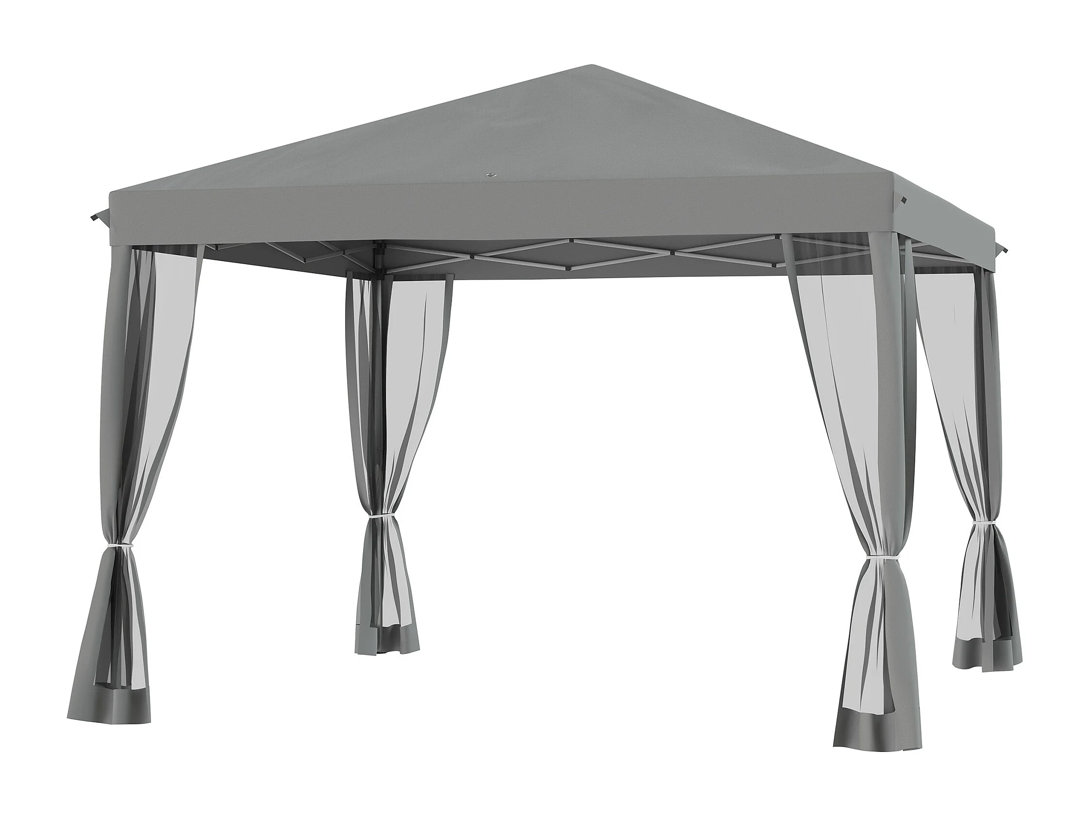 Pavillon de jardin style contemporain - barnum avec rideaux - dim. 2,96L x 2,96l x 2,8H m - alu. polyester gris
