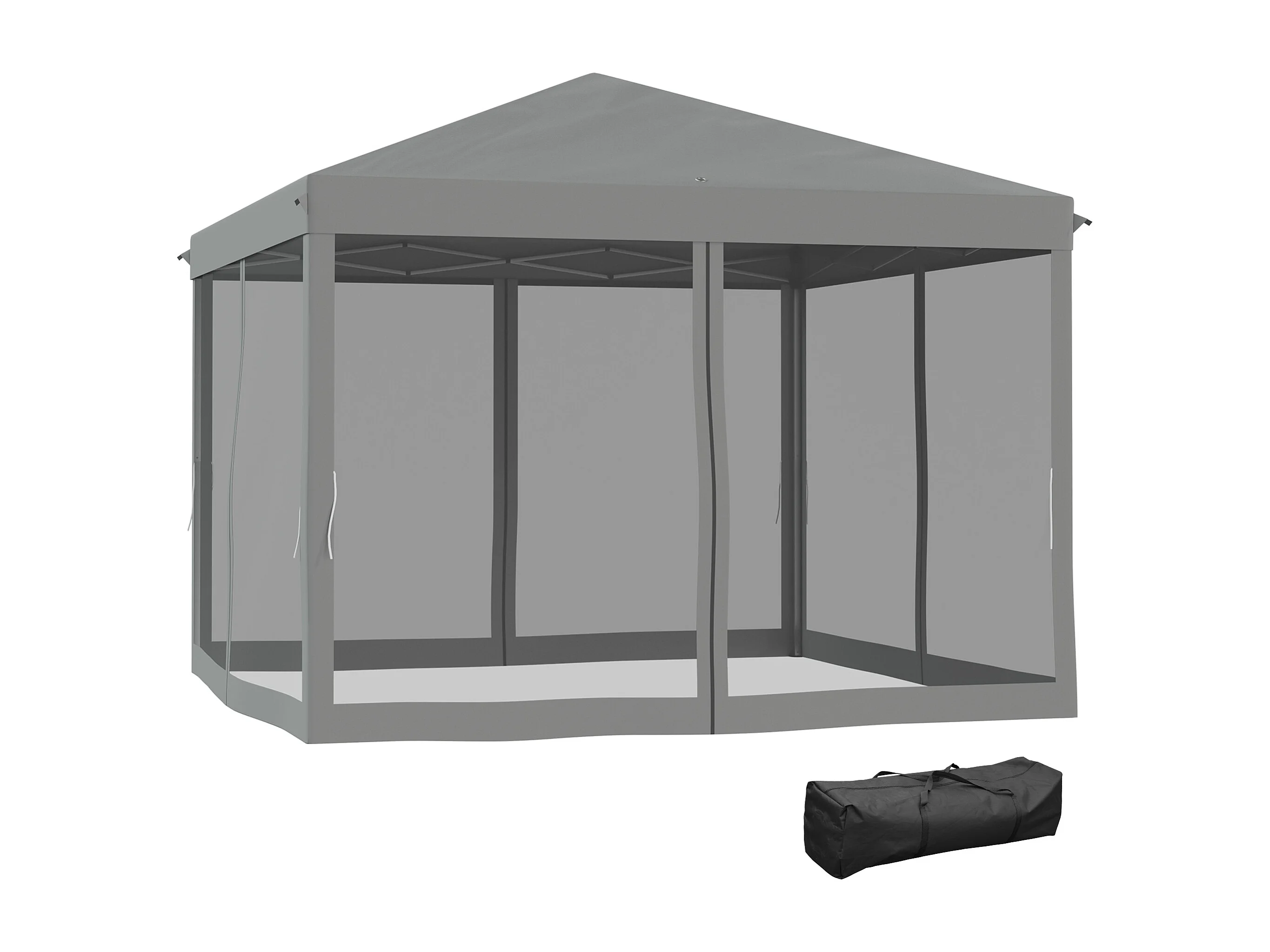 Tonnelle barnum tente de réception hexagonale style cosy métal polyester imperméabilisé surface env. 10 m² gris