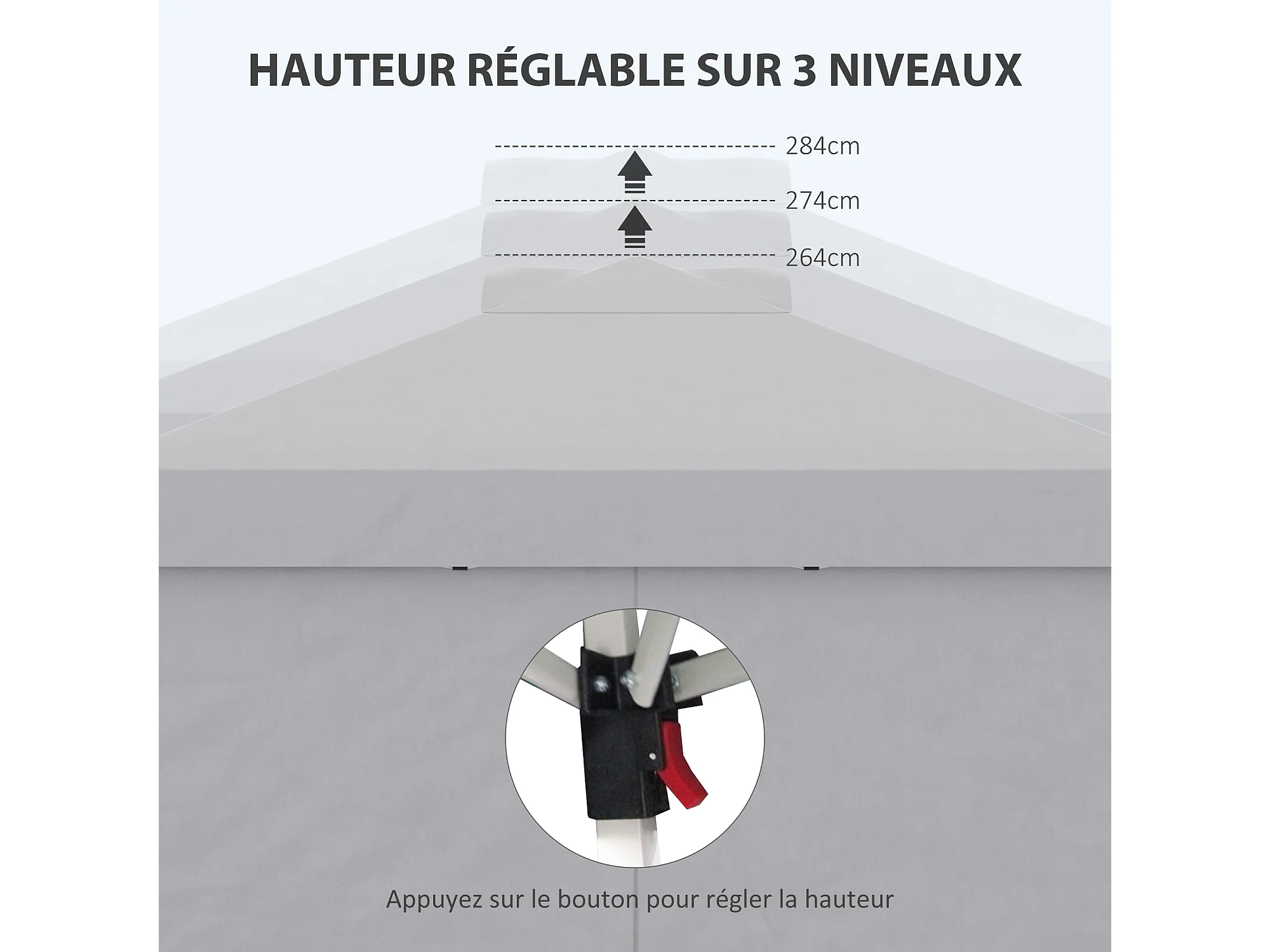 Tonnelle barnum pop-up pliant 2,97L x 2,97l x 2,84H m sac transport inclus gris