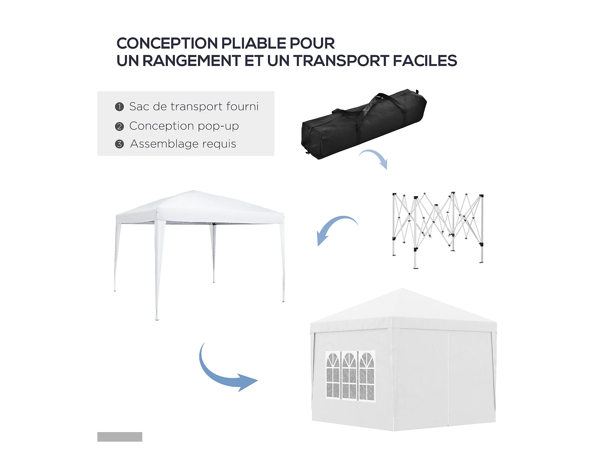 Tonnelle barnum pop-up pliant dim. 3L x 3l x 2,58H m 2 fenêtres sac transport acier Oxford blanc