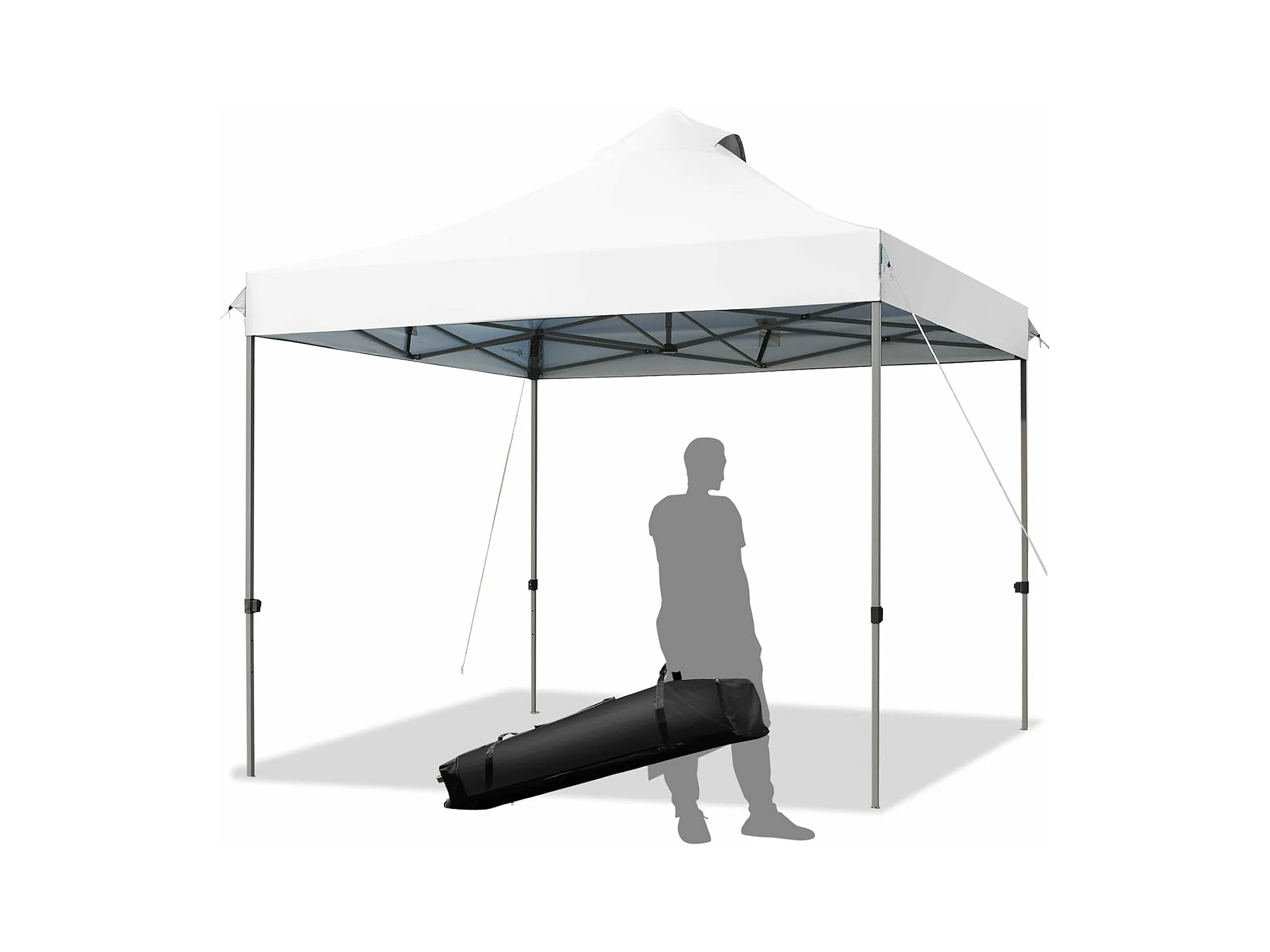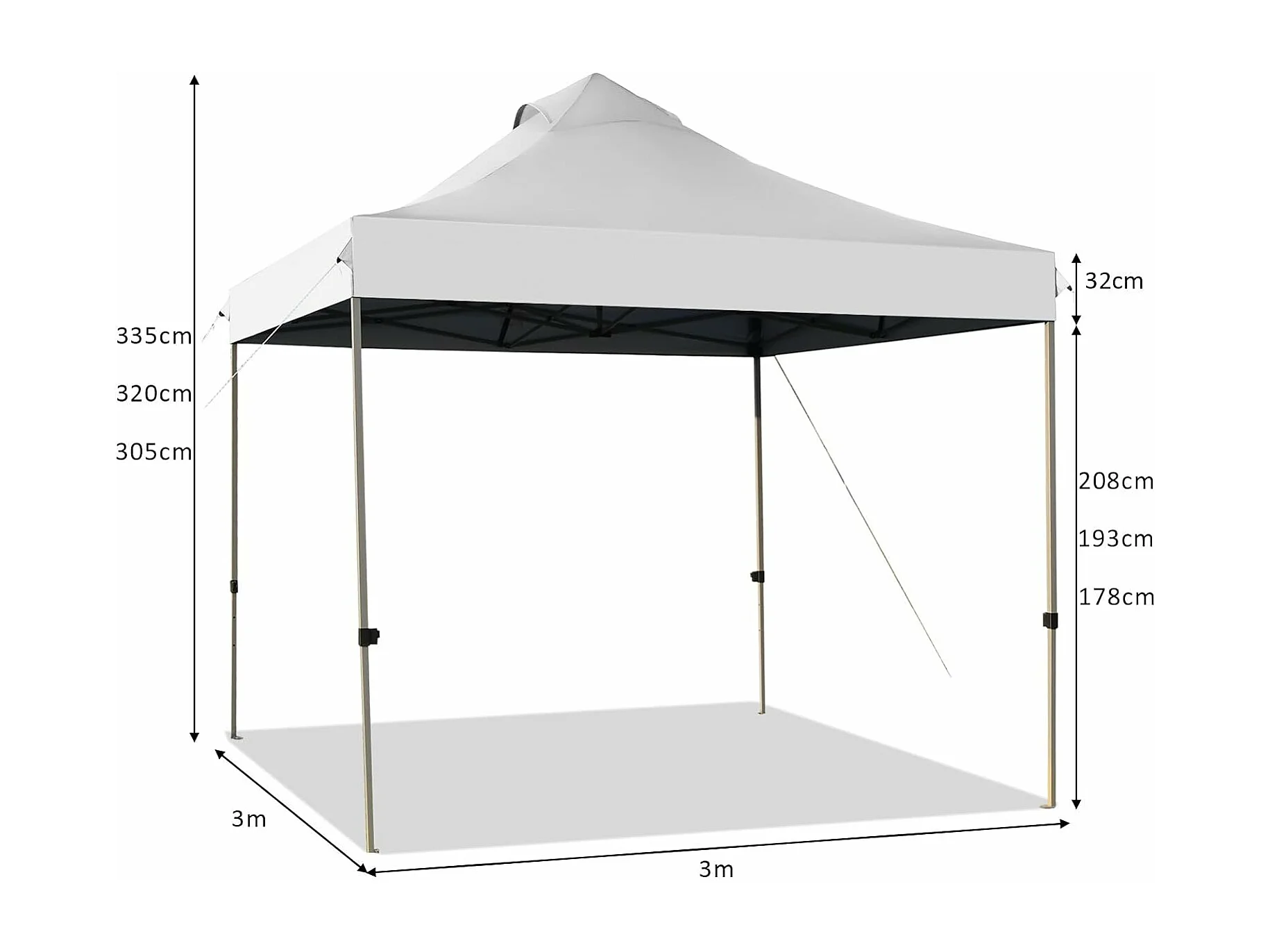 Tonnelle de Jardin Escamotable Pliable 3x3M, Tente de Fête Imperméable Protection Solaire 3 Hauteurs 305/320/335 cm avec Sac de Rangement à roulettes, pour Marché Patio (Blanc)