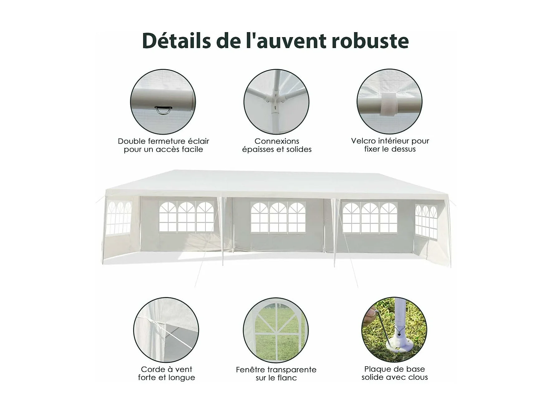 Tonnelle de Jardin Extérieur/Barnum 3x9m-27㎡ Tente de Réception Imperméable avec 8 Parois Amovibles