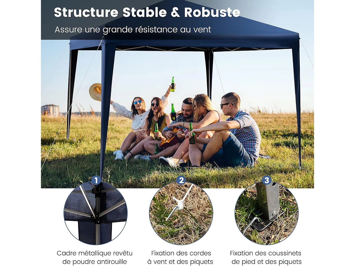 Tonnelle de Jardin Instantanée Pliable 295x295CM, Tente de Jardin Anti-UV Imperméable 3 Hauteurs 249/252/255 cm Sac de Rangement, pour Marché Patio CamBoisg Bleu