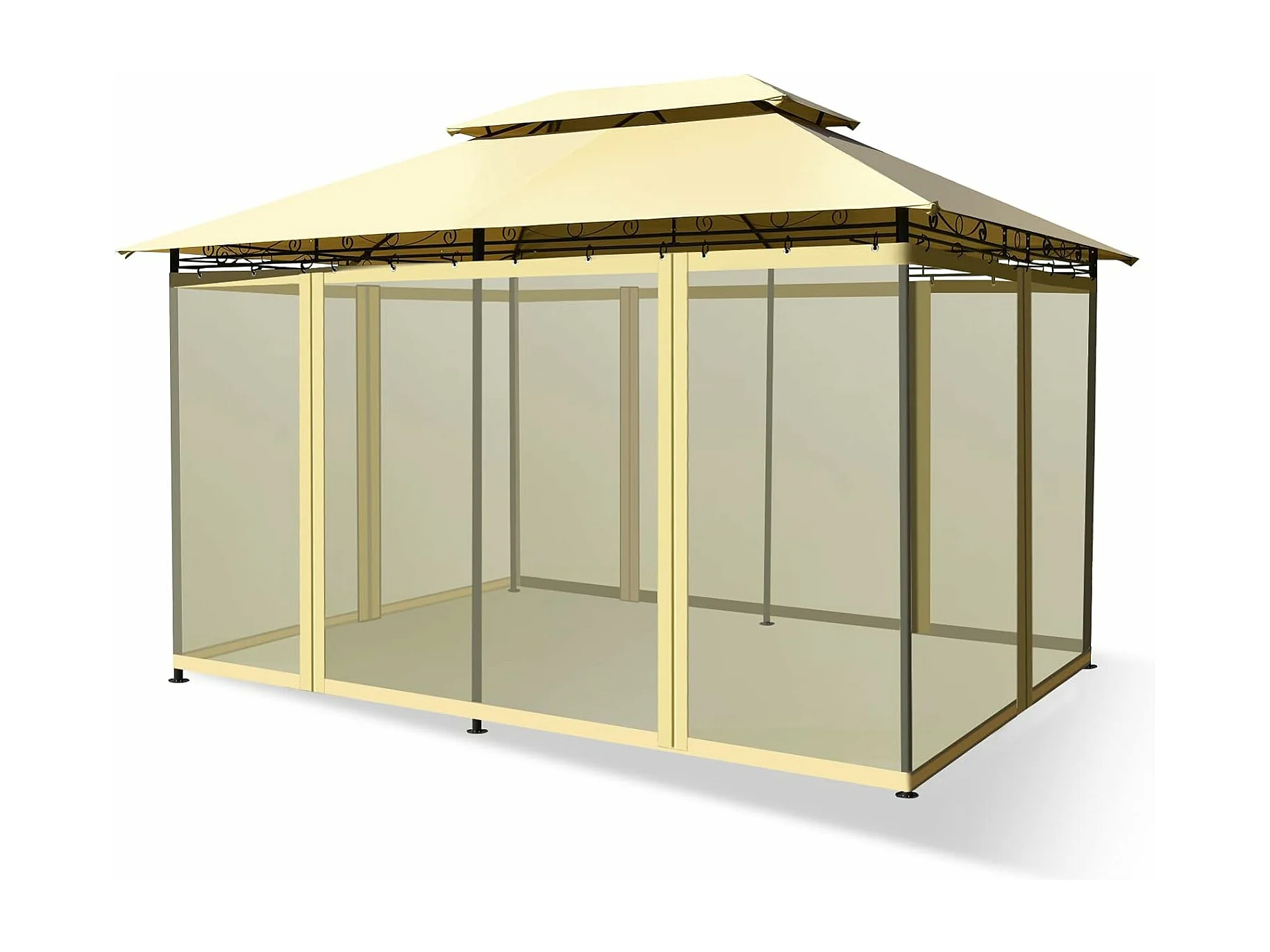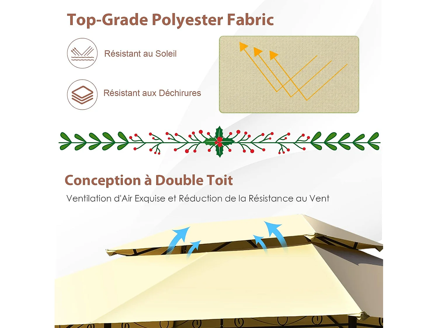 Tonnelle de Jardin 3,9 x 2,9M en Acier avec Rideaux Moustiquaires Amovibles et Toits Doubles, Tente de Réception pour Pique-Nique Festival Mariage (Beige)