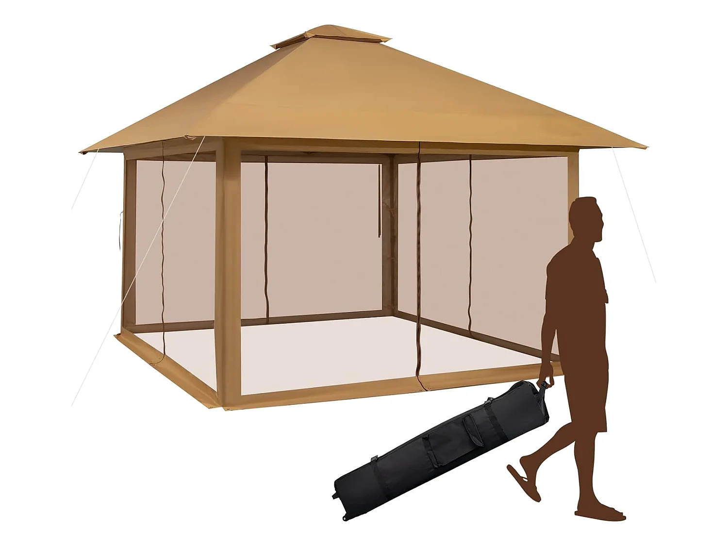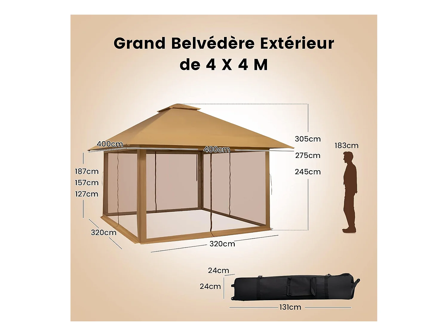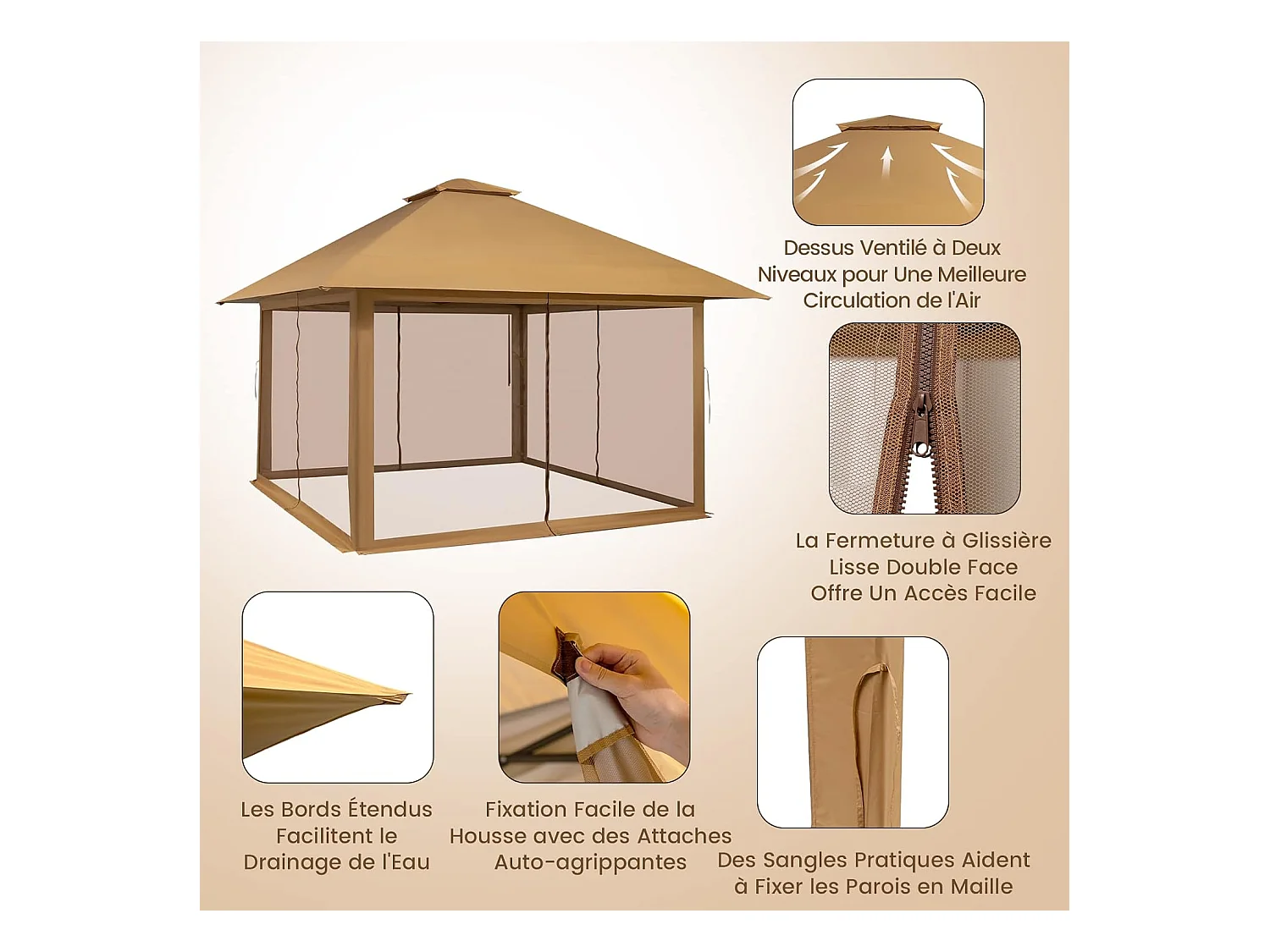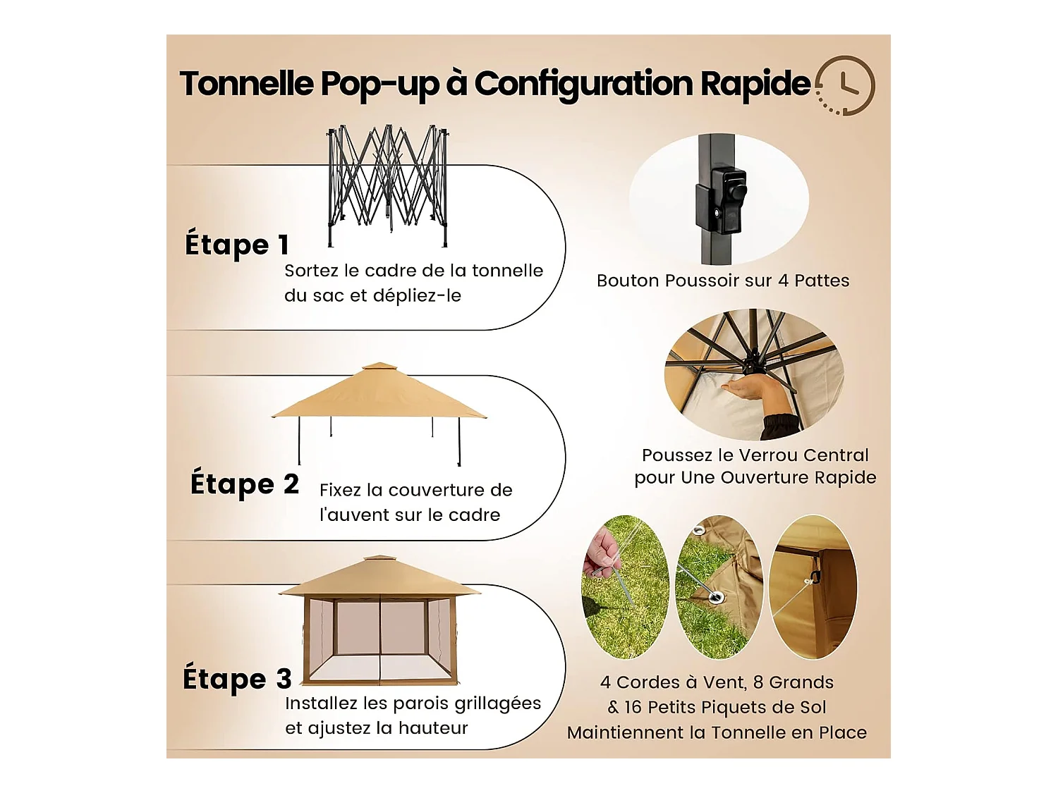 Tonnelle de Jardin Pliante 4 x 4M Pop-up avec Parois Latérales en Maille à Fermeture Éclair
