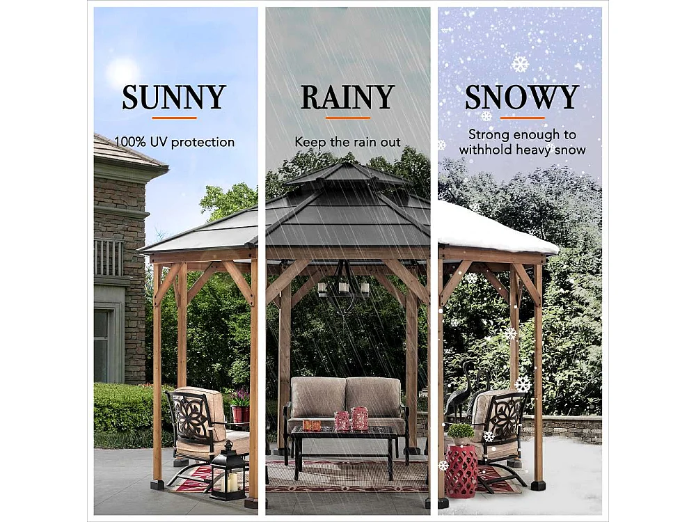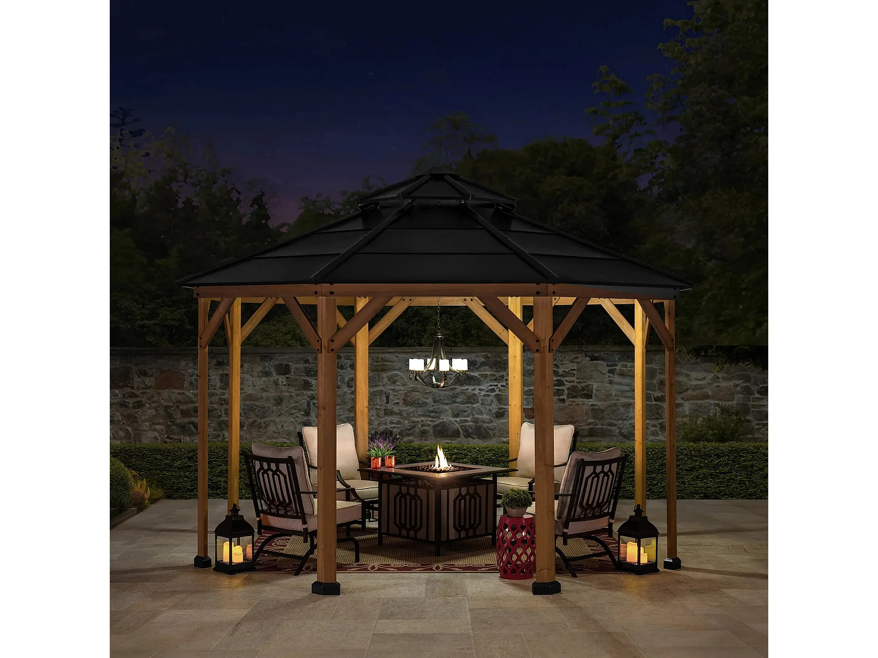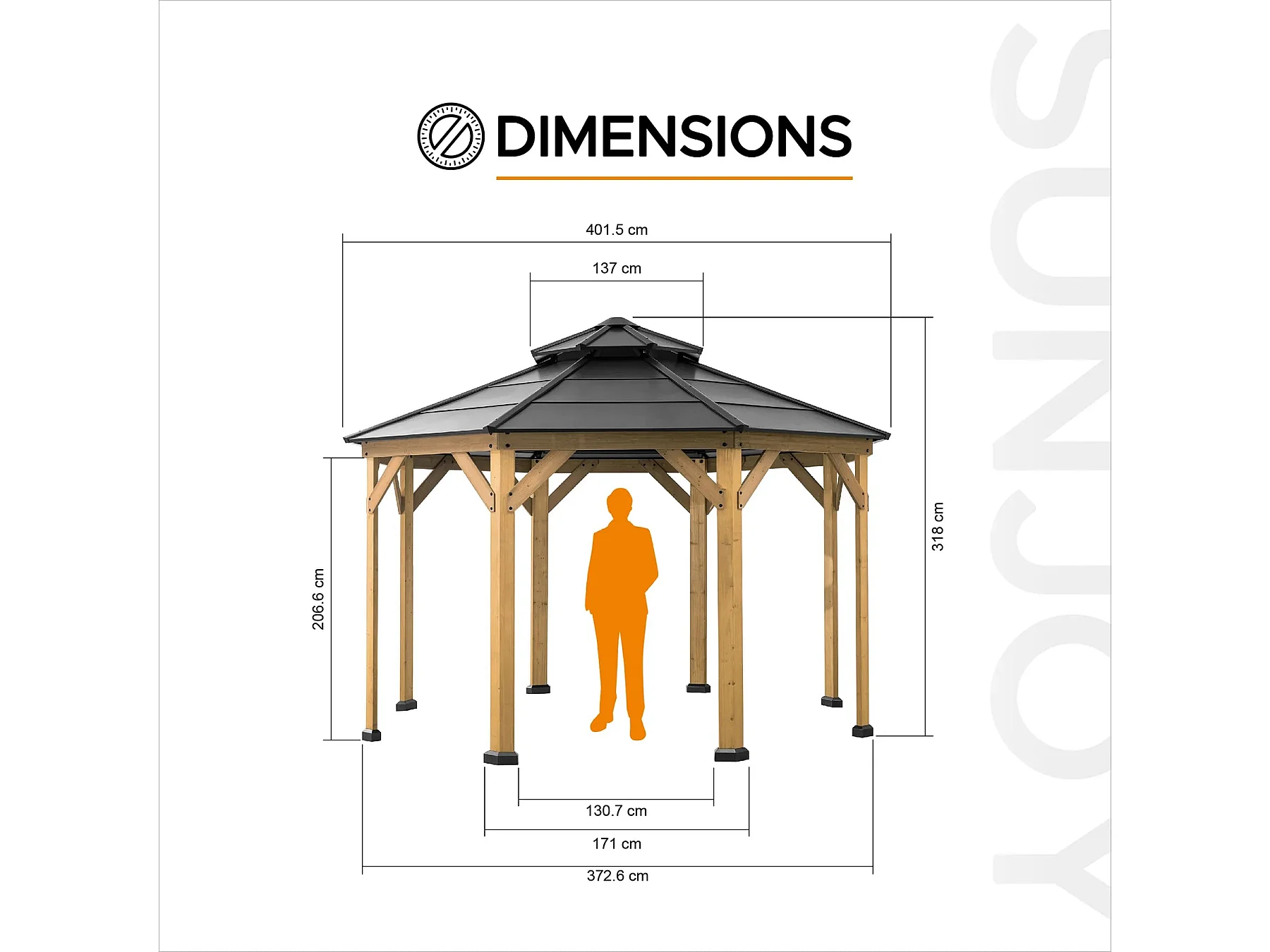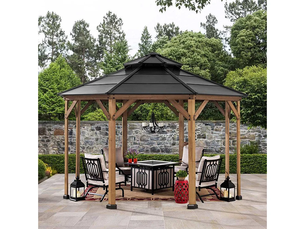 Tonnelle octogonale en bois avec toit en acier et crochet de plafond EGGI 395 cm x 395 cm