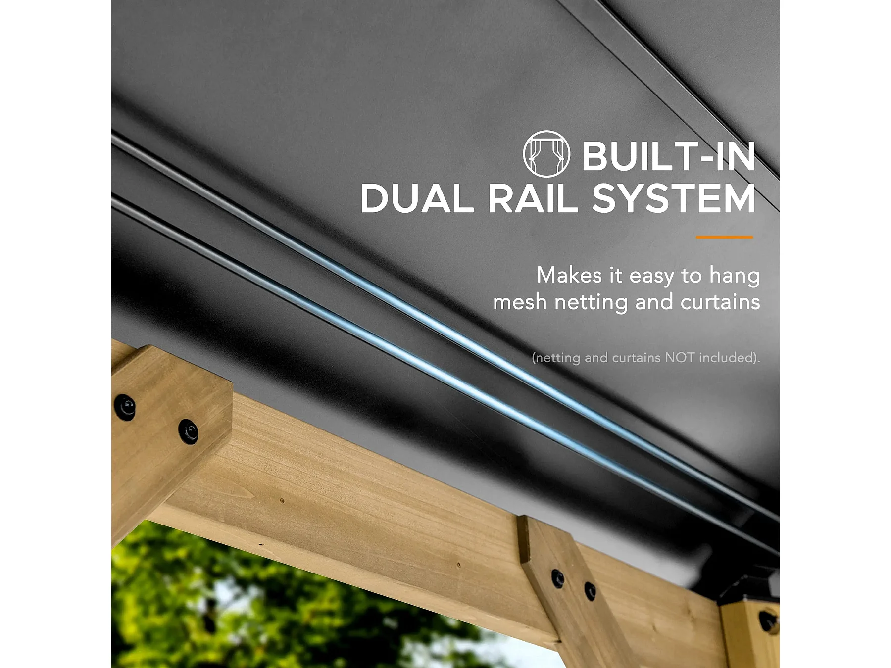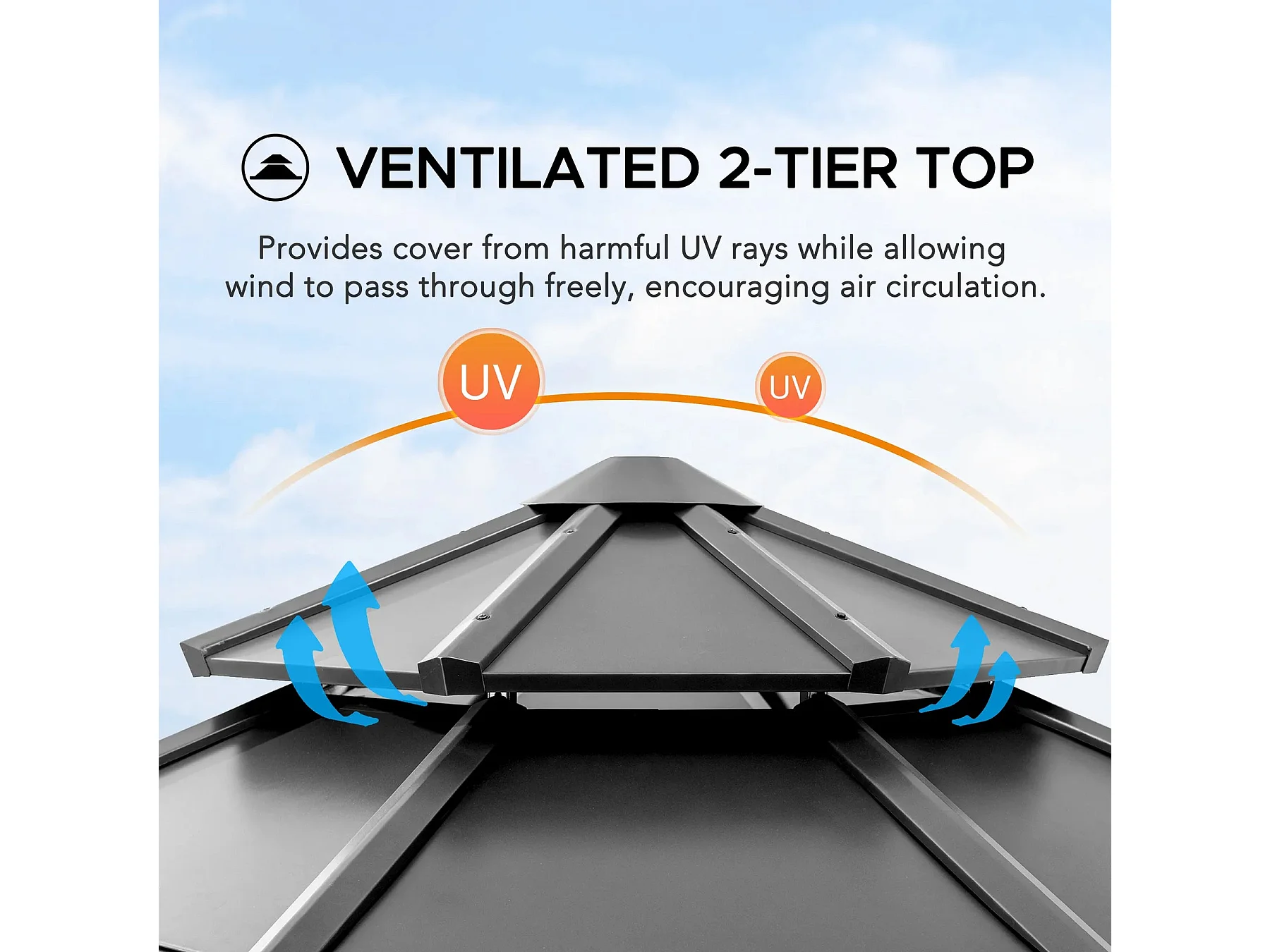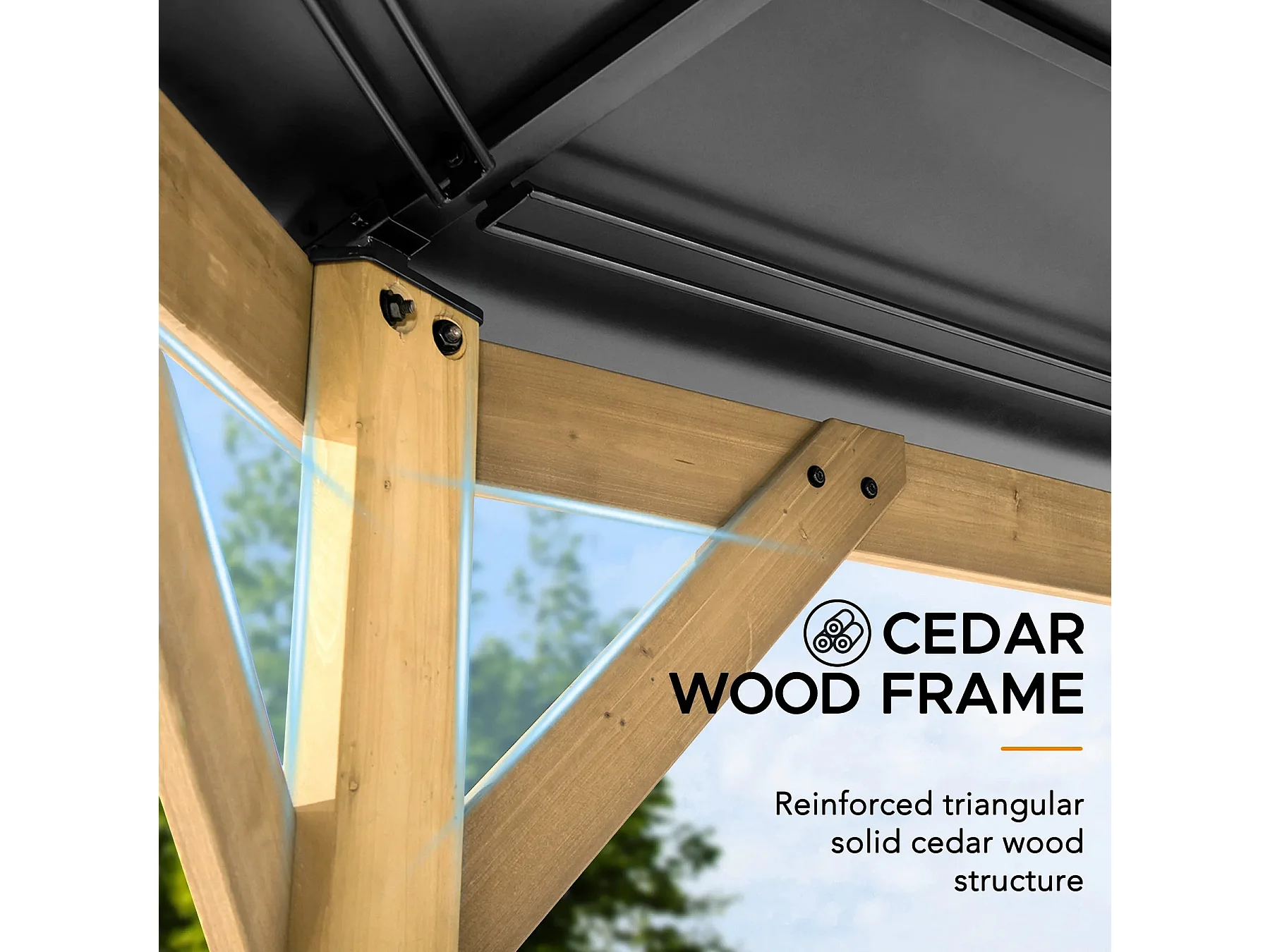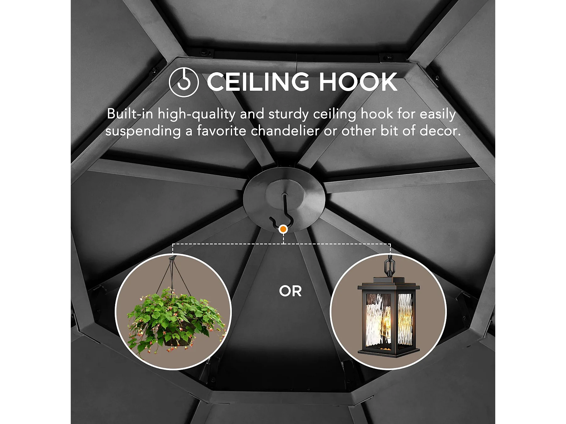 Tonnelle octogonale en bois avec toit en acier et crochet de plafond EGGI 395 cm x 395 cm