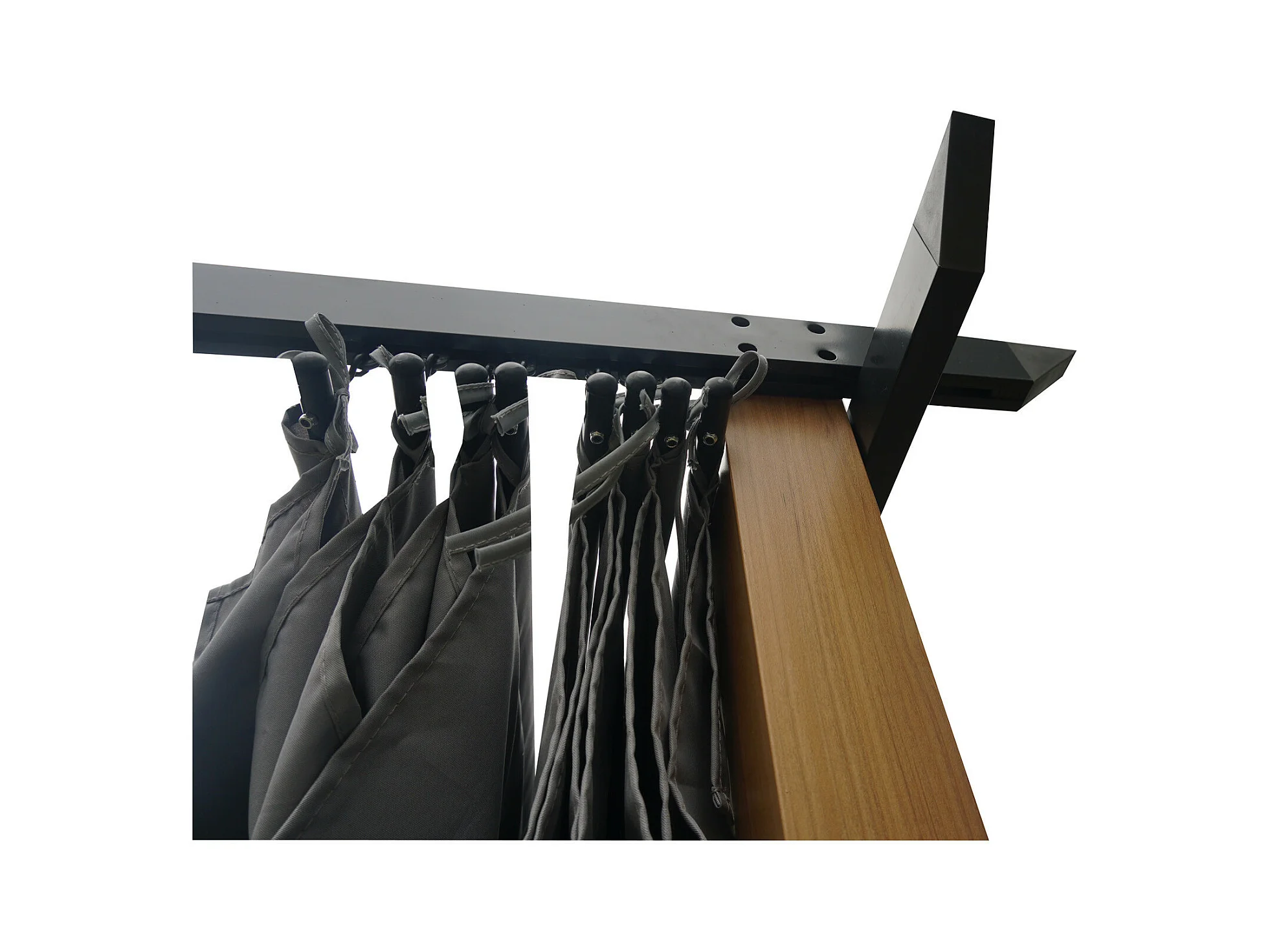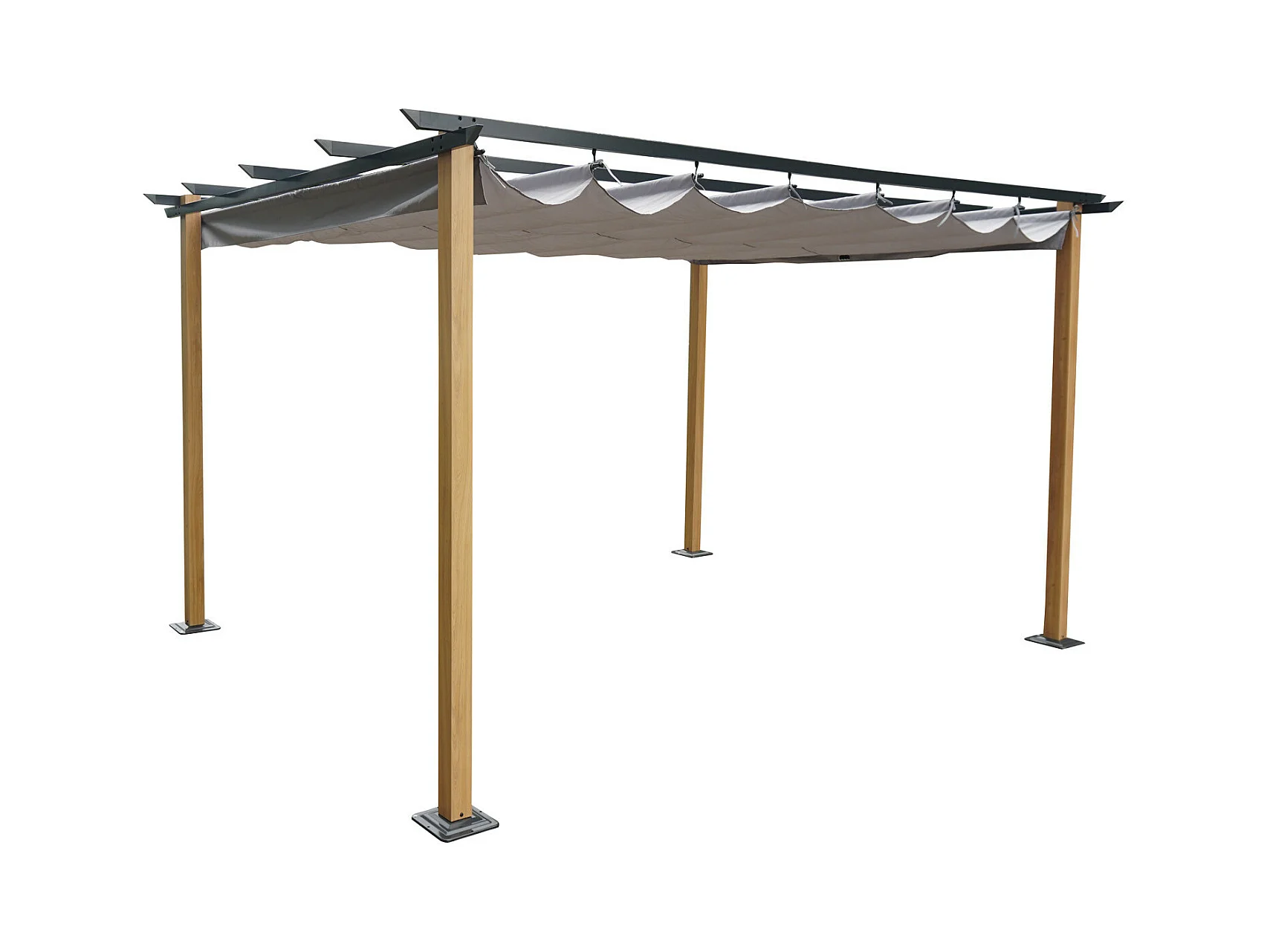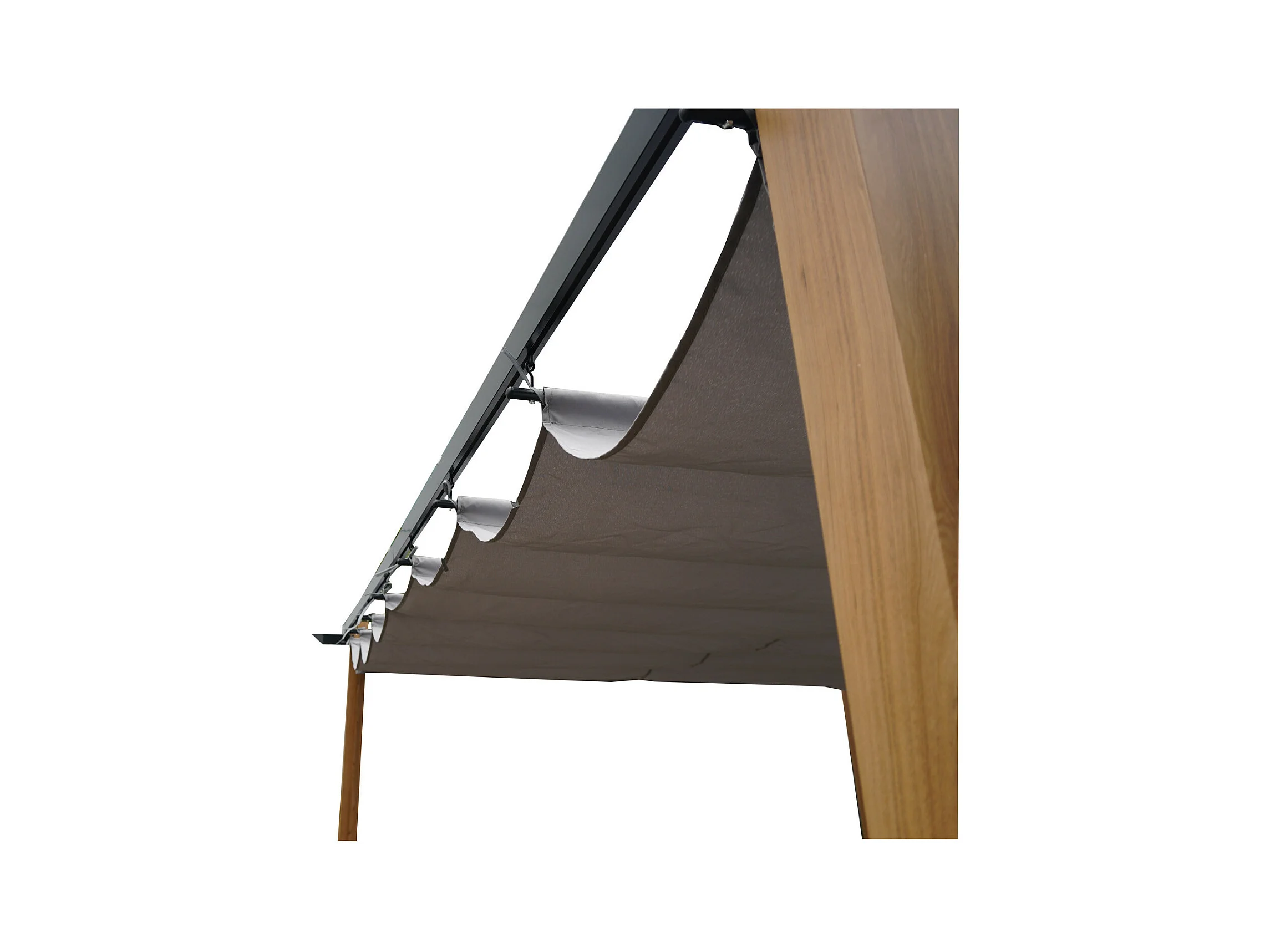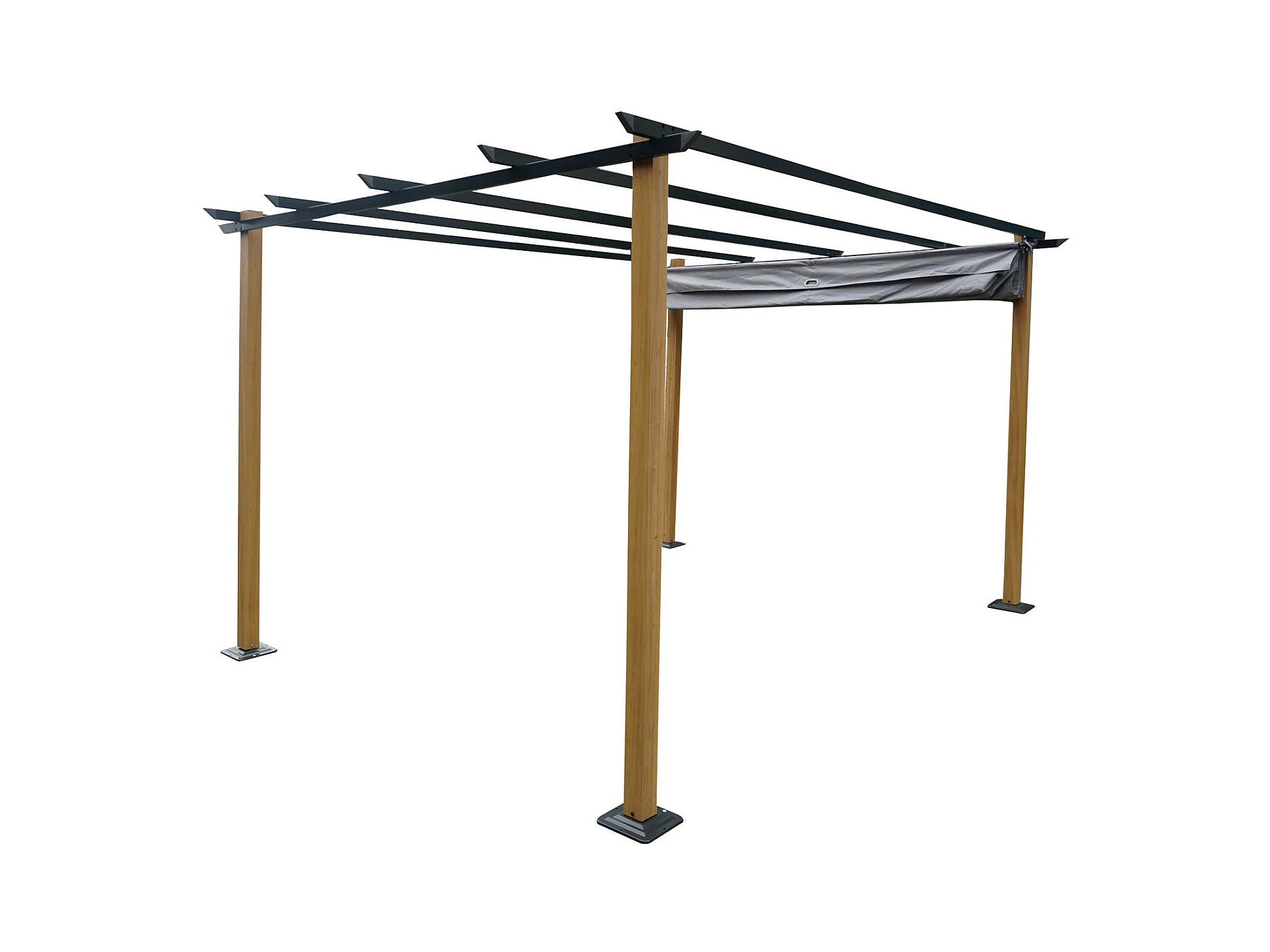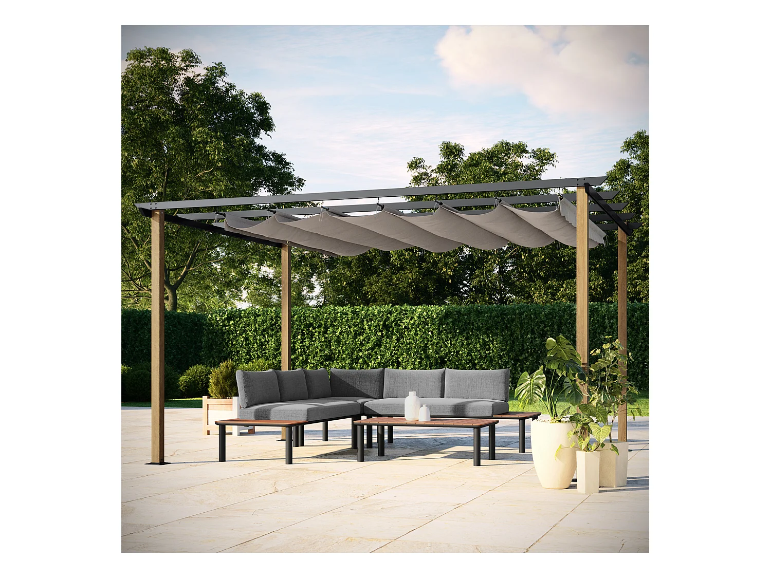 Tonnelle/Pergola en aluminium 3x4m toile coulissante rétractable - bois et gris - HAWAI