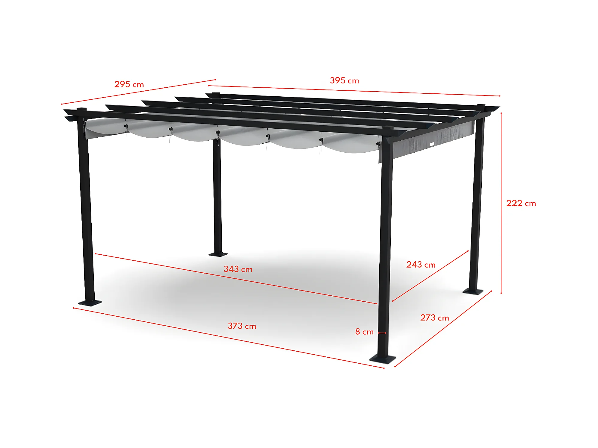 Tonnelle/Pergola en aluminium 3x4m toile coulissante rétractable - Gris - HAVANA