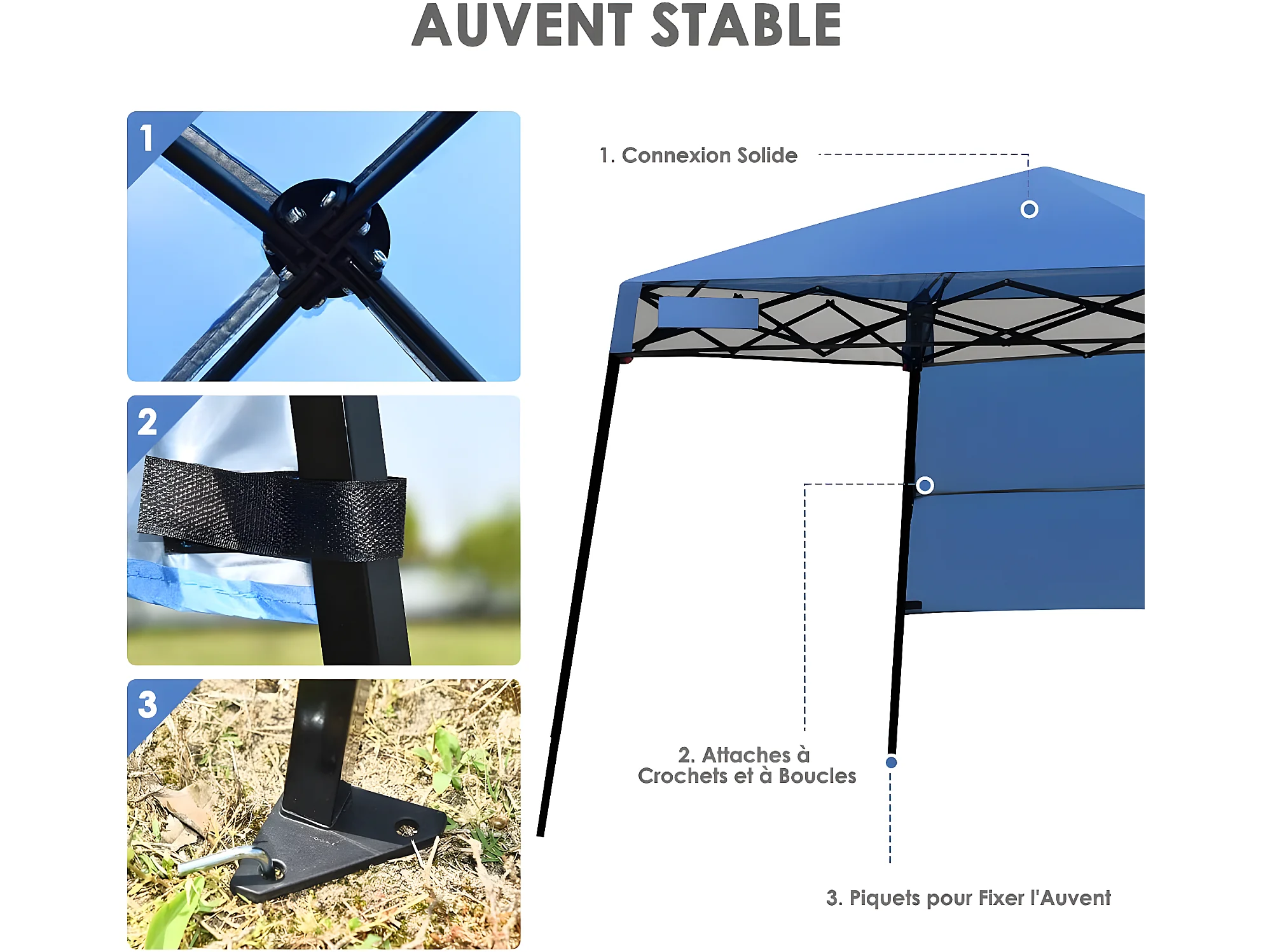 Tonnelle de Jardin Instantanée 300 x 445 CM, Tente de Jardin avec Trous de Drainage Sac à roulettes 4 Cordes, Abri Ajustable pour Marché Camping Mariage (Bleu)