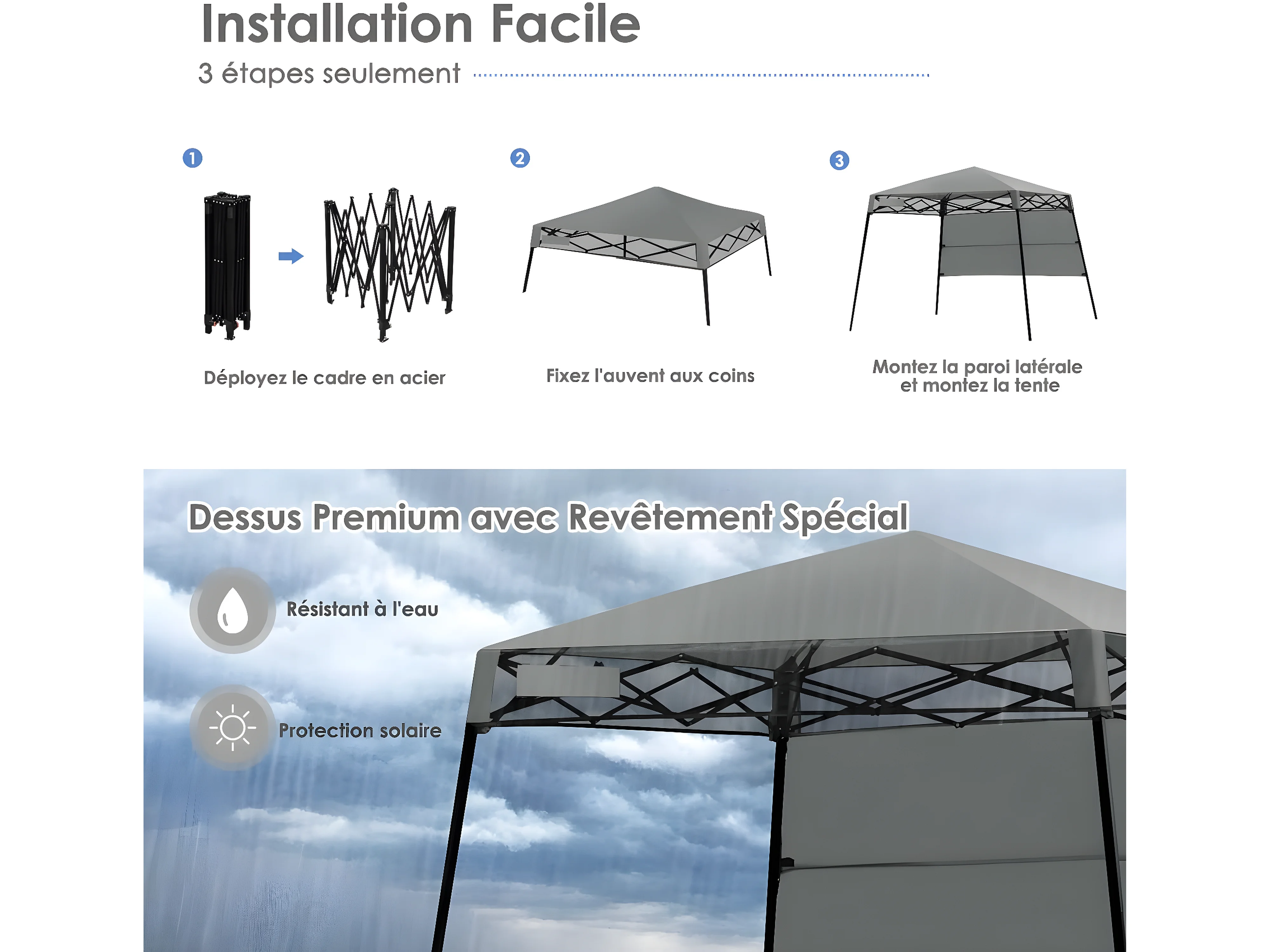 Tonnelle Pliante 181 x 181 cm/Tente d'Extérieur pour Protection Solaire-Portable et Léger Abri avec Sac à Dos pour CamBoisg, Fête, BarbecueGris