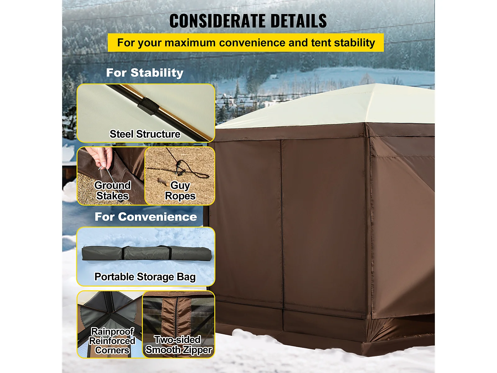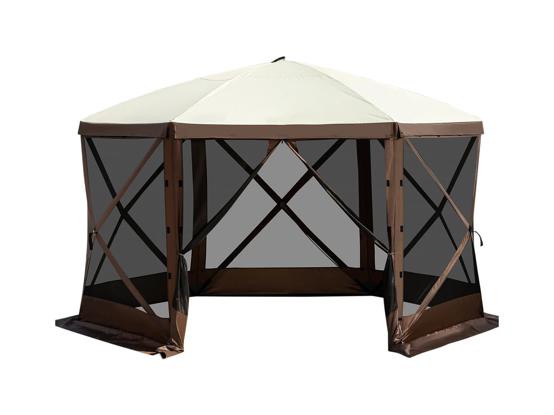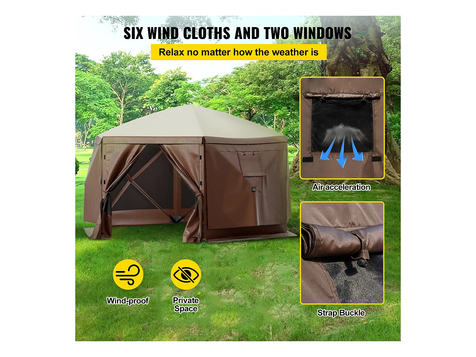Tonnelle SucceBuy Gazebo de camping escamotable 365Cm x 365Cm, Abri à Auvent à 6 Côtés, Pare-Soleil