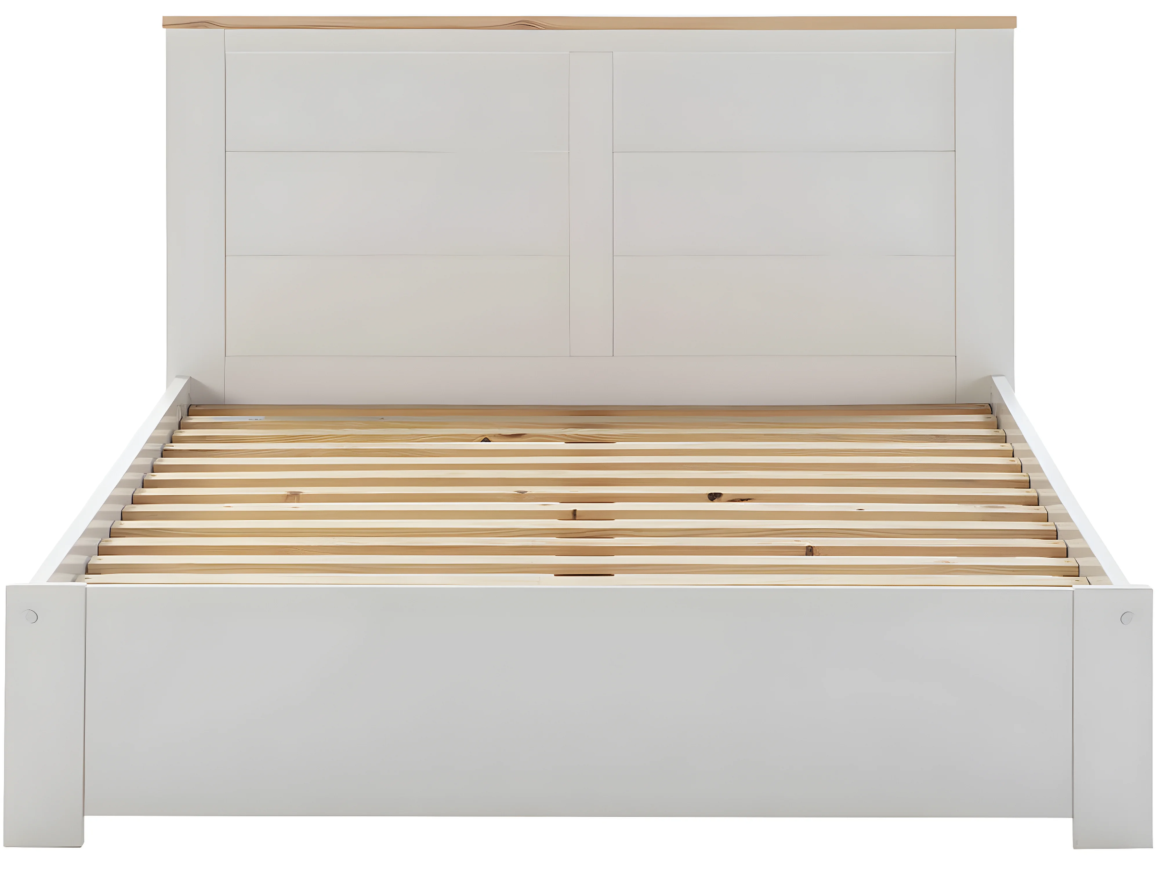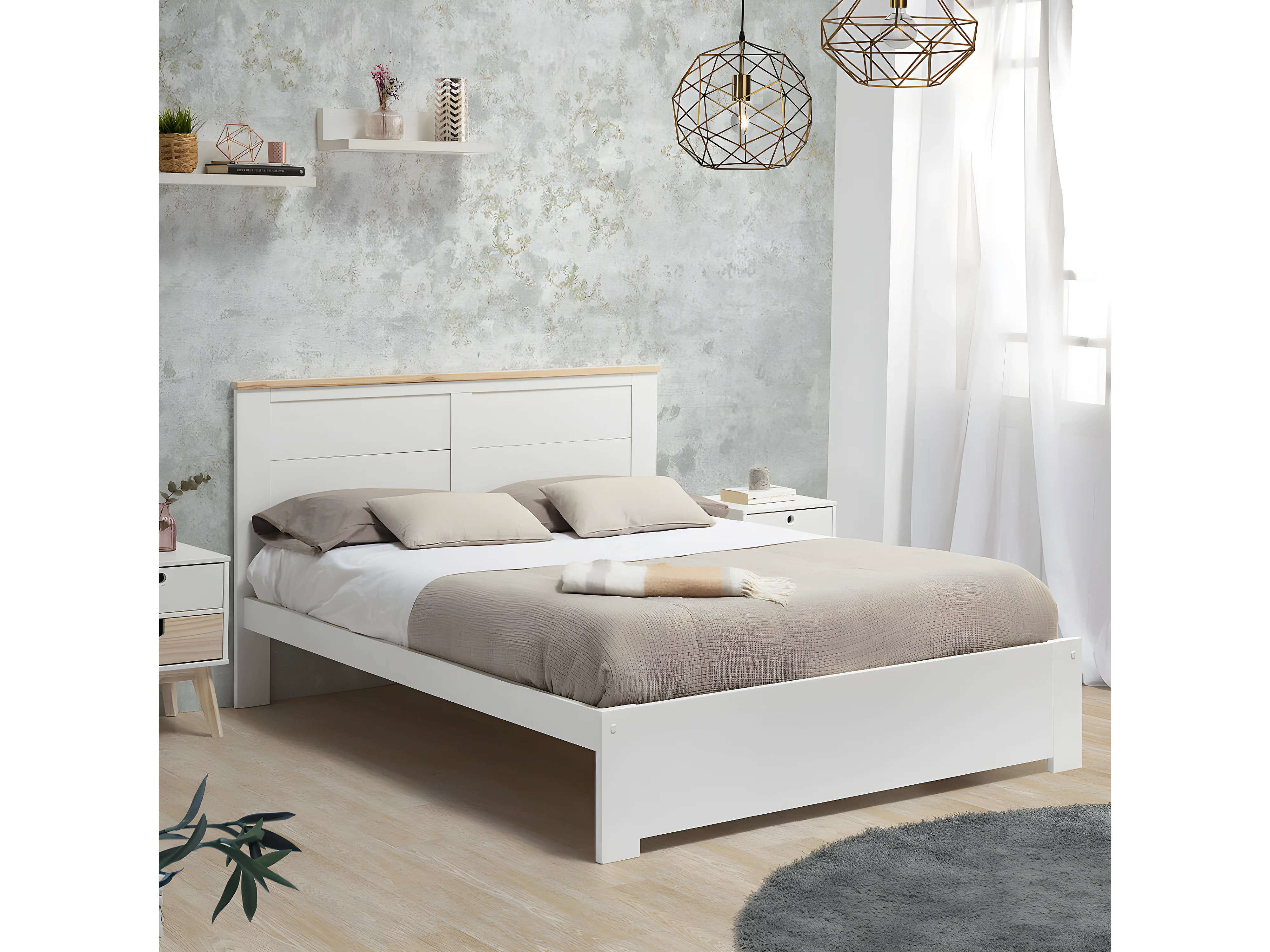 TORI - Lit 140x190cm MDF Blanc et Pin Massif