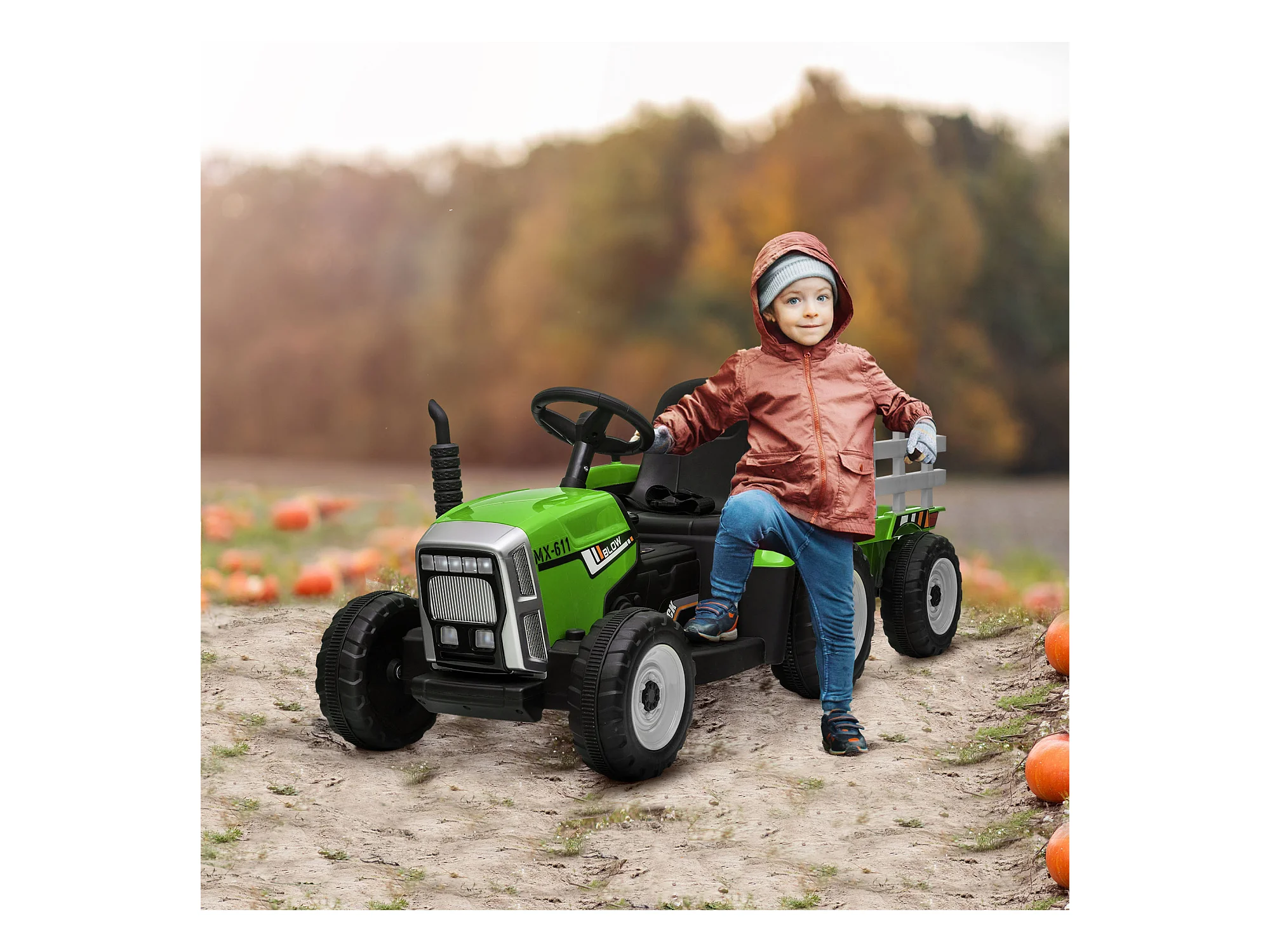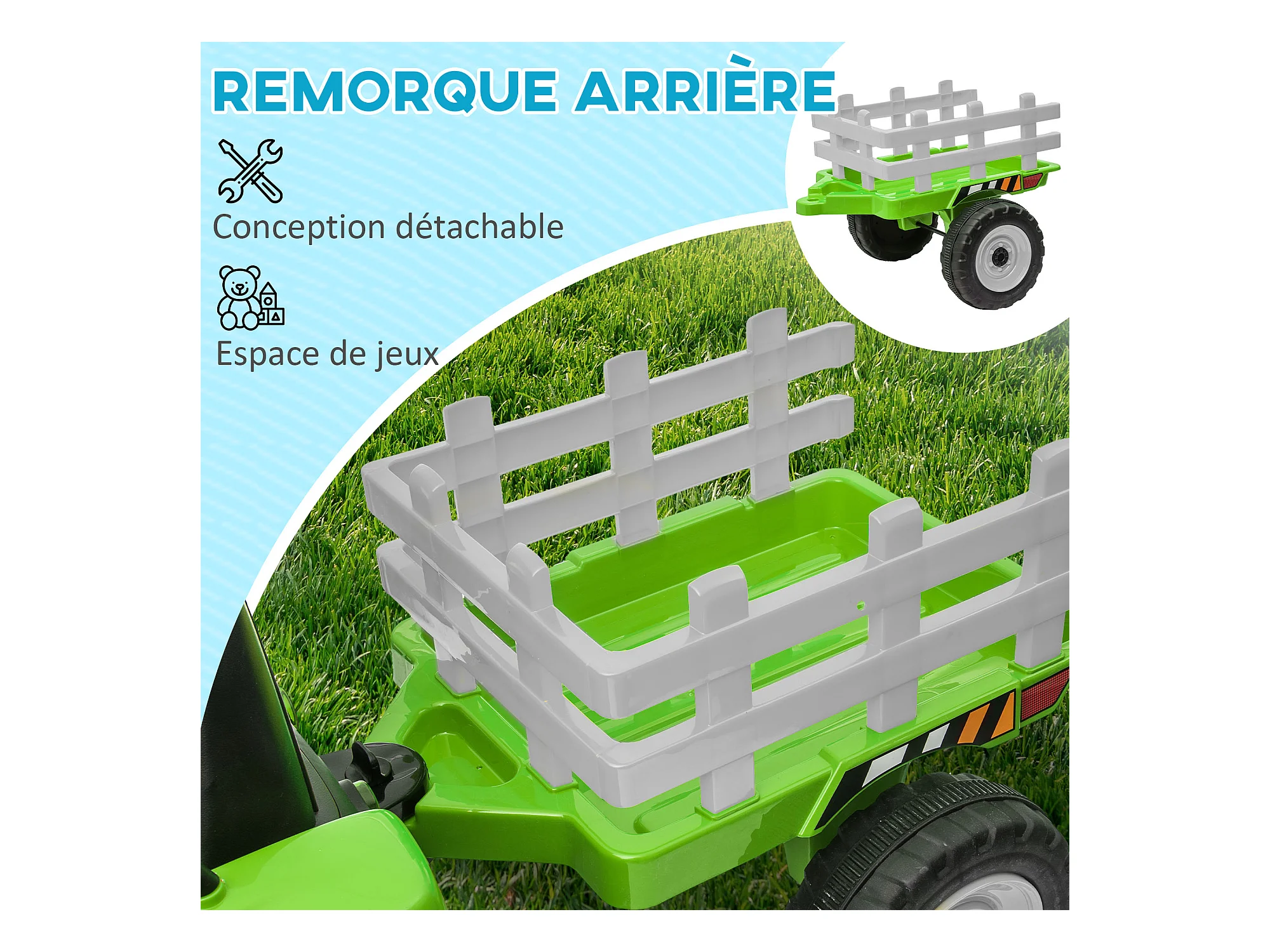Tracteur électrique enfant avec remorque - effets sonores lumineux - télécommande - 3-6 Km/h - vert