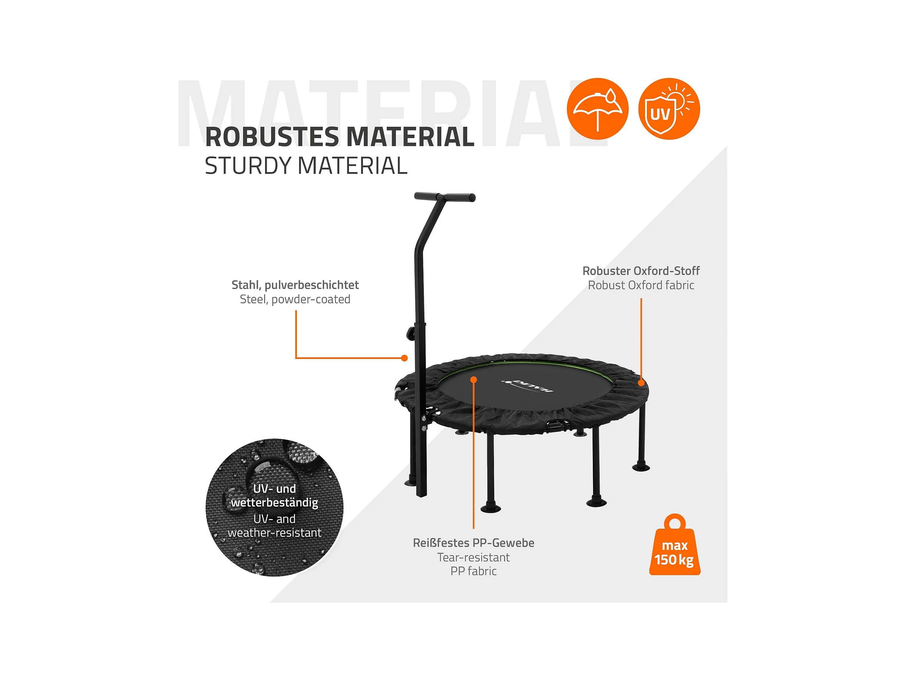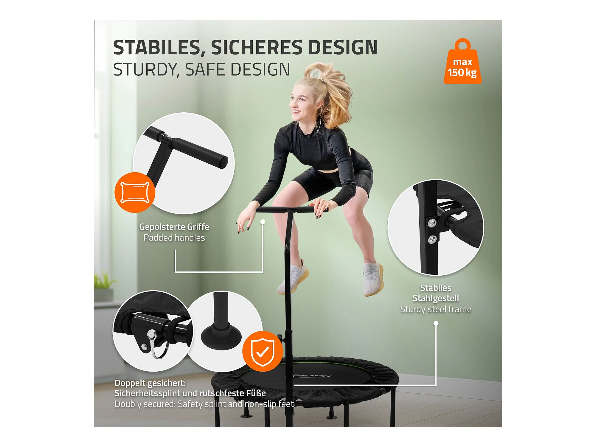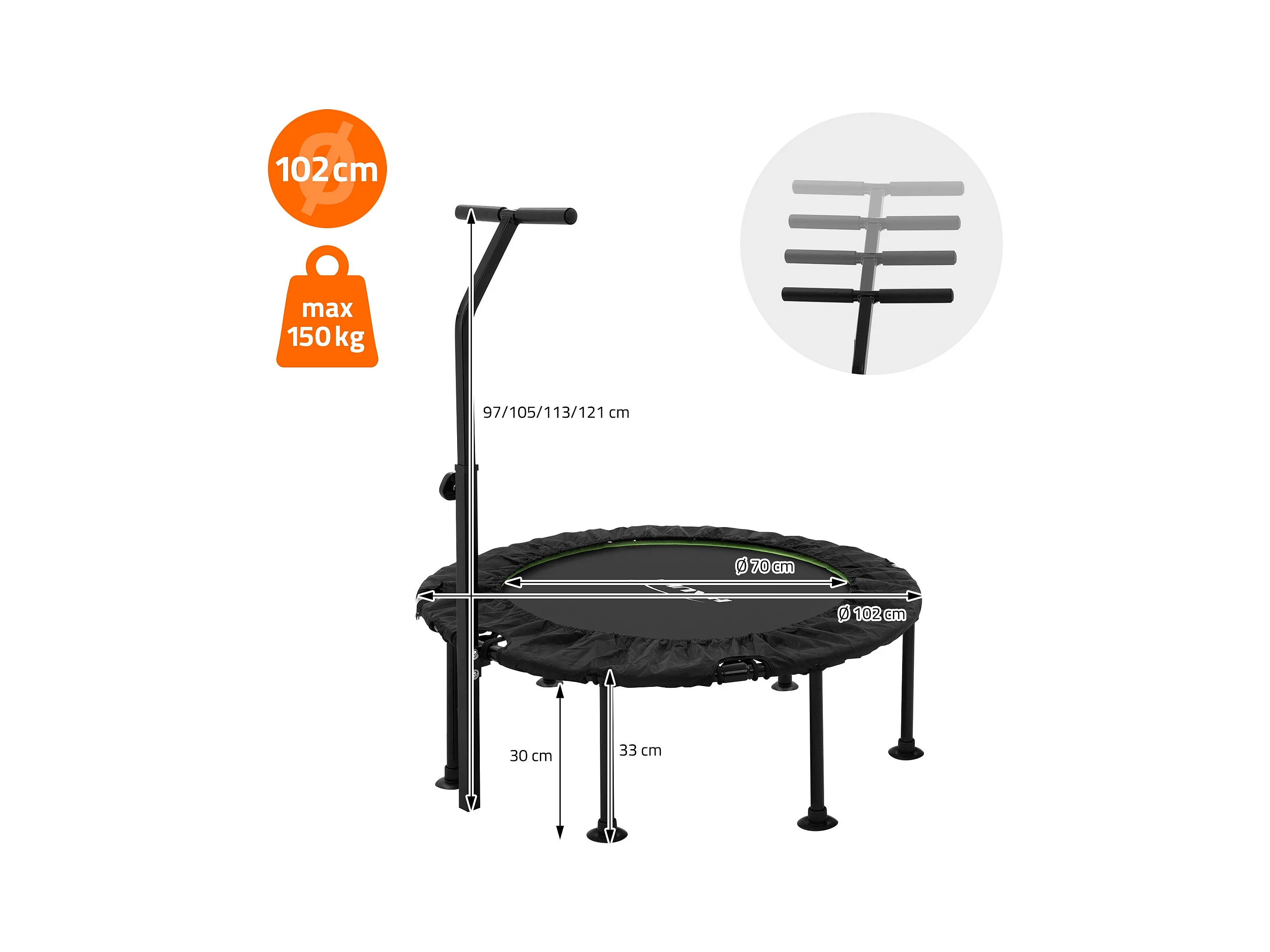 Trampoline de Fitness SucceBuy, 1027 mm, Charge de 150 kg, Poignée en Mousse RÉglable à 4 Niveaux